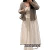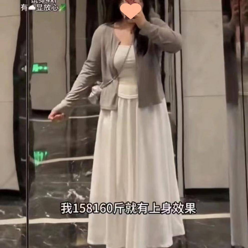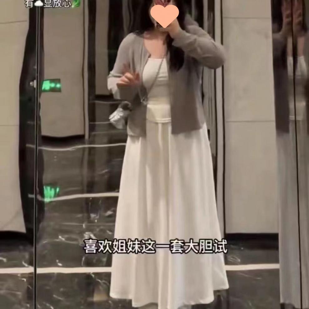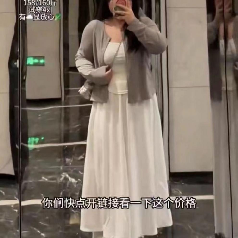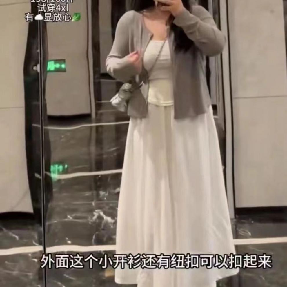 Cárdigan Suave con Tirantes para Mujer de Talla Grande Traje Chaleco Blanco Nuevo Pereza Coreano Casual Falda Conjunto de Tres Piezas