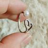 Anillo de Corazón Hueco Estilo Francés para Mujer, Perla Falsa Plata Abierto Irregular Minimalista Anillo Estilo Suave