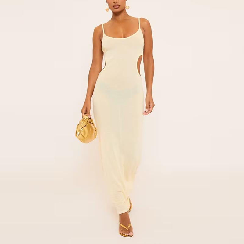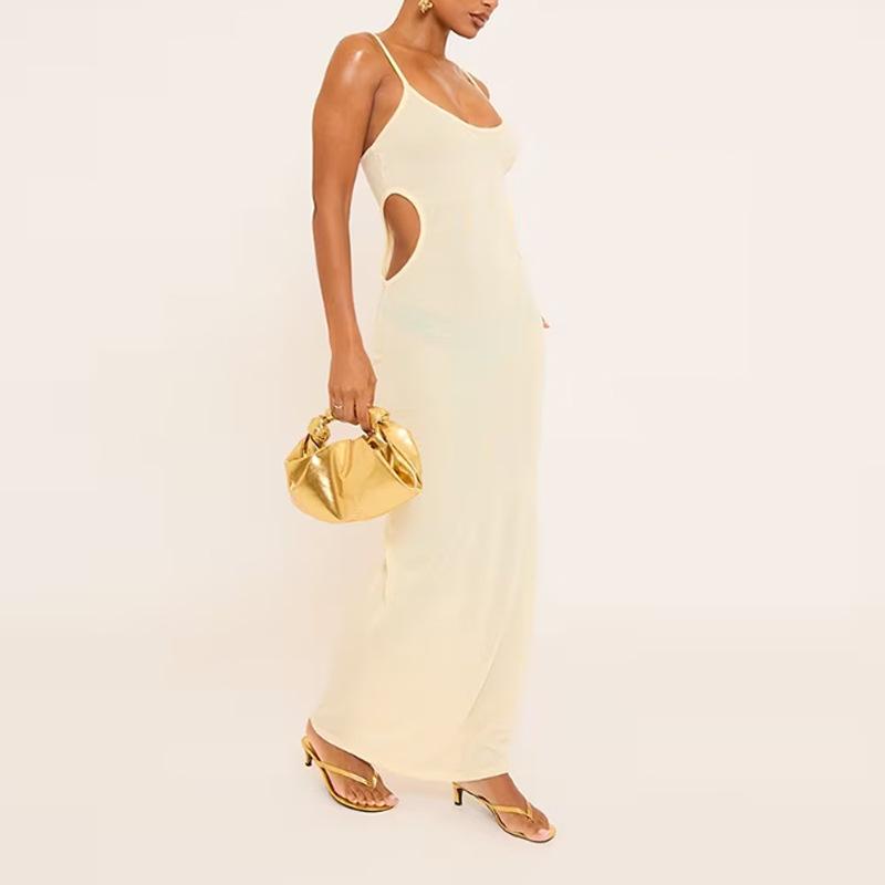 2025 Ropa Nueva Transfronteriza Europea y Americana para Mujer Vestido Elegante Ajustado Cubrecaderas Cintura Alta Sin Espalda Falda Larga