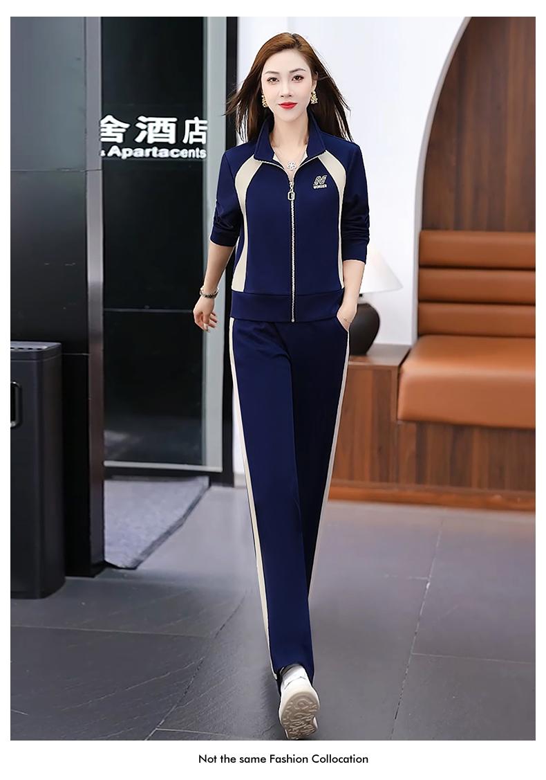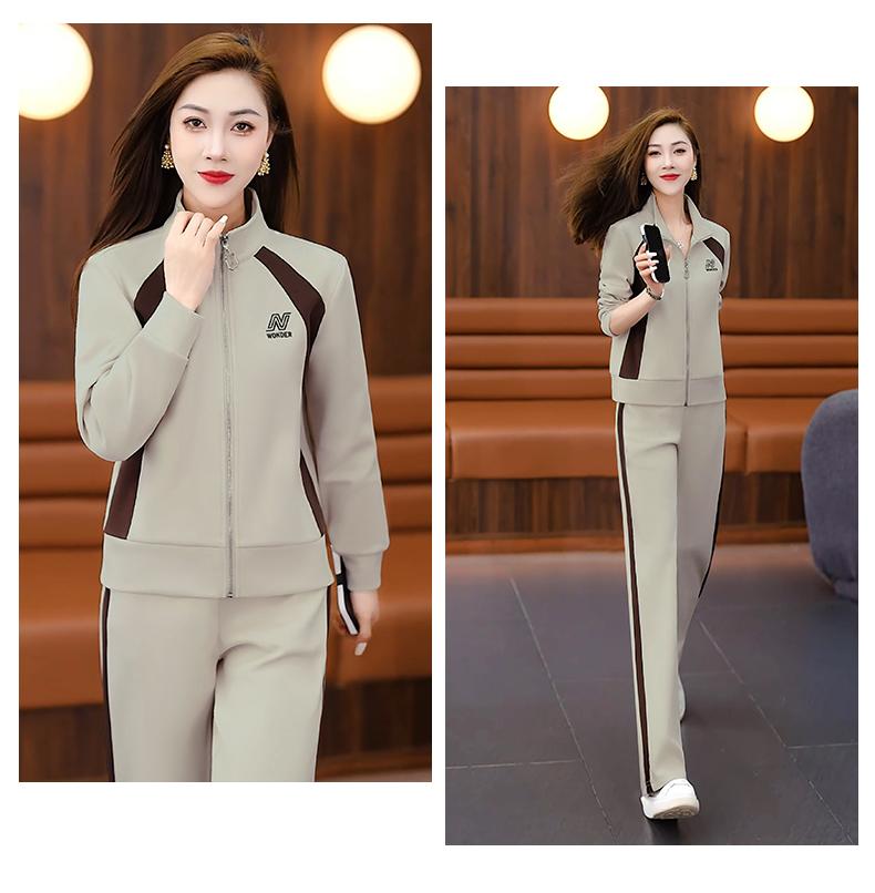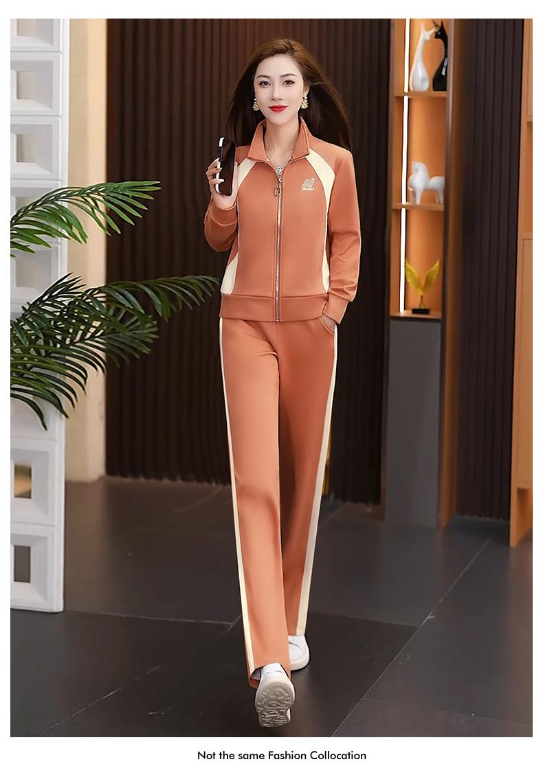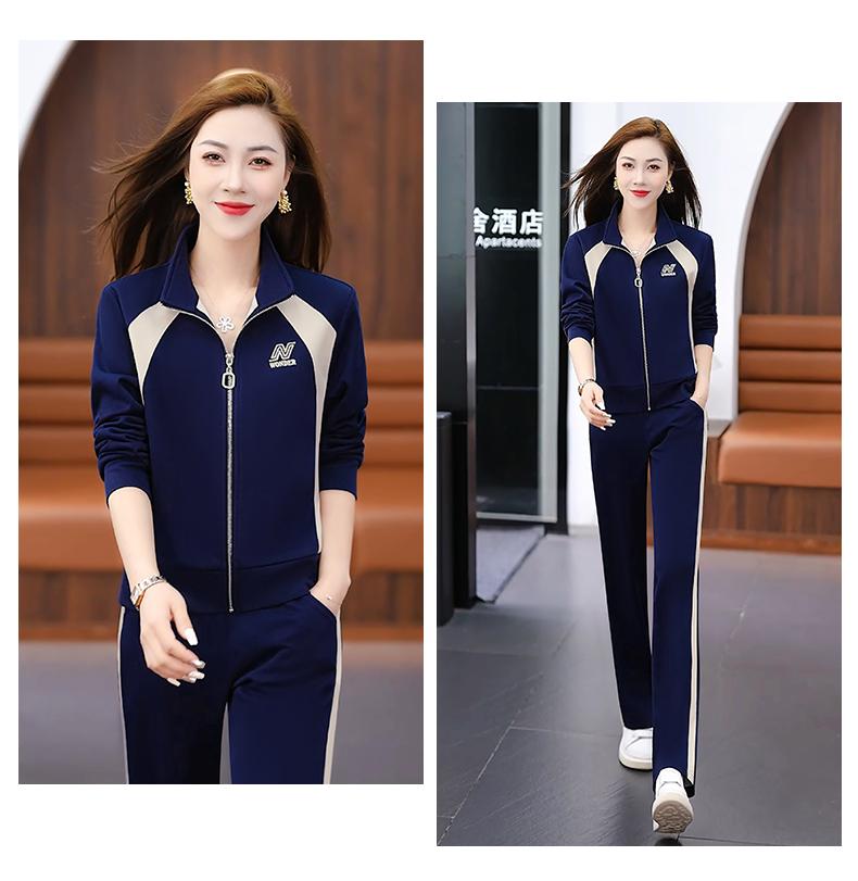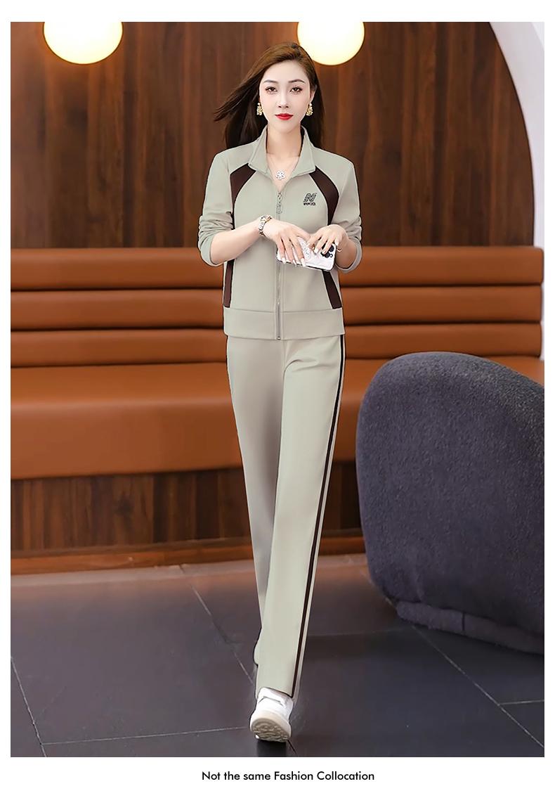 Otoño 2025 Nuevo Traje Deportivo Moda Elegante Cuello Color Conjunto de Dos Piezas Traje Deportivo Adelgazante de Gama Alta