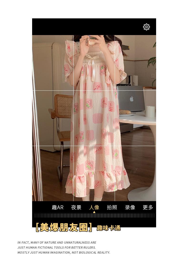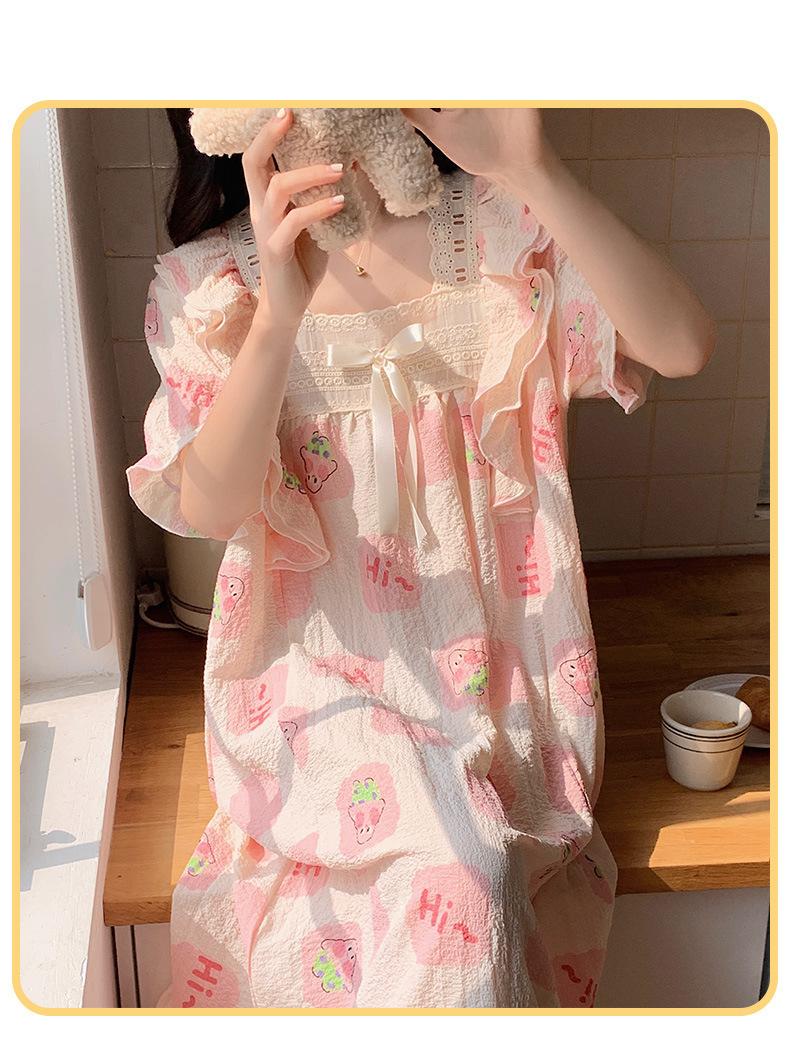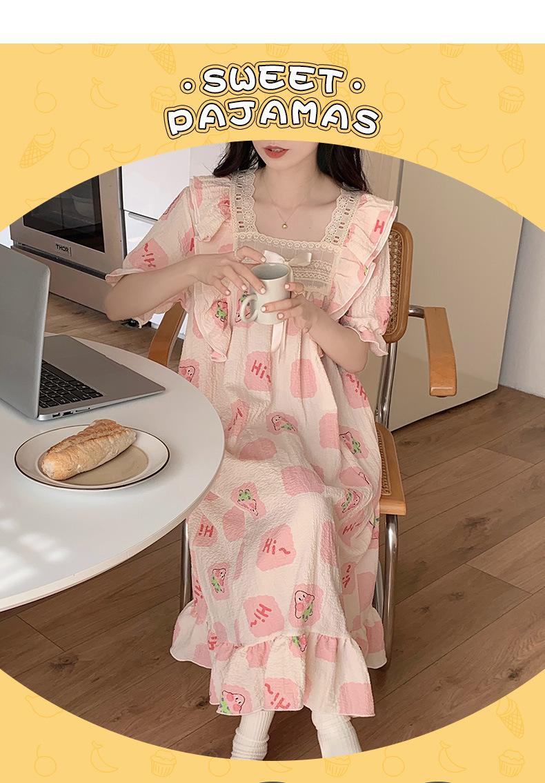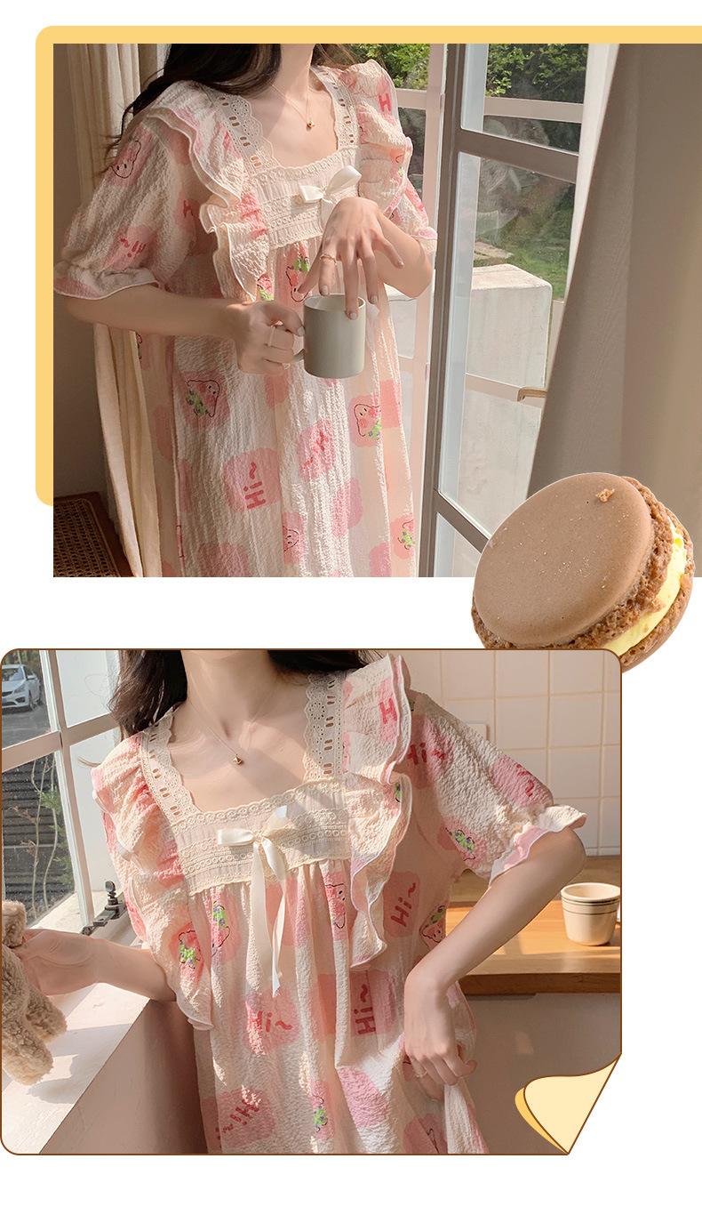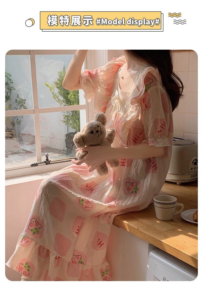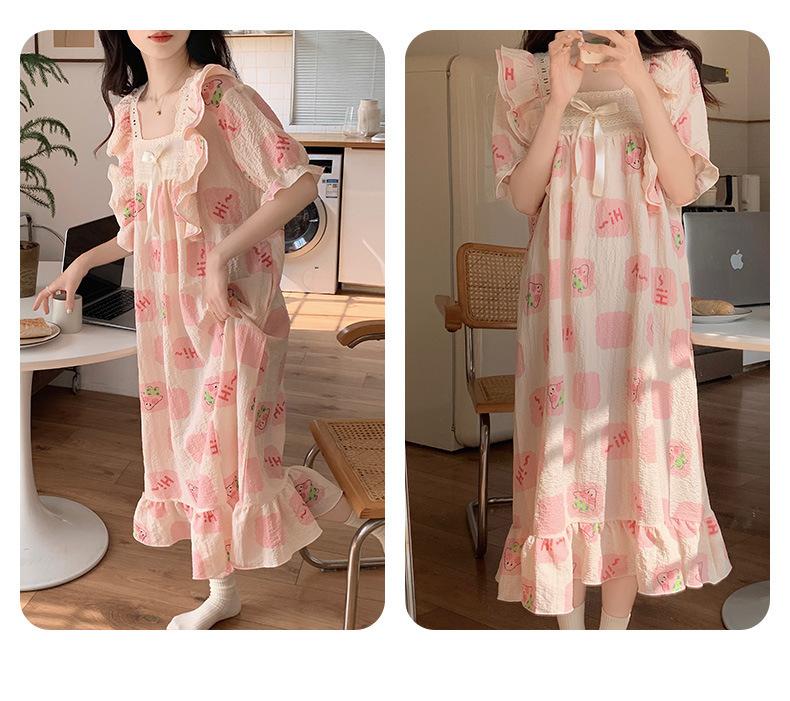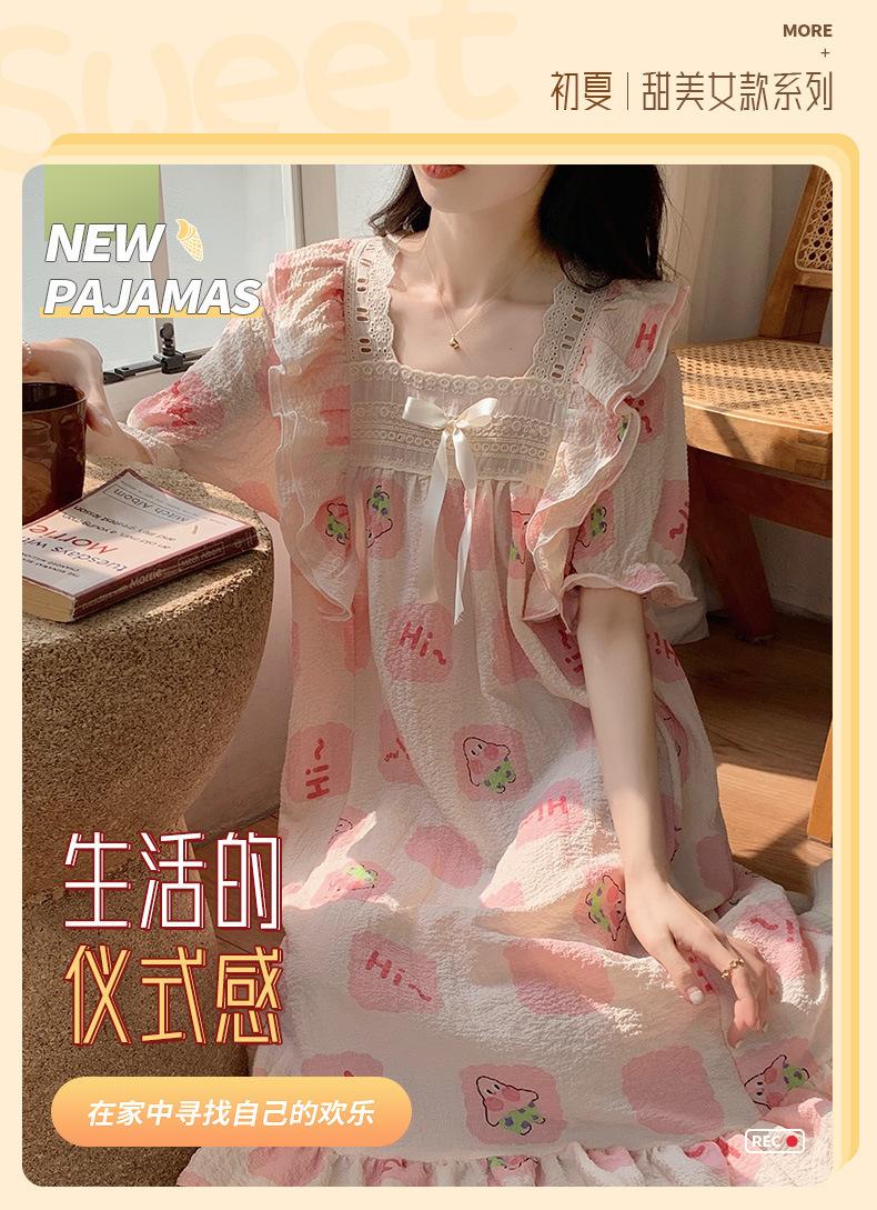 Pijama de verano para mujer, camisón de manga corta, de algodón, estilo japonés, bonito vestido de longitud media, camisón de verano para mujer, ropa de casa