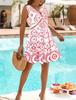 2025 Amazon Vestido Estampado Floral Transfronterizo Europeo y Americano Vestido de Verano para Mujer con Encaje Cut Out Cuello en V Sin Mangas