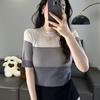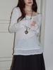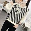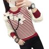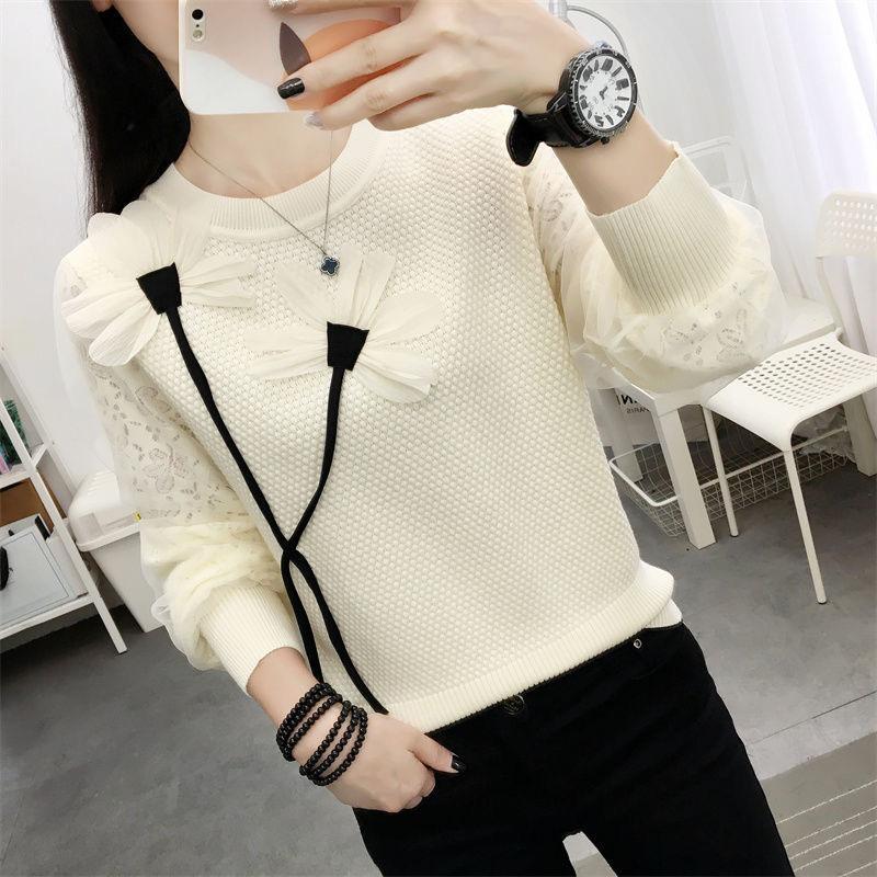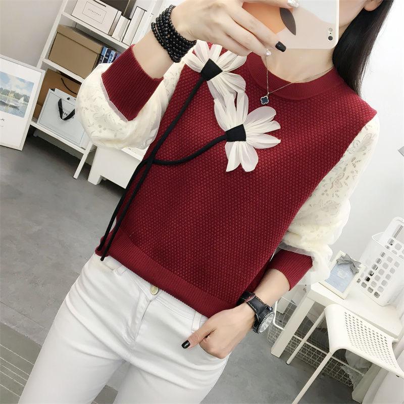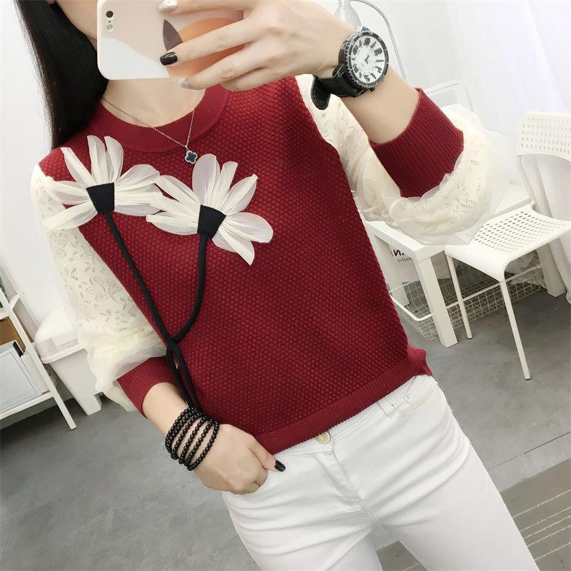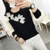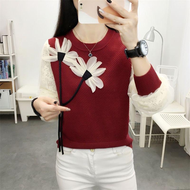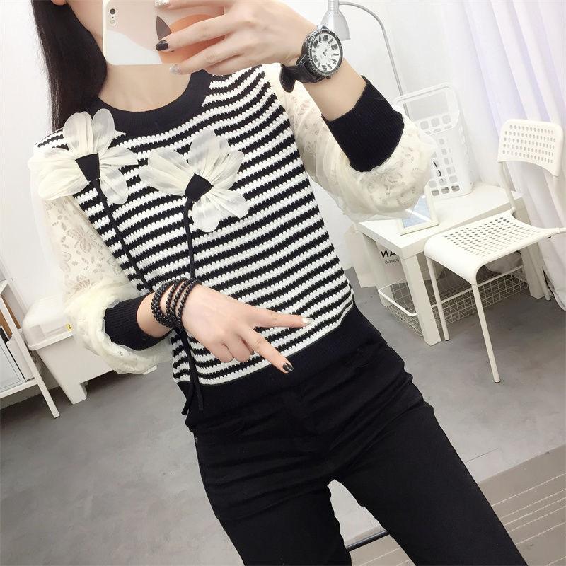 Otoño 2023 nuevo suéter de cuello redondo diseño de alta gama chic flor manga larga suéter a rayas top básico