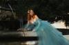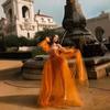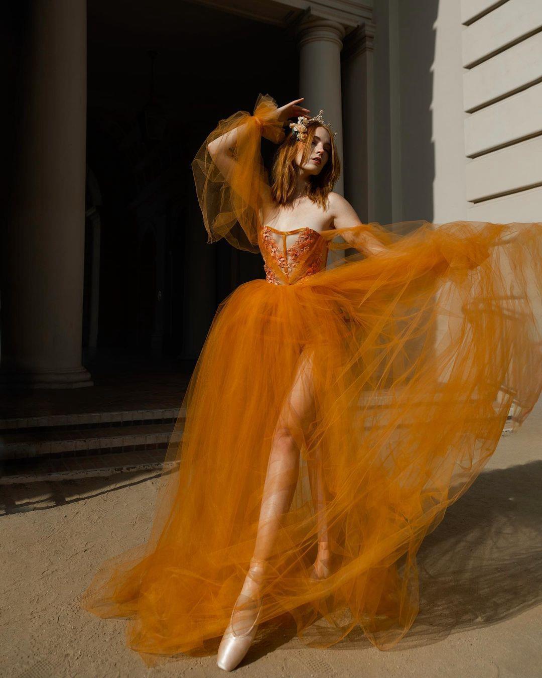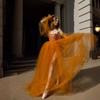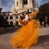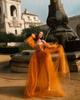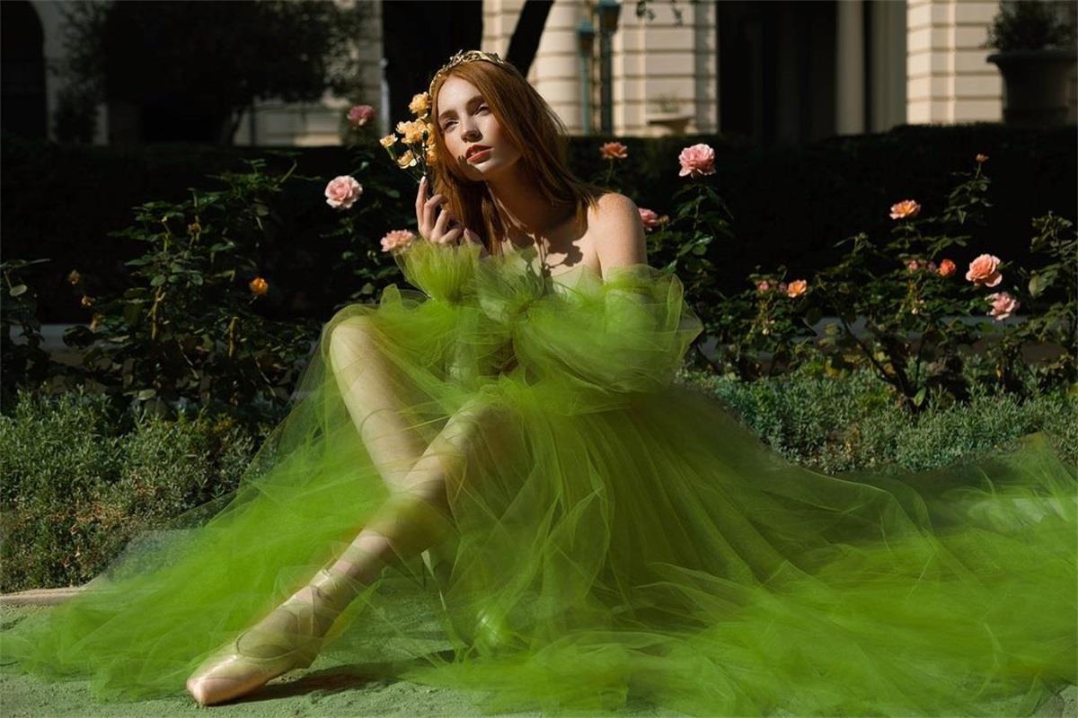 Elegante bata de novia de baile con hombros descubiertos apliques moda luz fiesta anfitrión estudio sesión bata