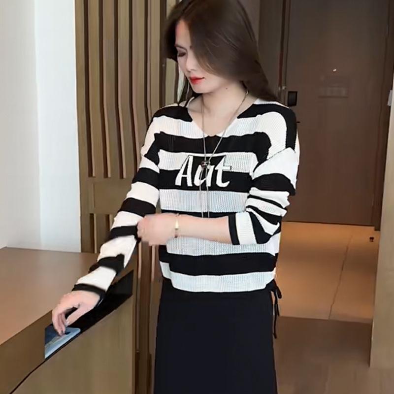 Suéteres de Moda de Nuevo Estilo para Otoño 2025 Primavera y Verano para Mujer, a Rayas, con Protección Solar, Tops Versátiles con Aspecto Adelgazante, Tops de Manga Larga