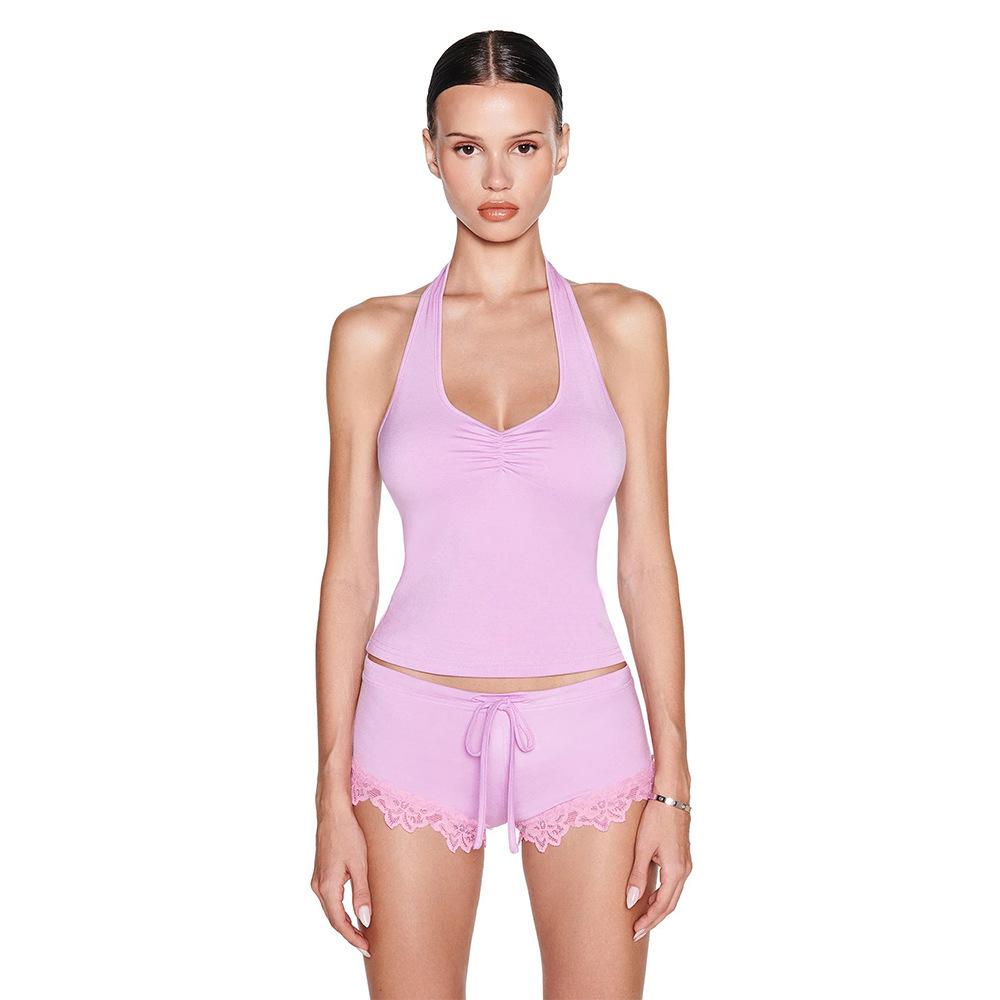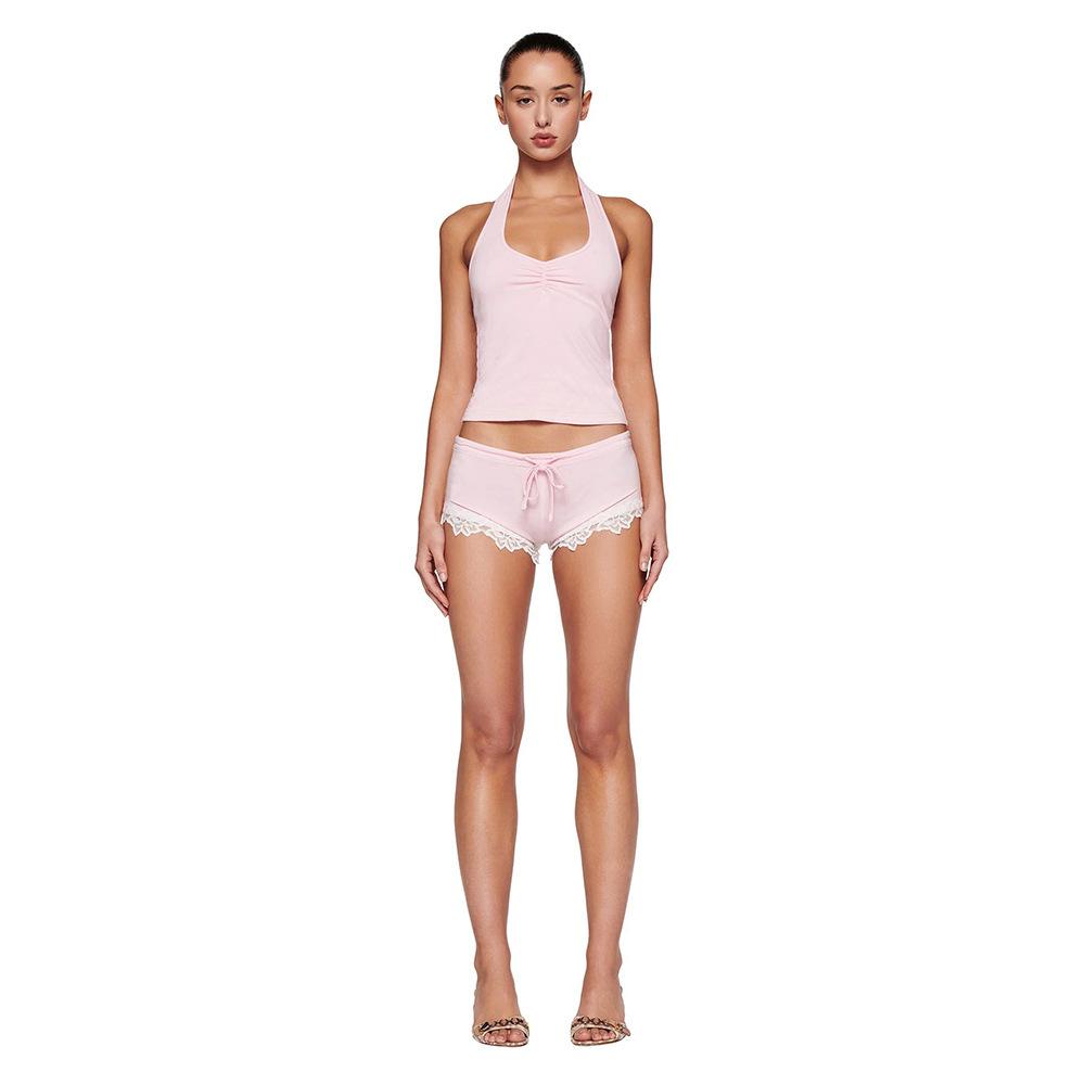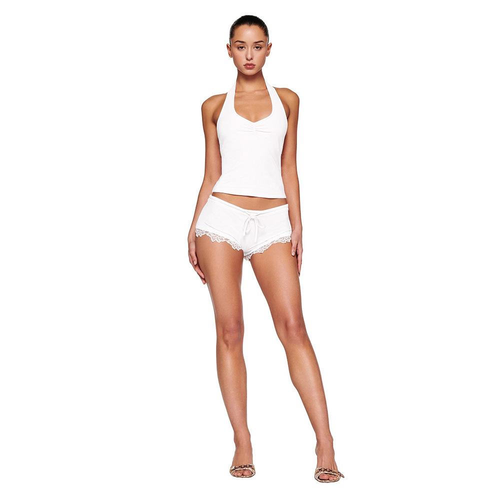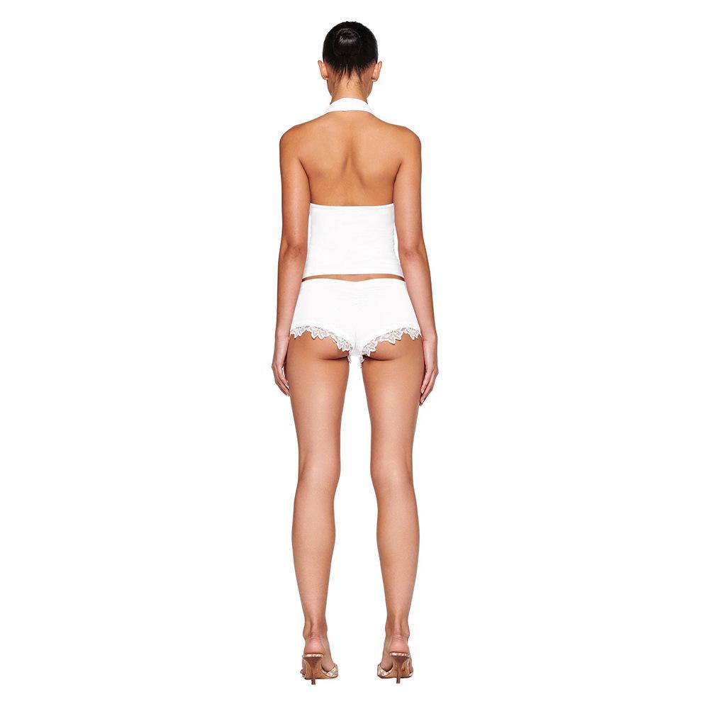 Amazon Comercio Exterior Transfronterizo Verano Nuevo Traje de Encaje Shorts Sexy Chica Caliente Chaleco Halter Conjunto de Dos Piezas