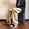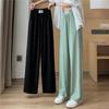 Pantalones rectos delgados grises de pierna ancha para mujer, verano, cintura alta, casuales, pantalones pequeños con cintura holgada y pantalones frescos