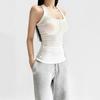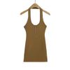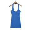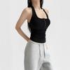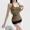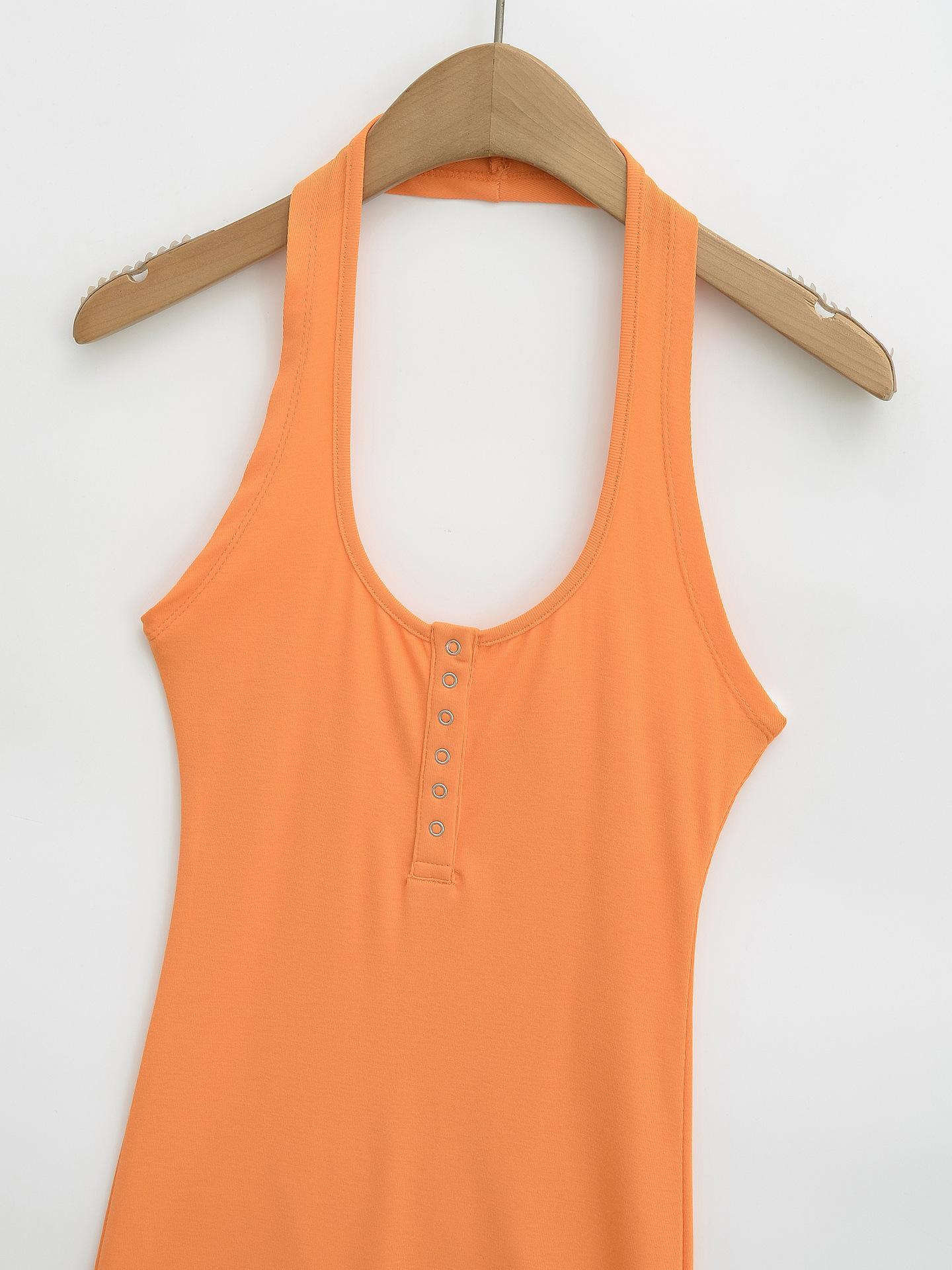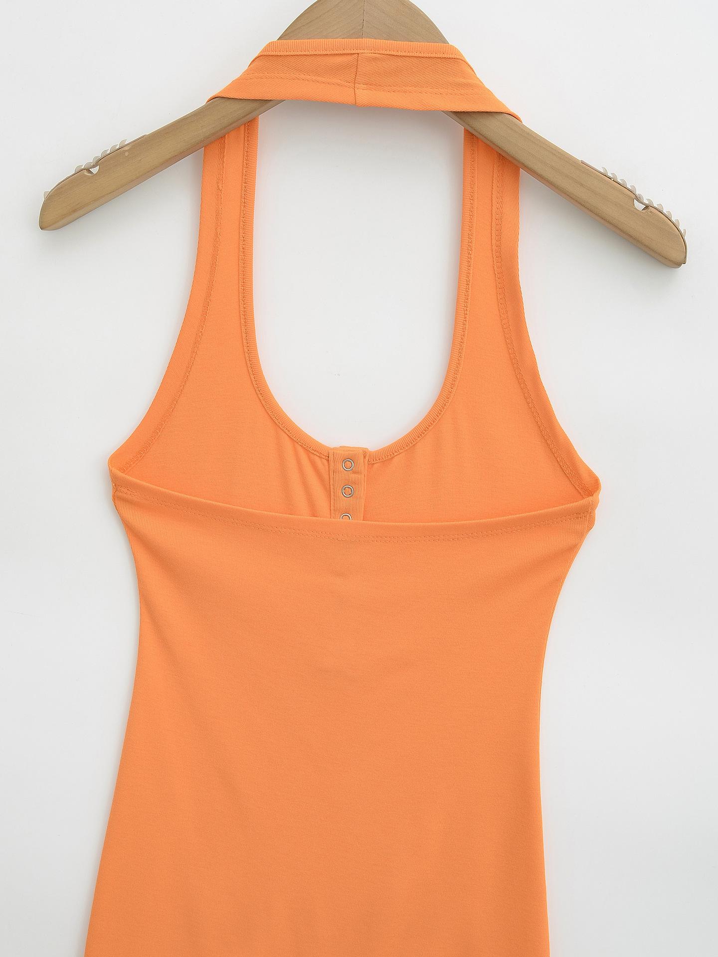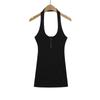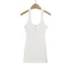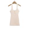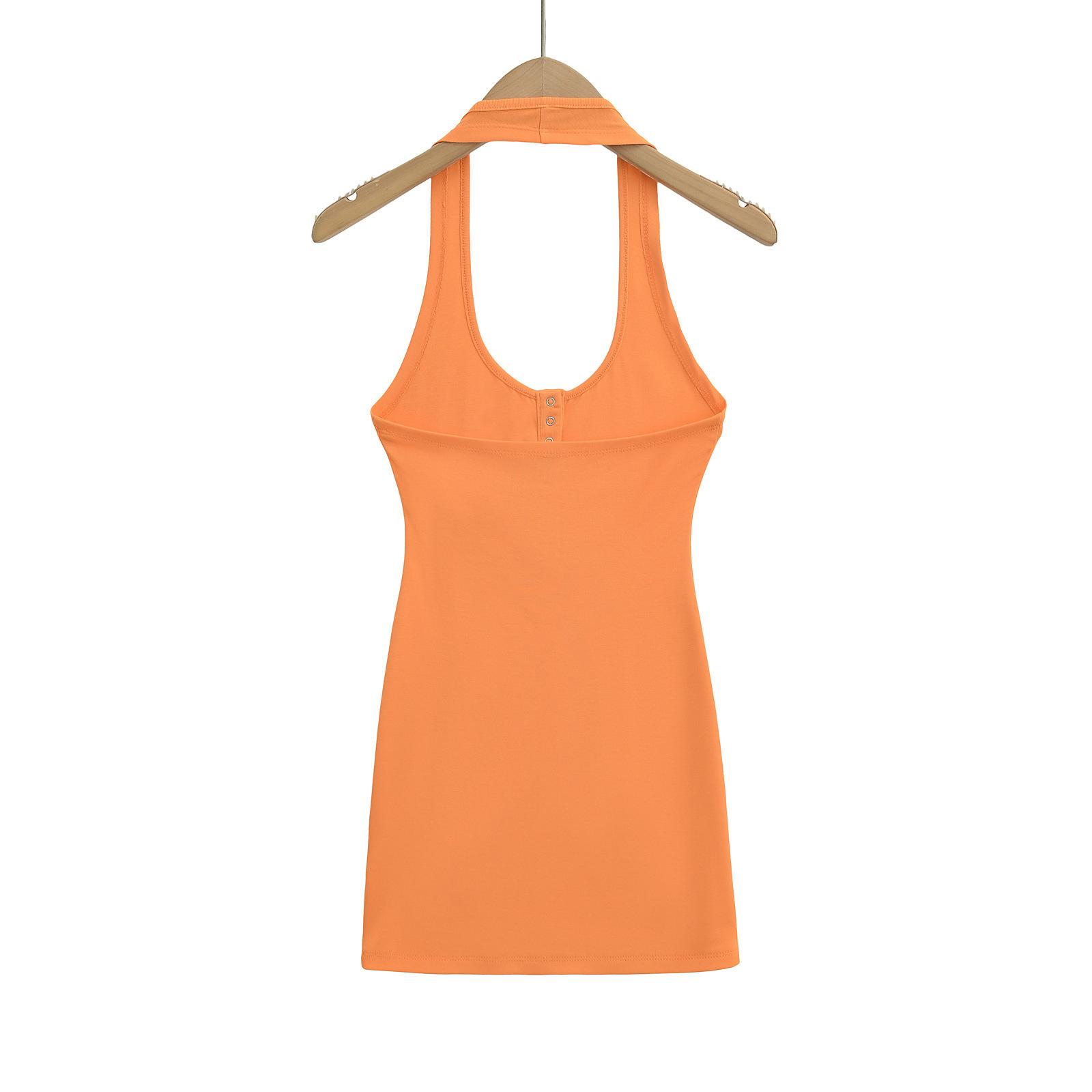 Deseo Puro Chica Caliente Sexy Espalda Descubierta Halter Camisola de Verano para Mujer Versátil Ajustado Botón de Cinco Garras Top de Cuello Redondo Grande