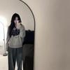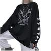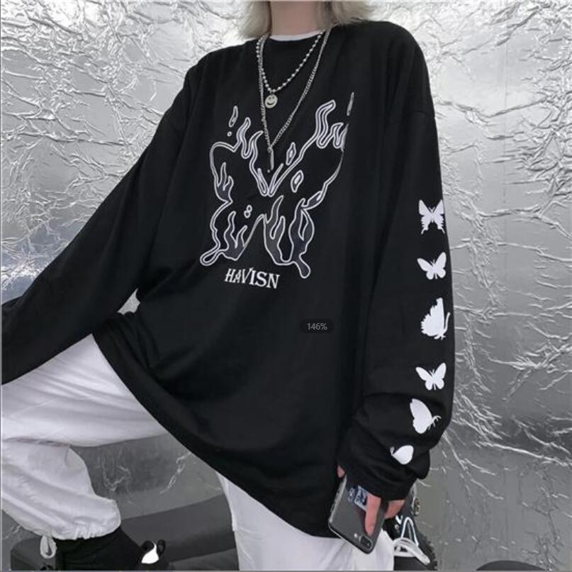 Otoño Retro Oscuro Ins Manga Larga Contraste Estampado Mariposa Top Suelto Cuello Redondo Jersey Camiseta Casual para Hombre y Mujer