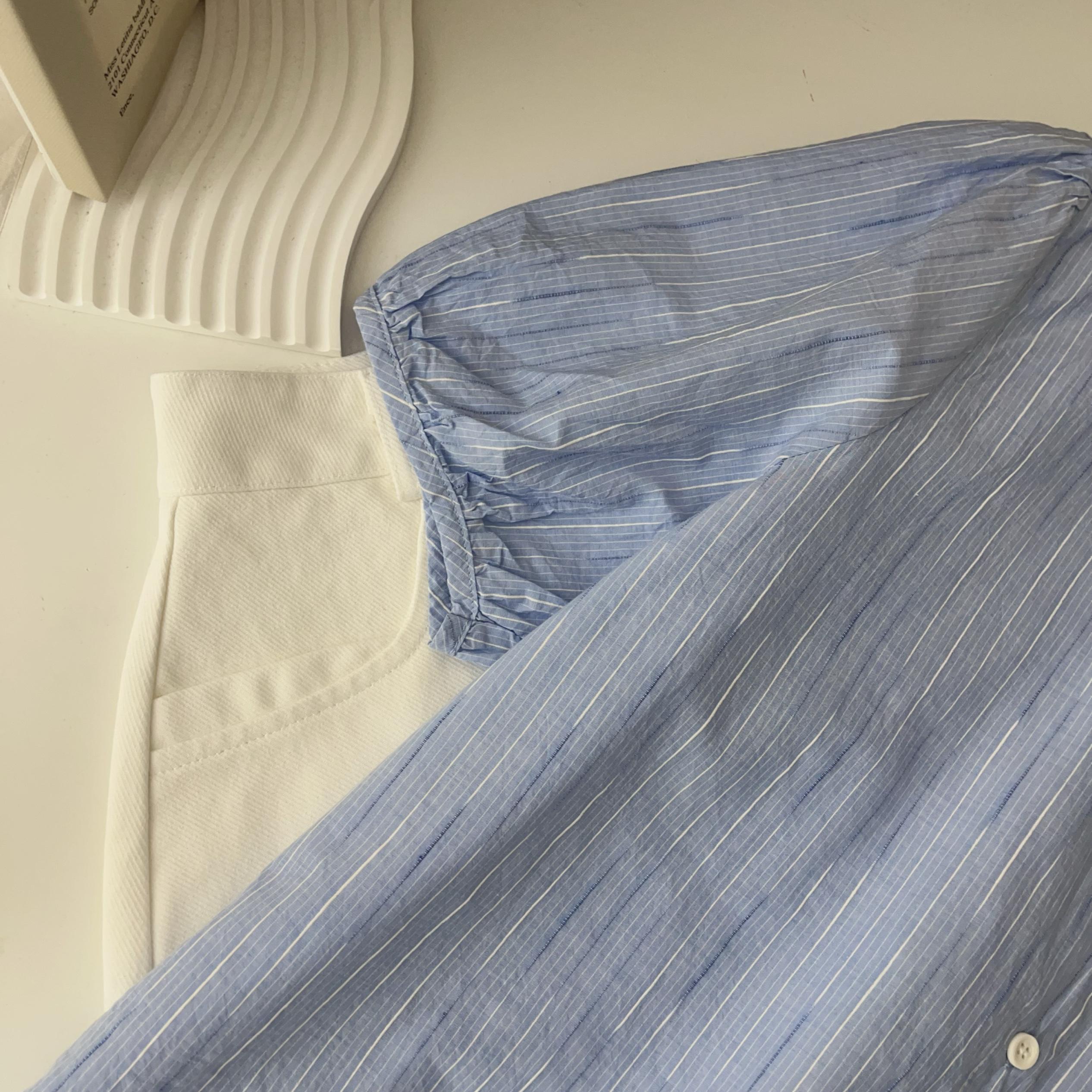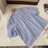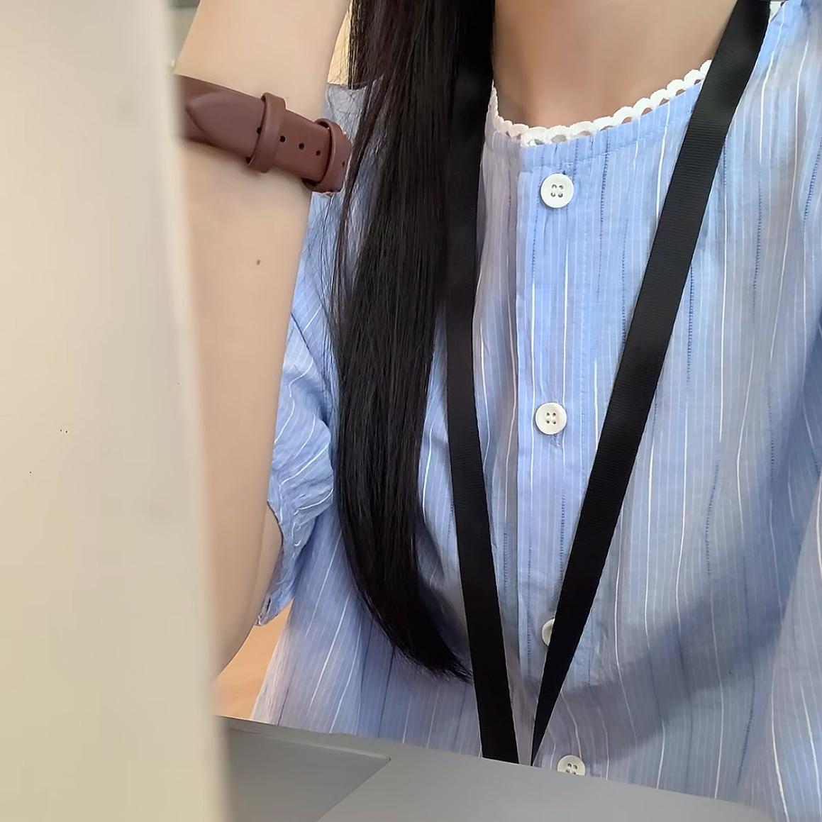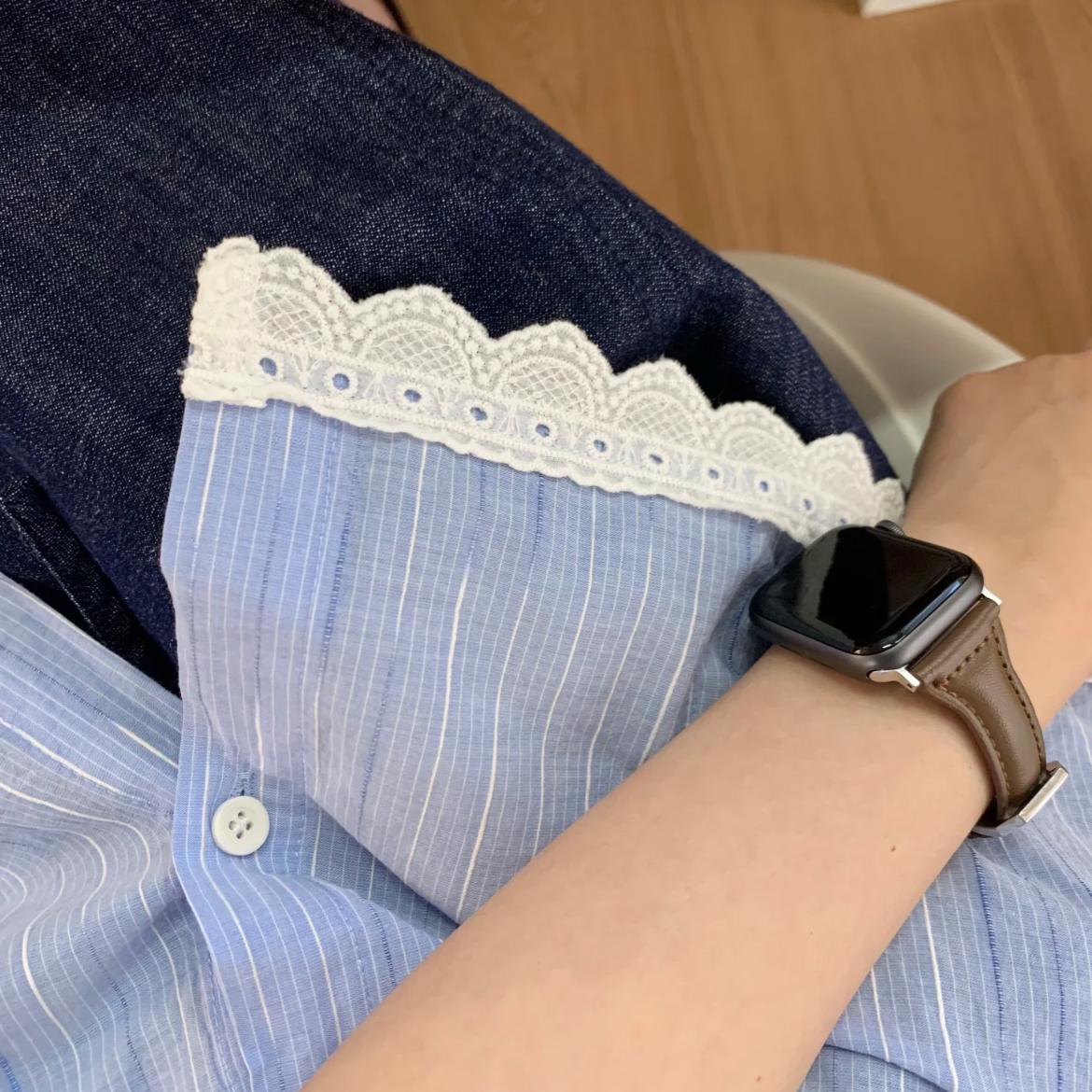 2025 Nuevo Verano Estilo Coreano Suelto y Moderno Encaje Manga Tres Cuartos Camisa Rayada Versátil Top Cuello Redondo Camisa Básica