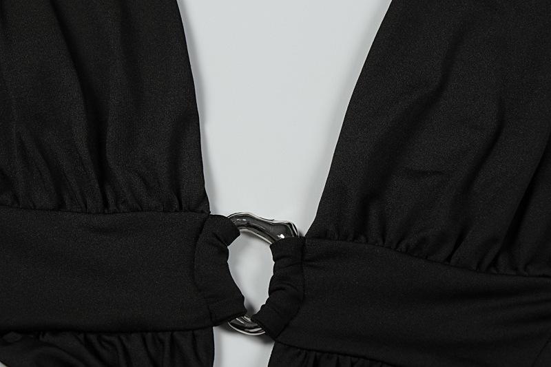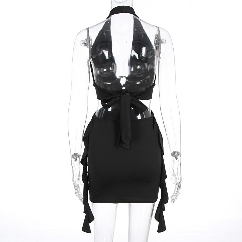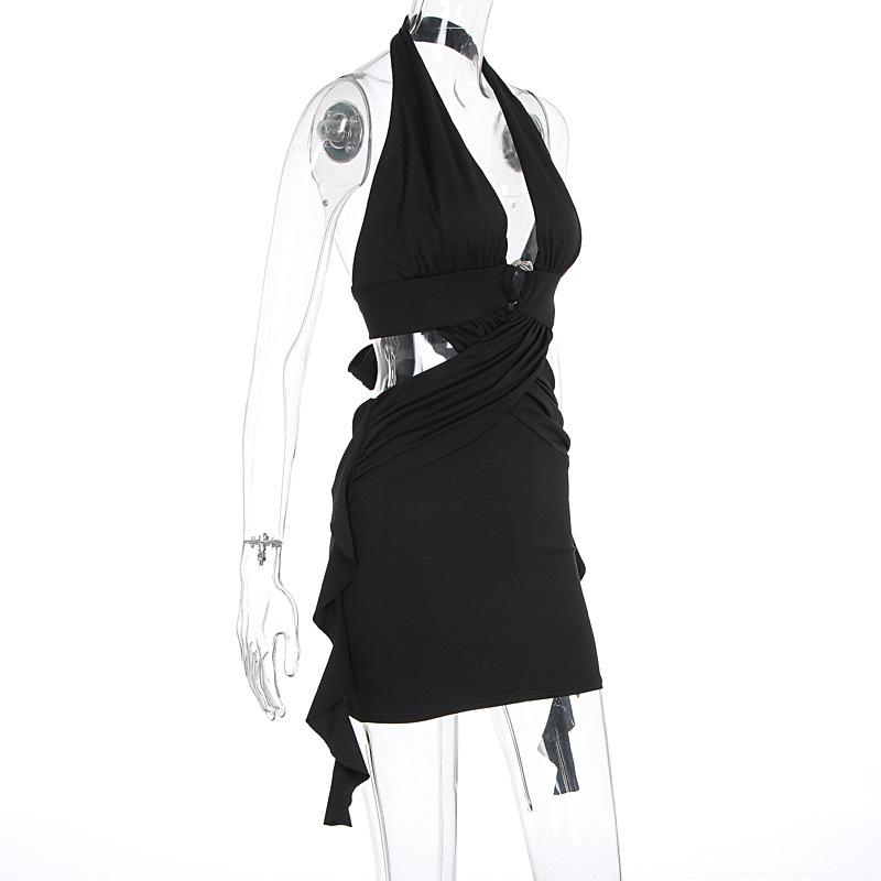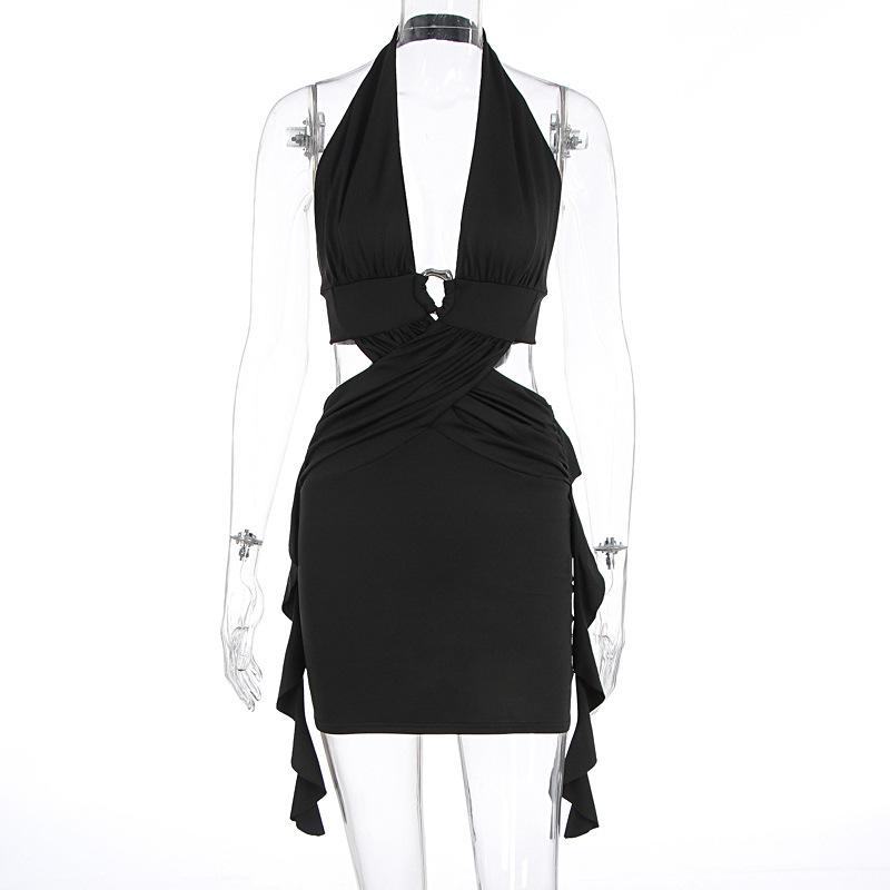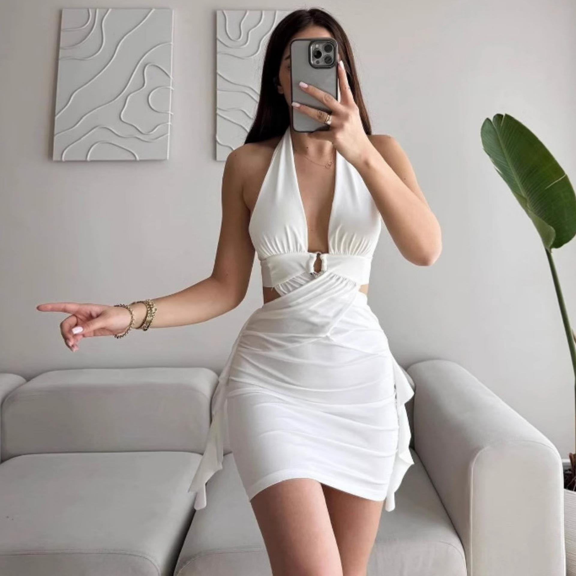 Transfronterizo 2025 Verano Nuevo Estilo Europeo y Americano Mujer Sexy Chica Caliente Halter Espalda Descubierta Corte Bajo Ajustado Vestido Ceñido a las Caderas