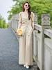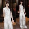 Traje Delgado de Moda de Verano para Mujer, Diseño Nuevo de Verano 2025, Top con Cierre y Set de Pantalones de Pierna Ancha