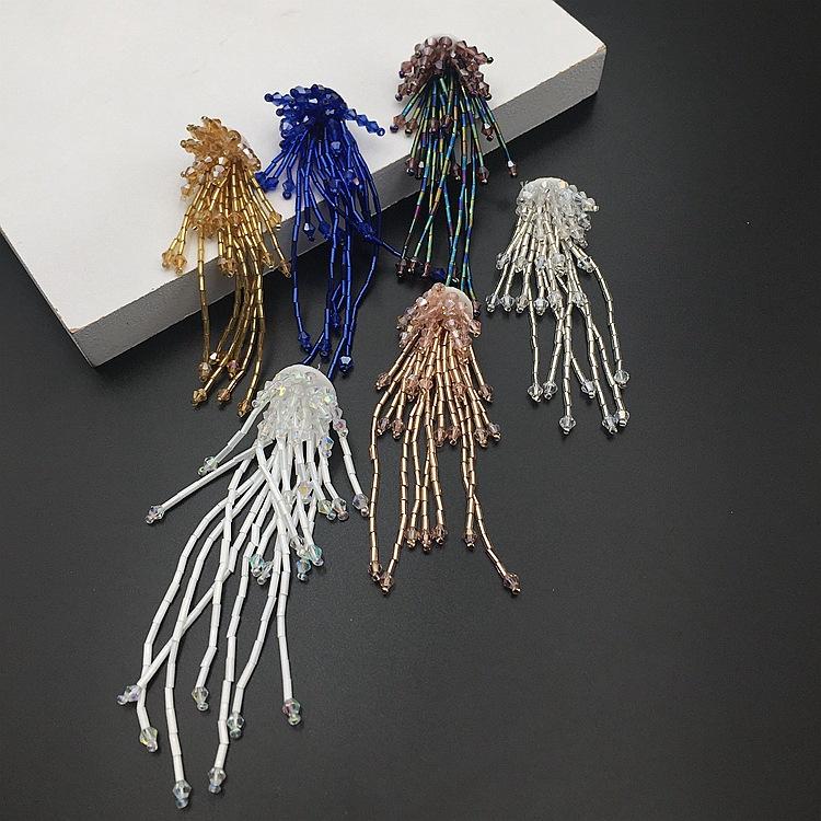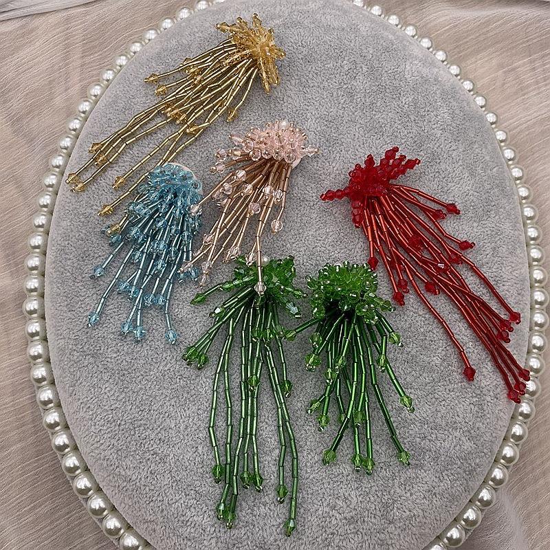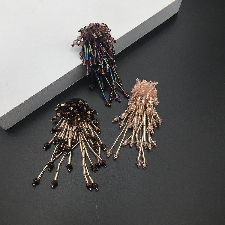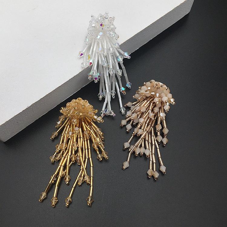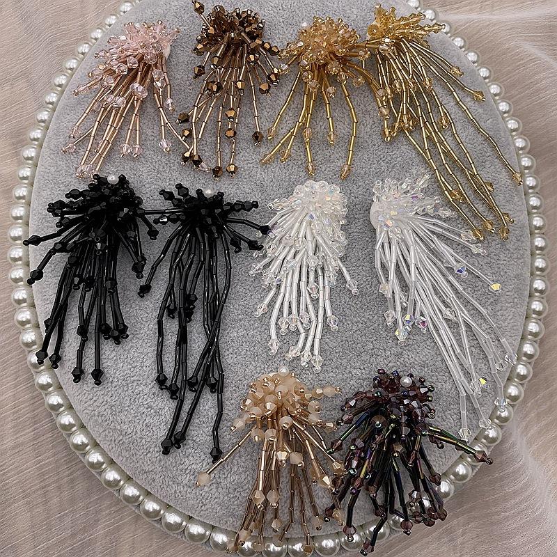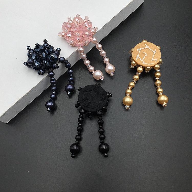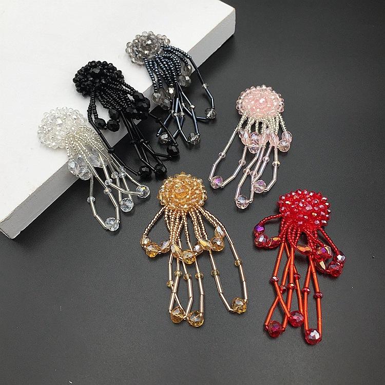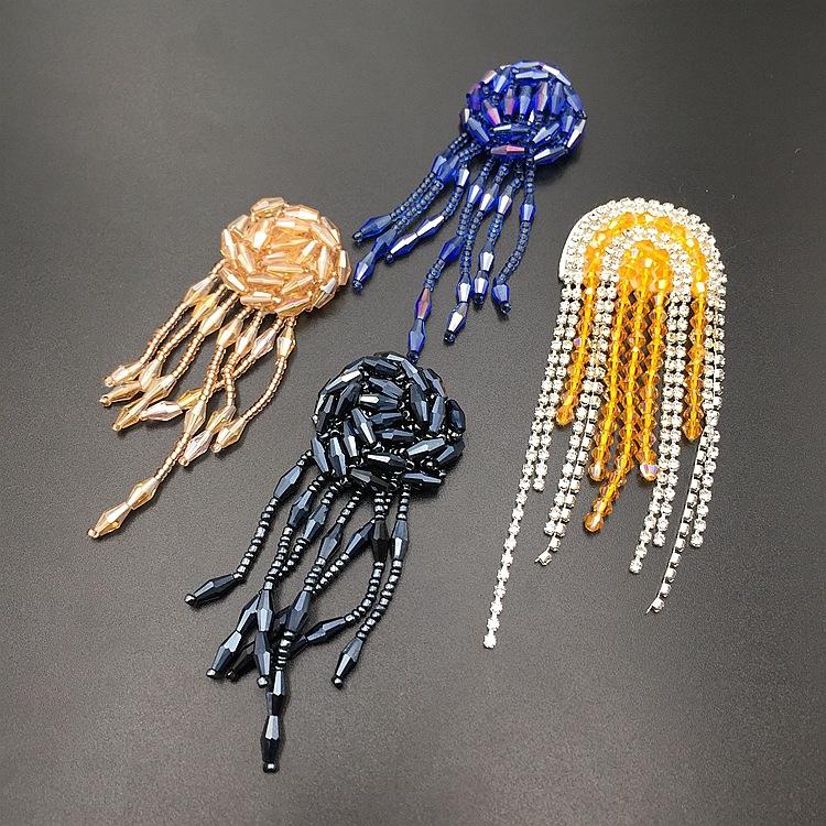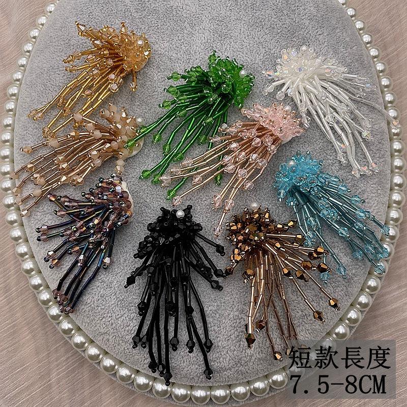 Adornos tridimensionales hechos a mano con cuentas de cristal, borlas de tubo de cuentas, flores, calcomanías de tela, zapatos y sombreros, aretes, accesorios decorativos para ropa, accesorios DIY
