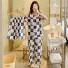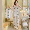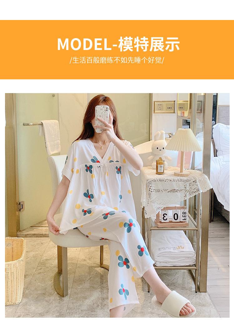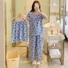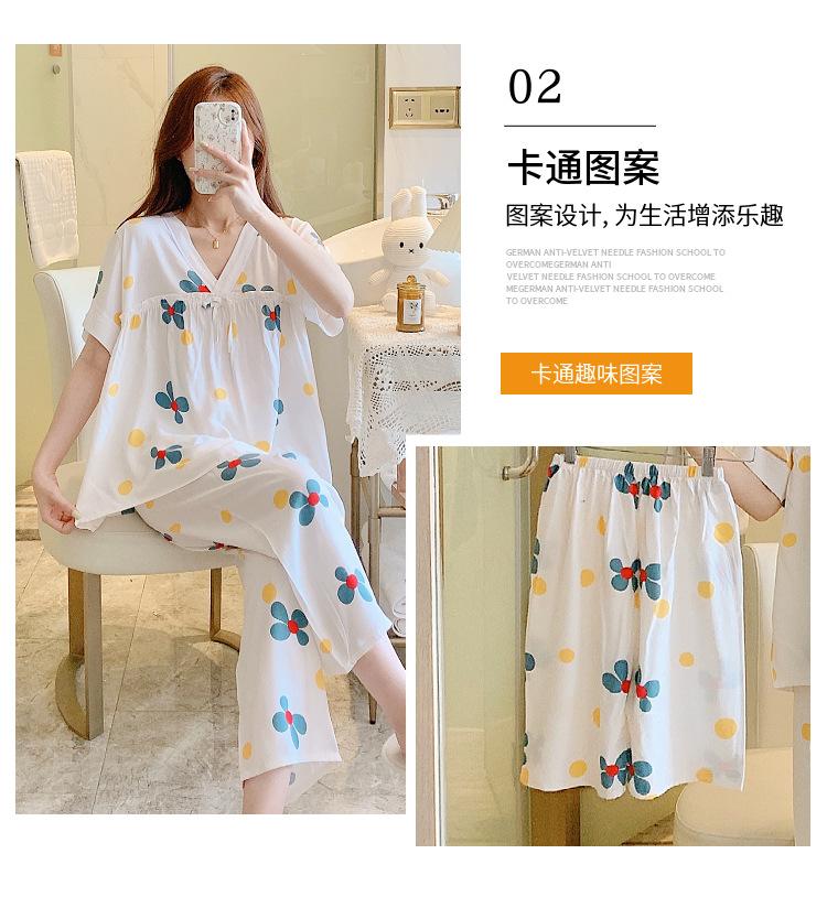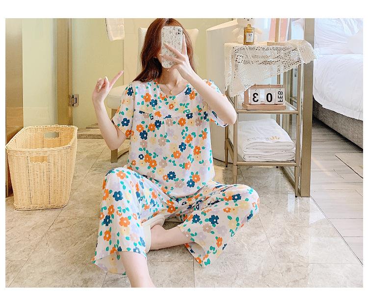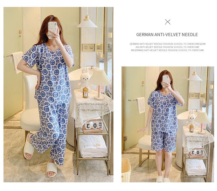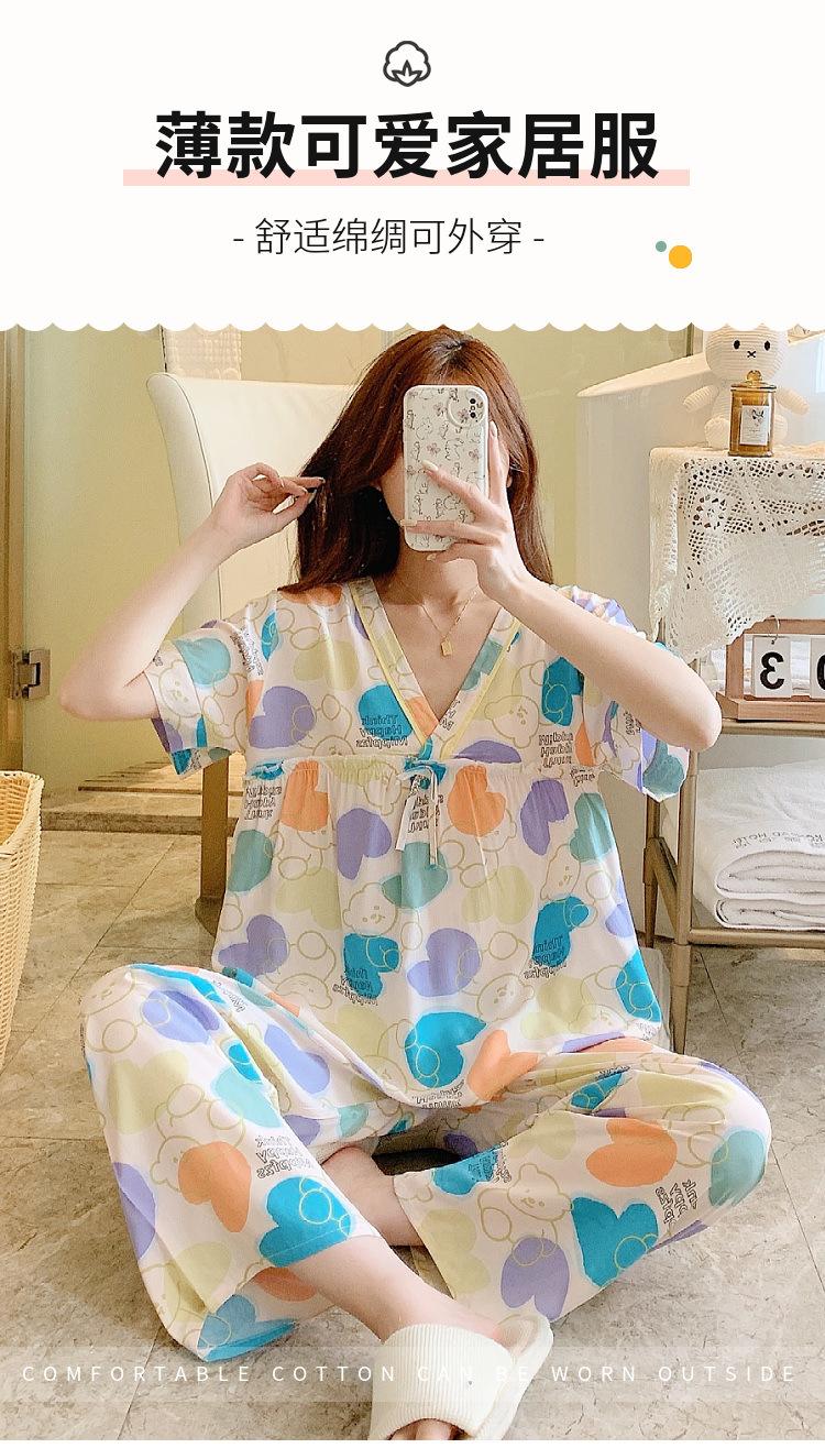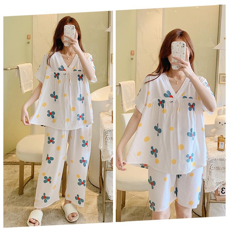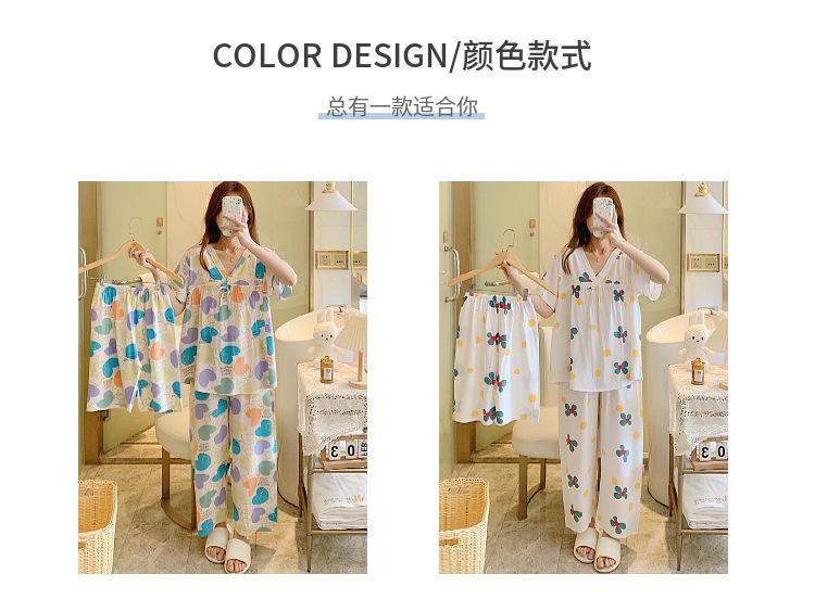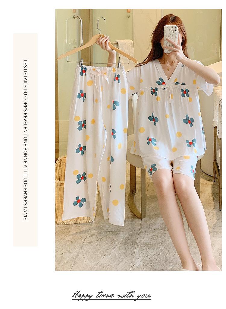 Pijama de Algodón Seda Traje de Verano para Mujer Manga Corta Pantalones Lindo Delgado Verano Algodón Seda Primavera y Otoño Ropa para el Hogar Conjunto de Tres Piezas