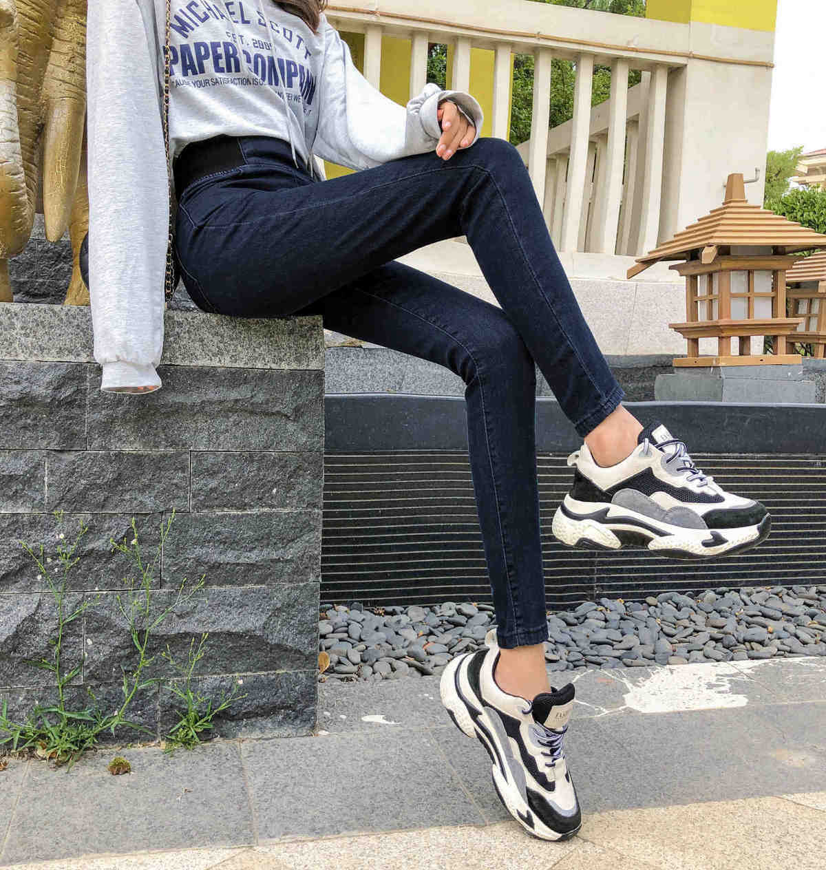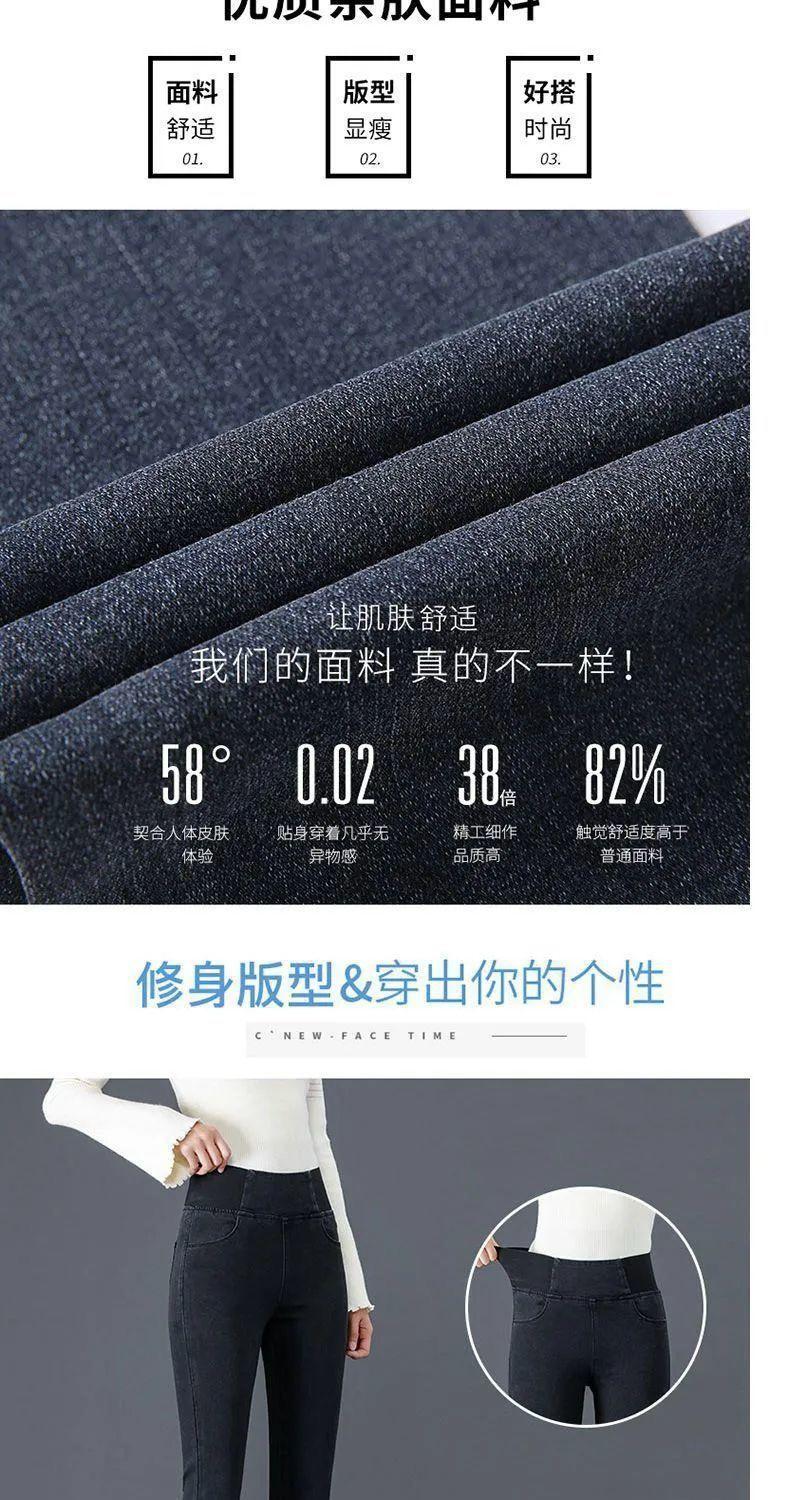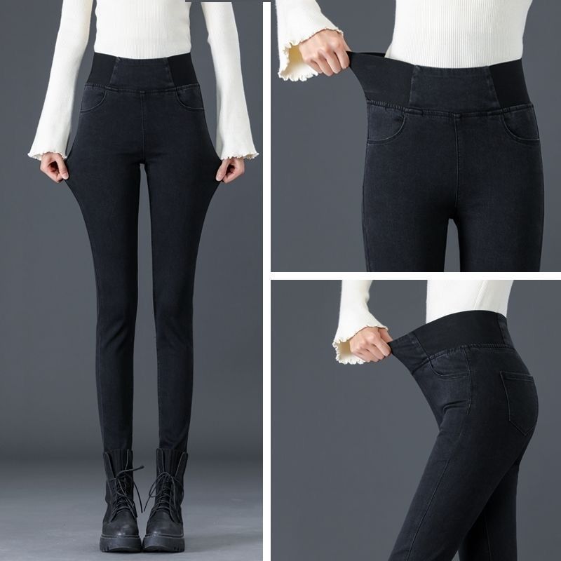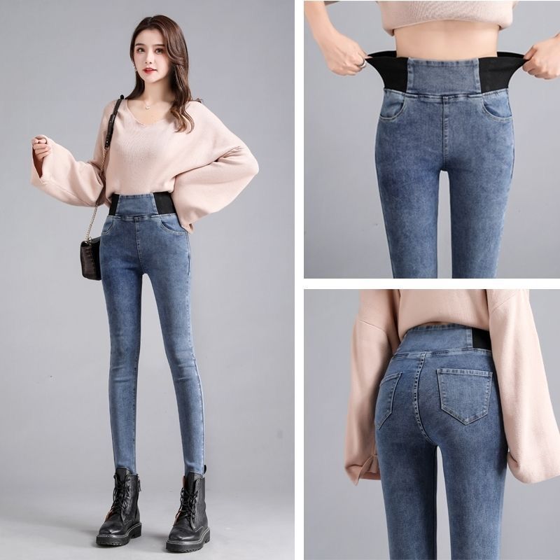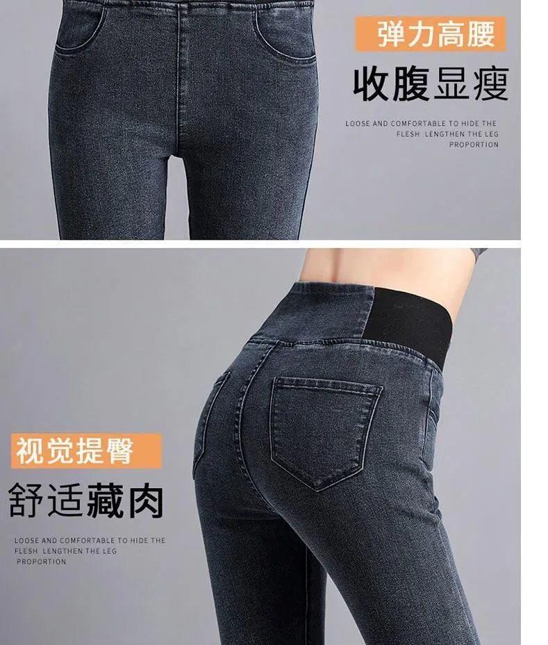 Primavera y Otoño Nuevos Jeans de Cintura Alta con Cintura Elástica Pantalones de Mujer Talla Grande para Delgadas Pantalones Lápiz