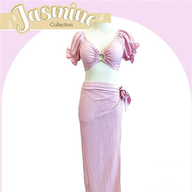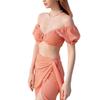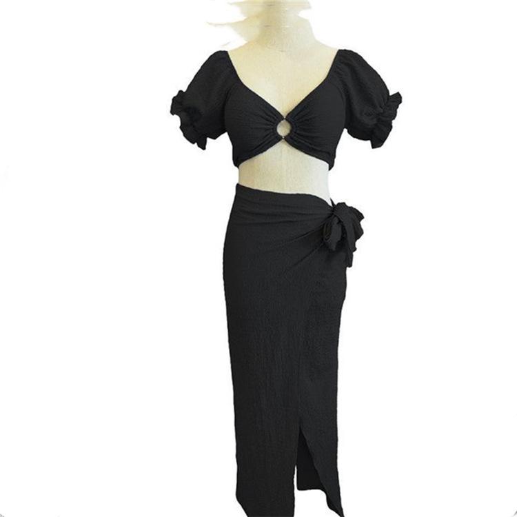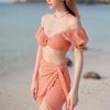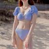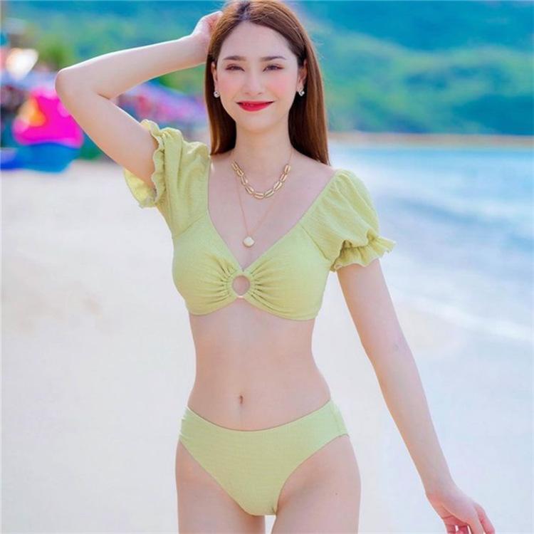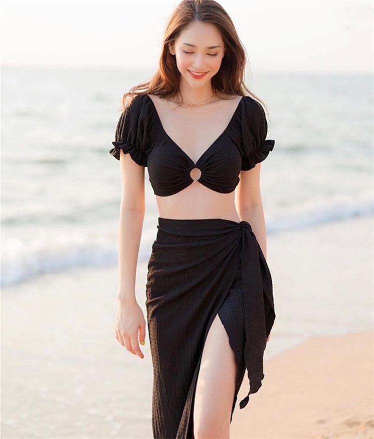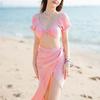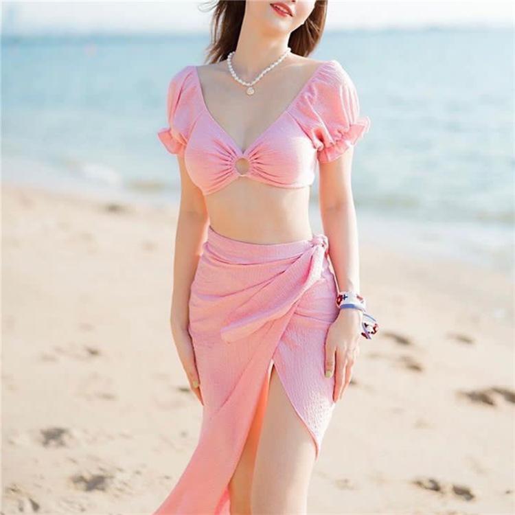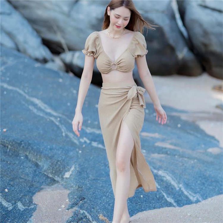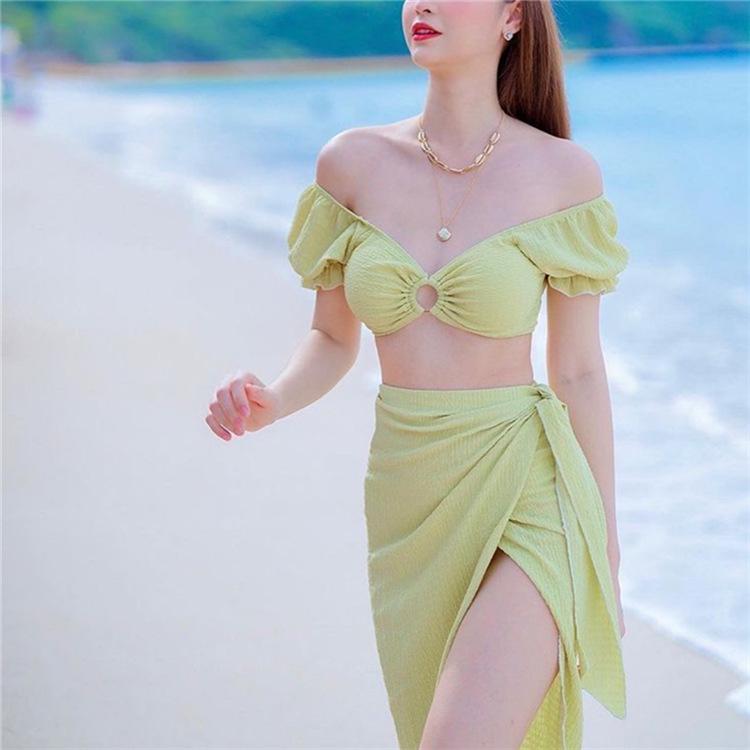 Traje de baño bikini de tres piezas con espalda hermosa para mujer, sexy, para playa, venta al por mayor, vacaciones junto al mar, estilo ins