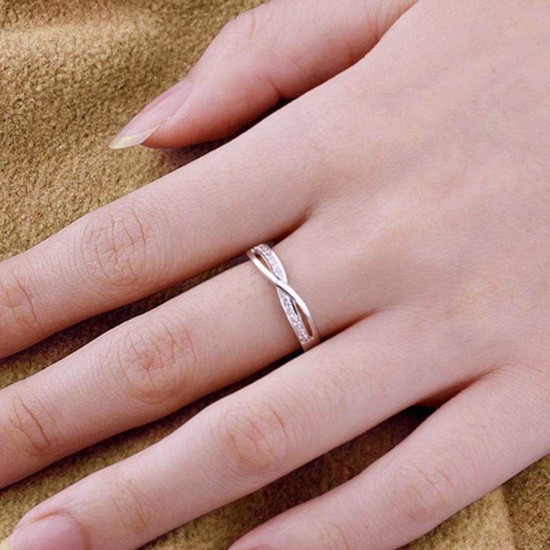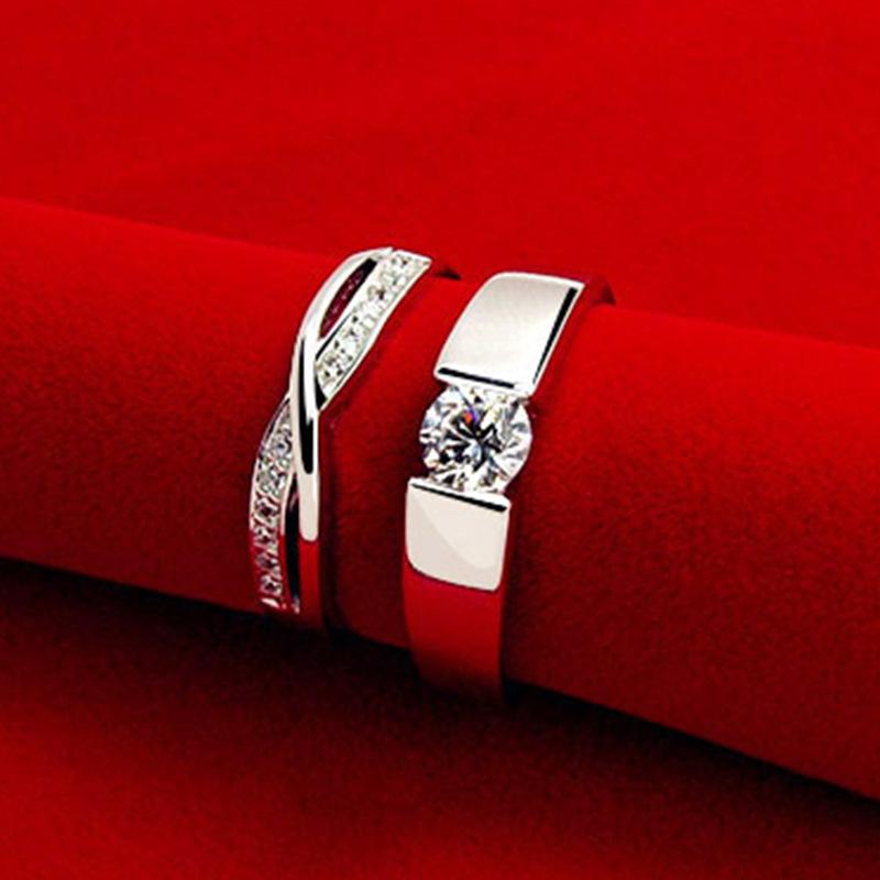 Anillos Clásicos de Diamantes para Pareja Chapados en Platino, Anillos Entrelazados de Moissanita Imitación, Anillos de Diamantes para Fiesta de Bodas