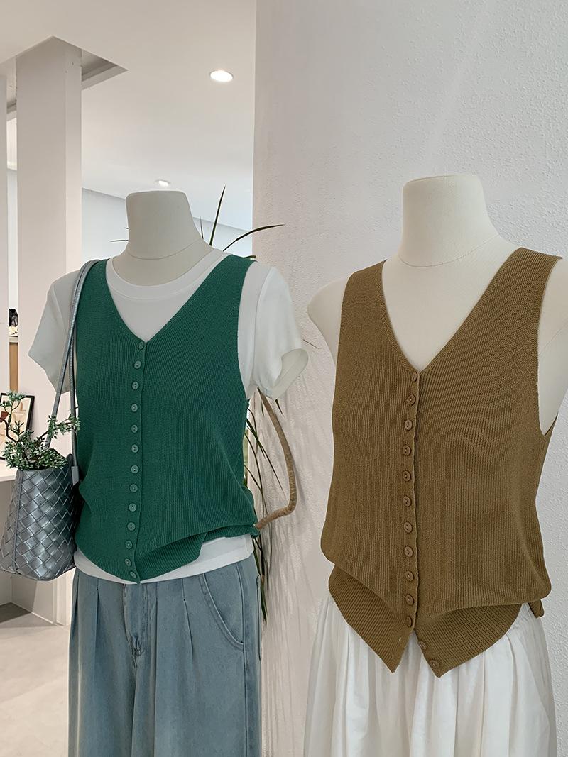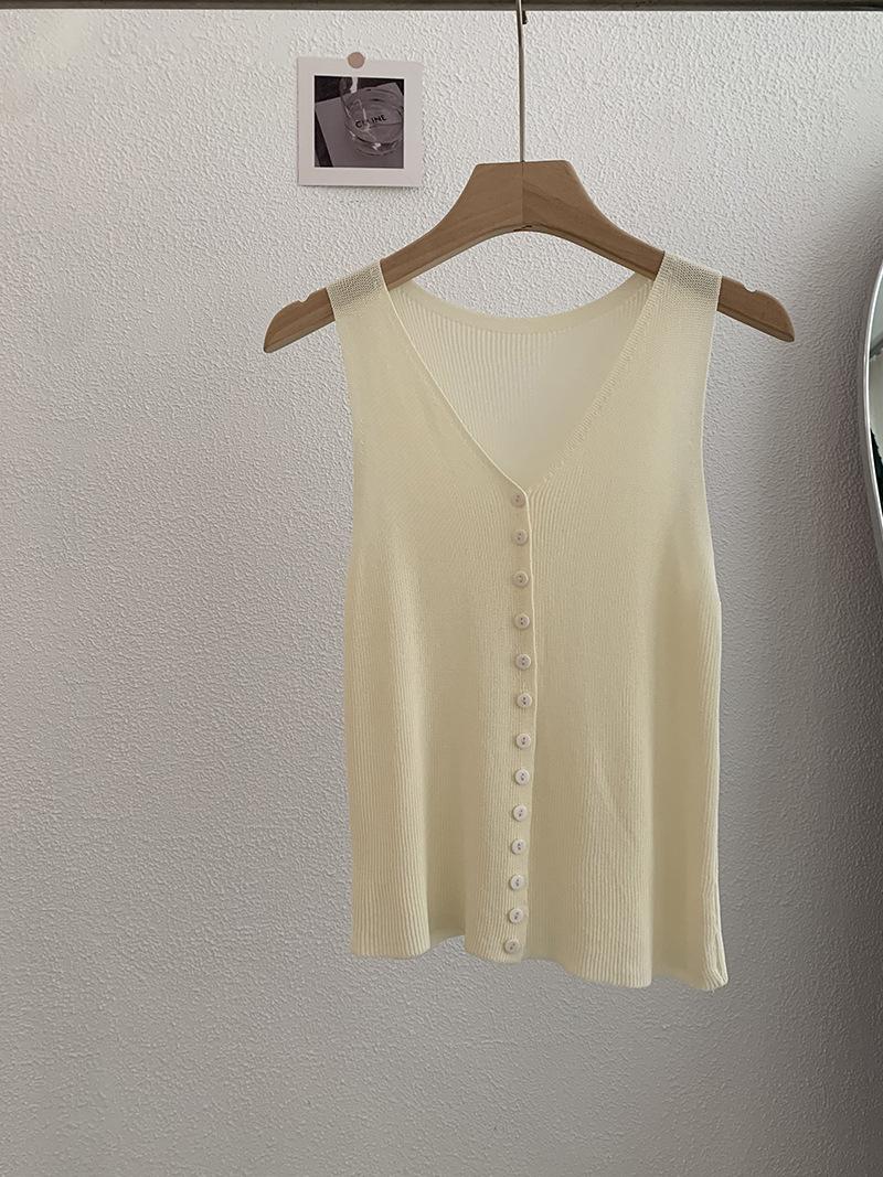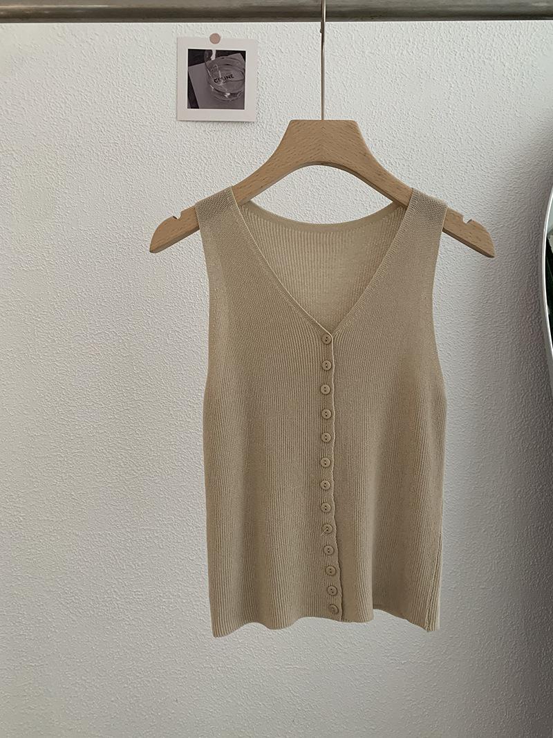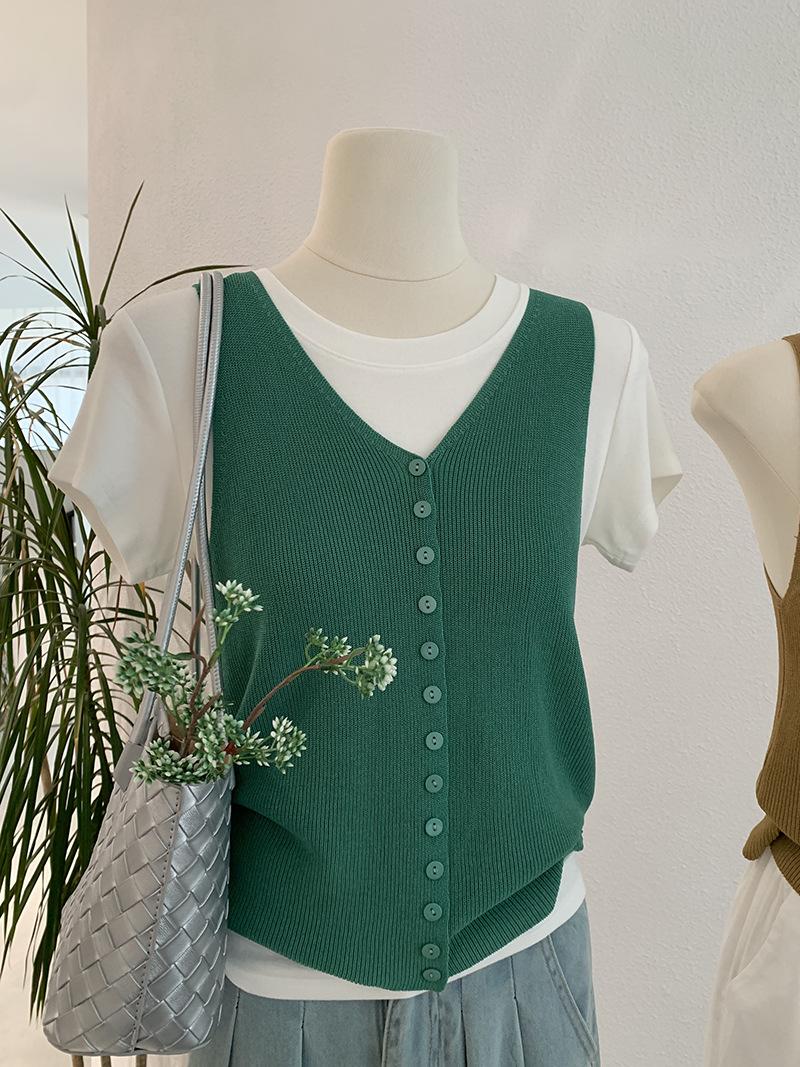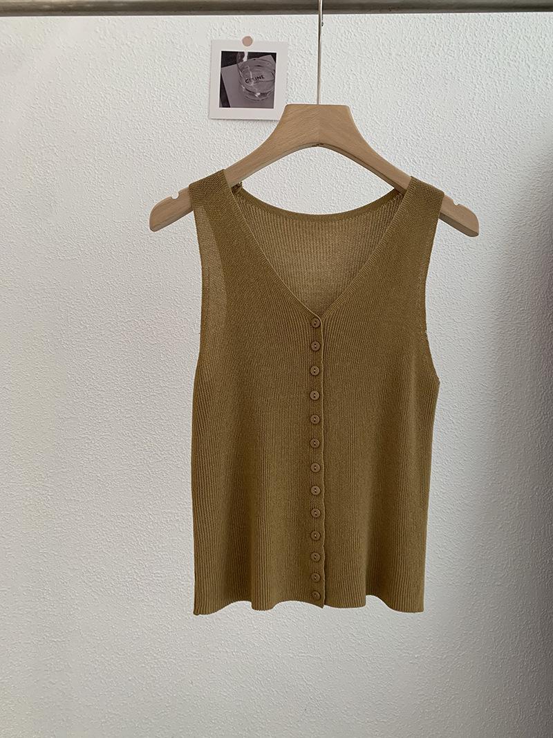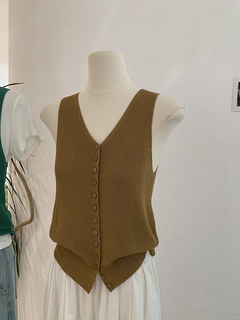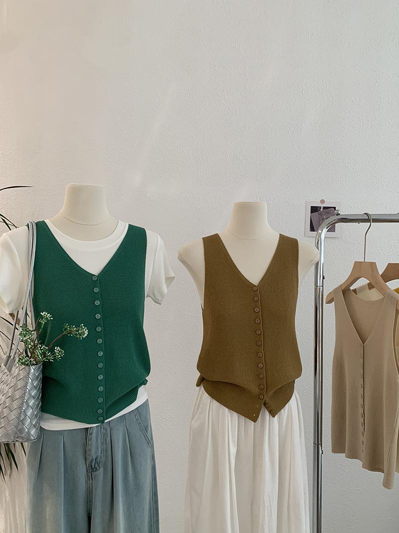 Chaleco de Punto sin Mangas con Cuello en V Omalai para Mujer Verano Nuevo Estilo Cómodo Casual Look Adelgazante Top Venta al por Mayor Tendencia 3670