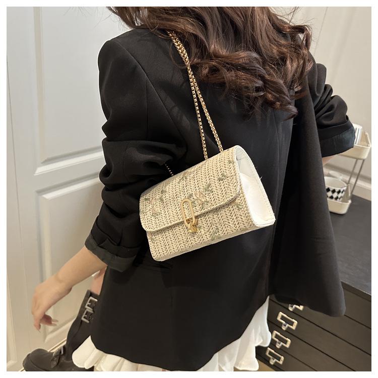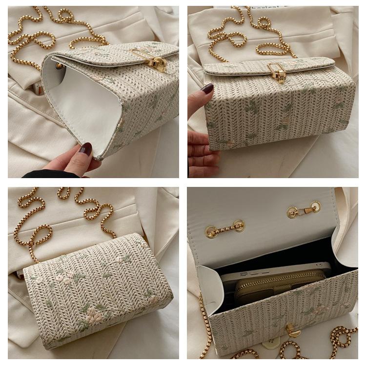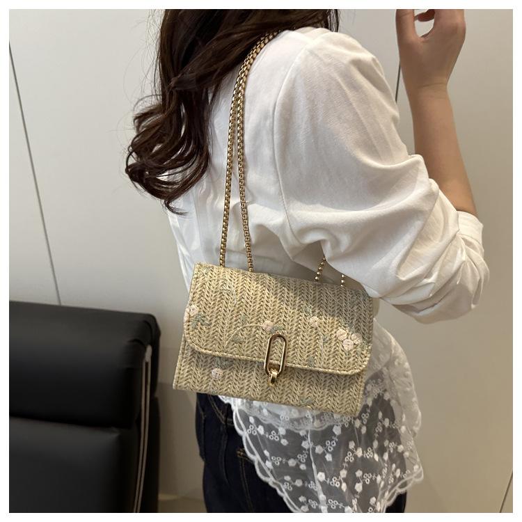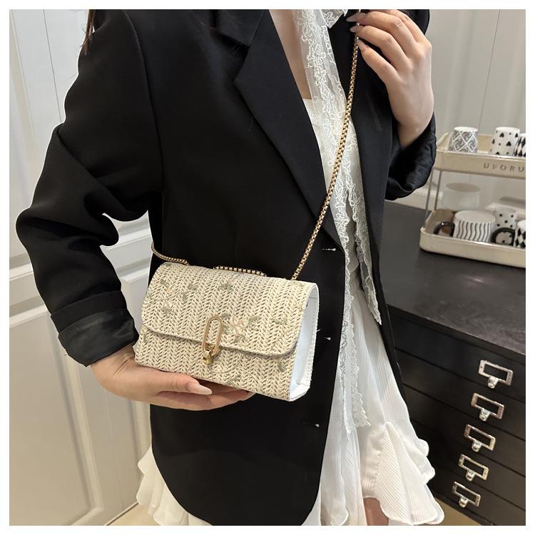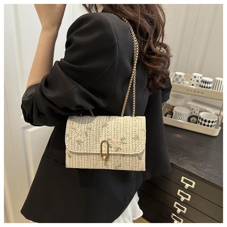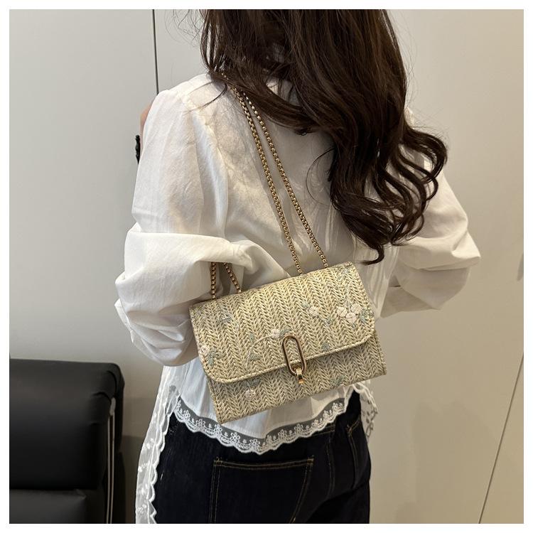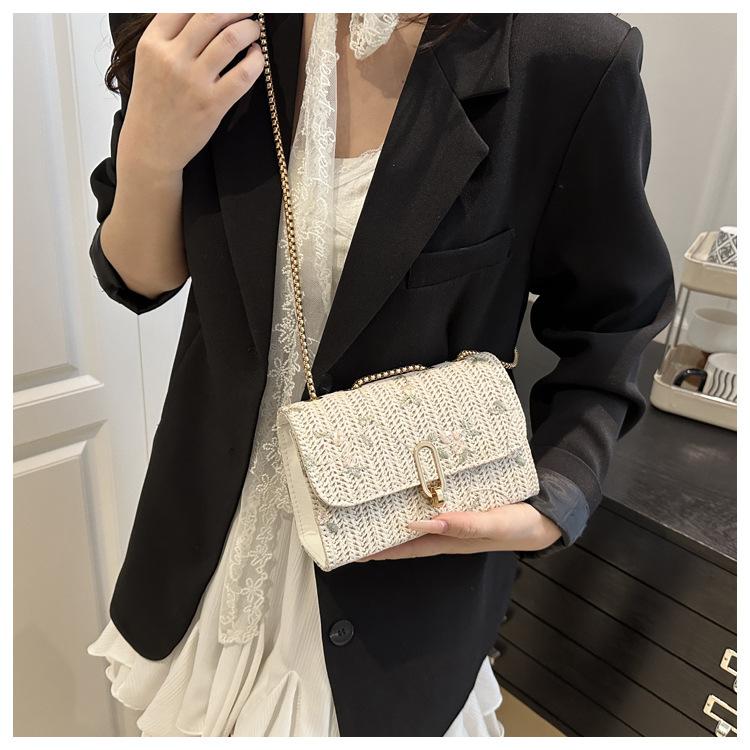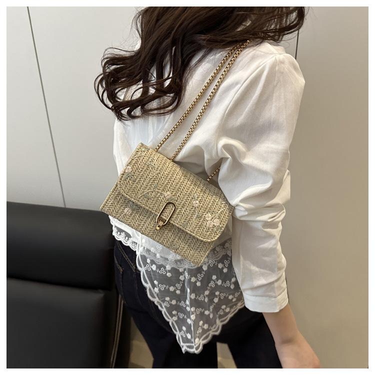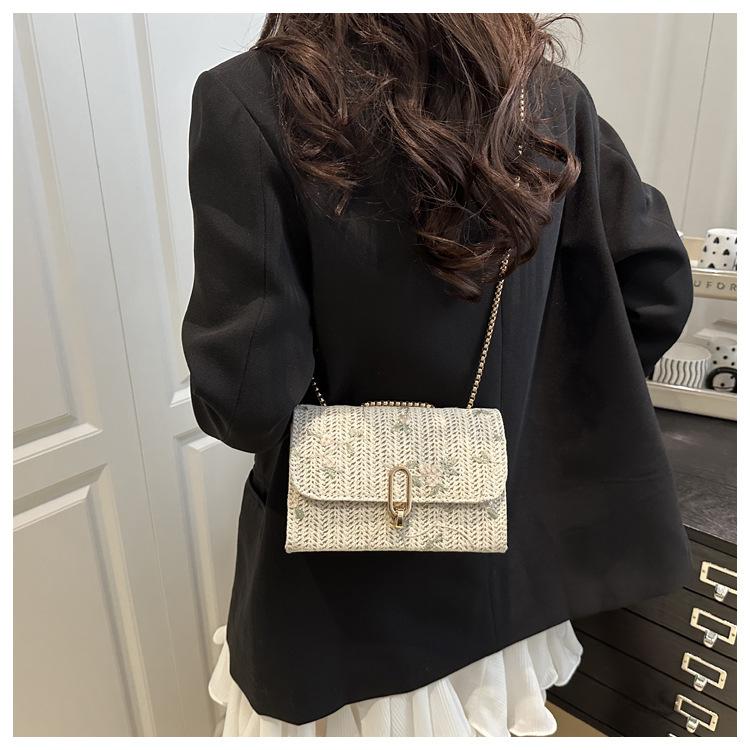 Bolso de Paja Tejido de Verano para Mujer 2025 Nuevo Estilo Pequeño Fresco Flor de Encaje Tejido Bolso de Silla de Montar Versátil Bolso de Hombro Cruzado