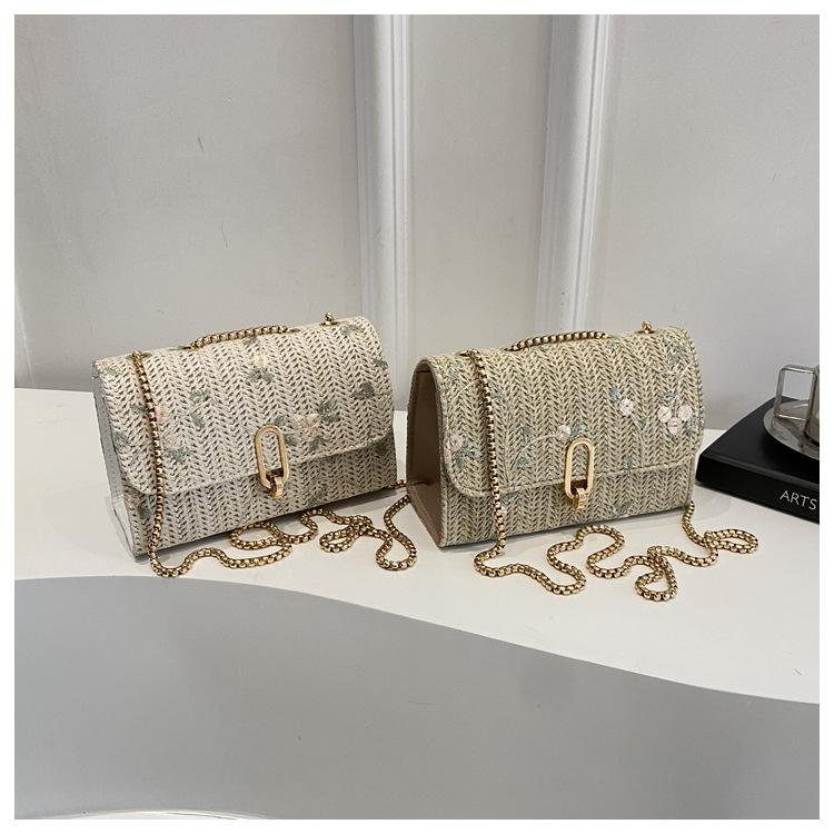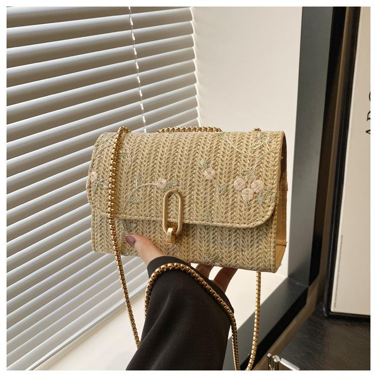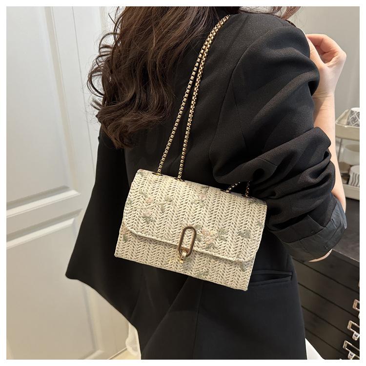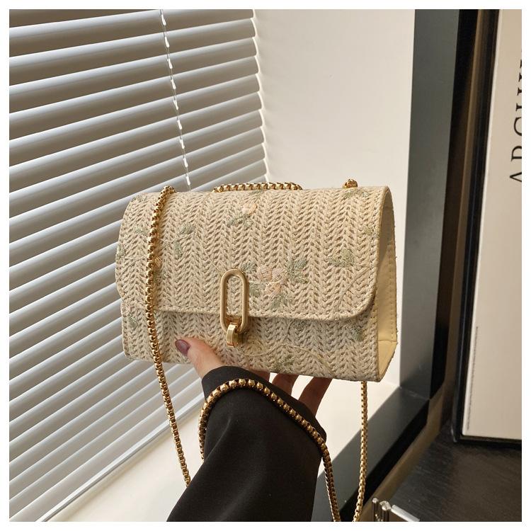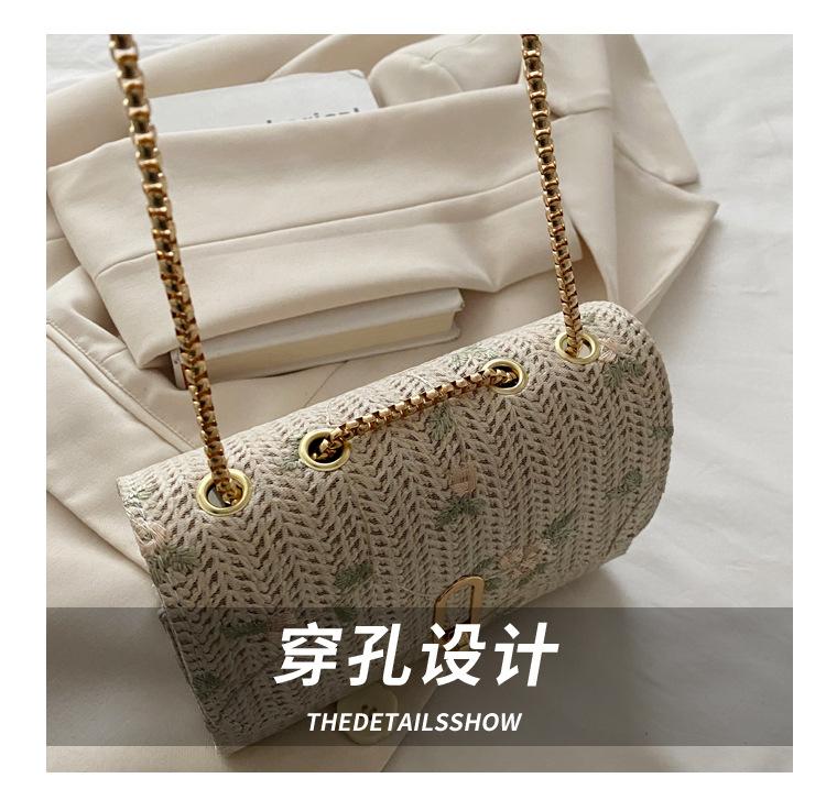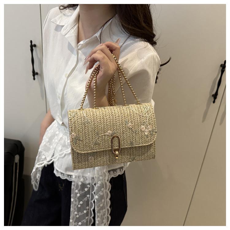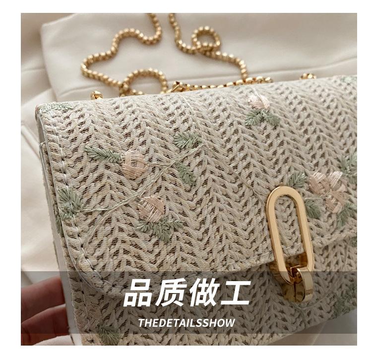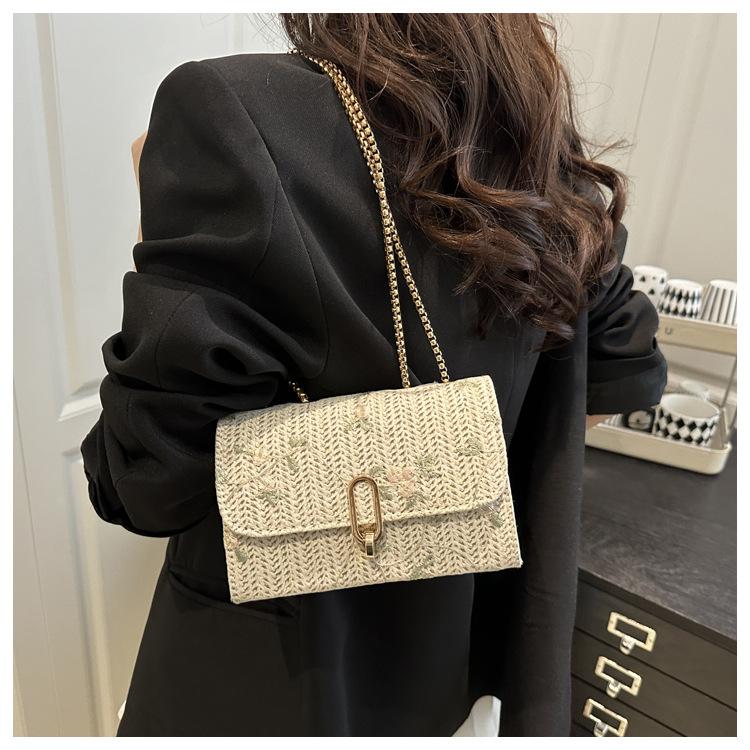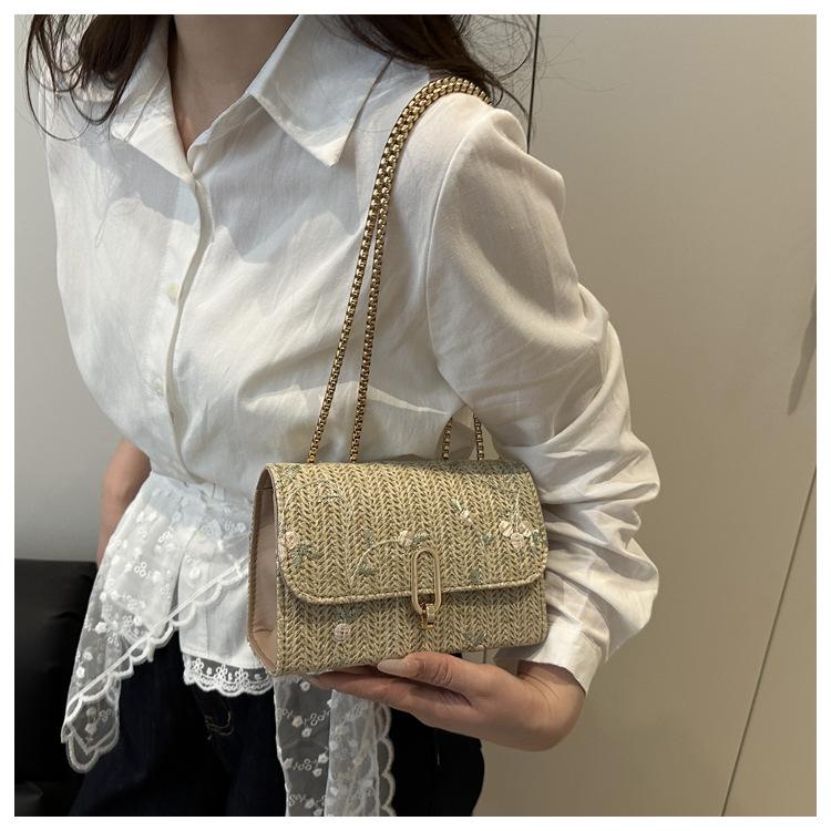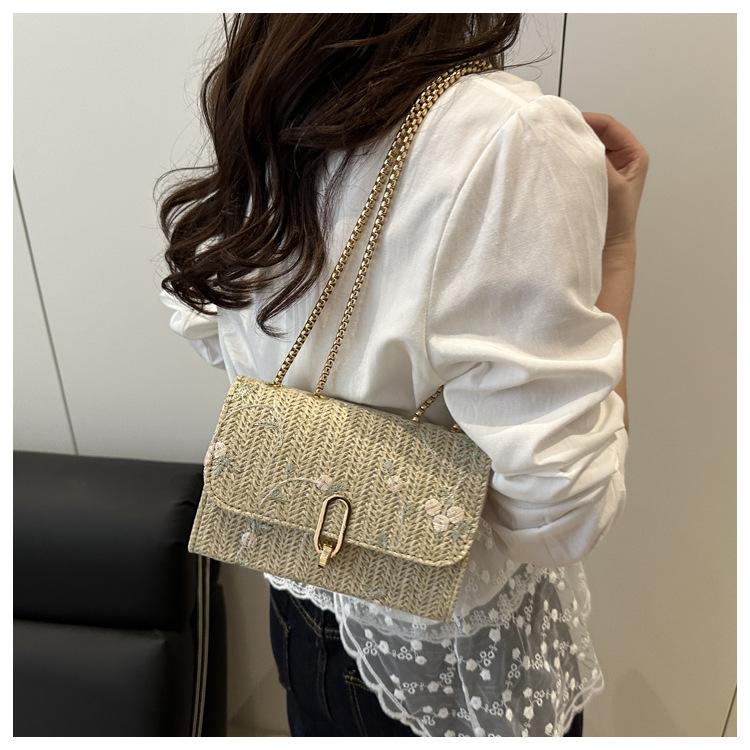 Bolso de Paja Tejido de Verano para Mujer 2025 Nuevo Estilo Pequeño Fresco Flor de Encaje Tejido Bolso de Silla de Montar Versátil Bolso de Hombro Cruzado