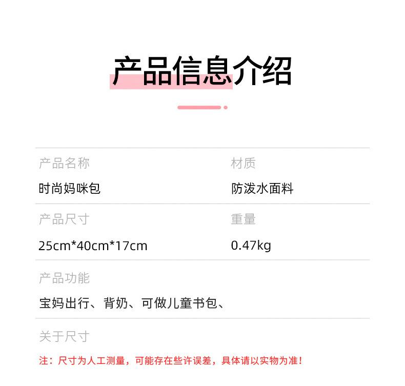 Nueva Bolsa de Mamá de Gran Capacidad, Mochila de Moda, Bolsa Multifuncional Impermeable para Madre y Bebé, Mochila Ligera para Mamá para Salir