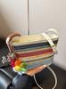 Bolsos Transfronterizos para Mujer 2025 Nuevo Celebridad de Internet Color Contrastante Tejido Rayado Arcoíris Bolso de Paja de un Solo Hombro Bandolera Trendy