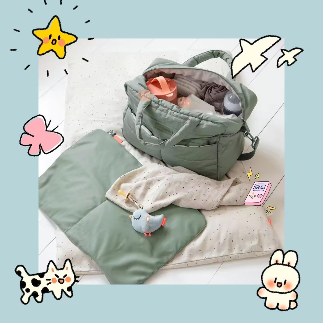 Nuevo Abrigo de Plumas de Moda Material Bolsa de Mamá Bolsa Colgante para Carrito Plegable Gran Capacidad Bolso Tote Ligero Bolsa para Madre y Bebé