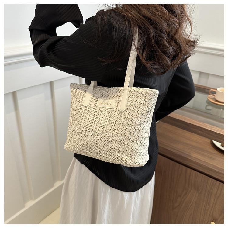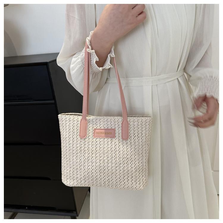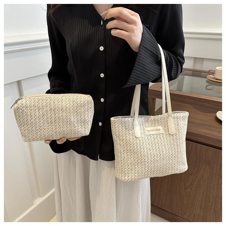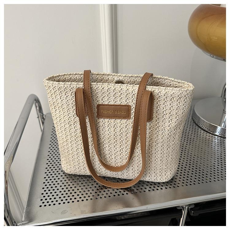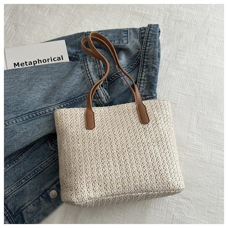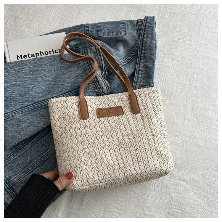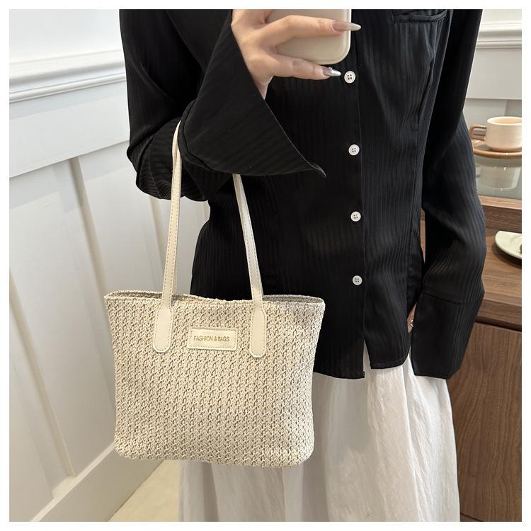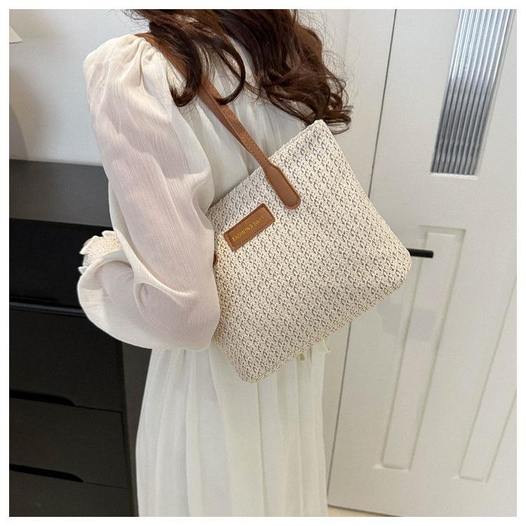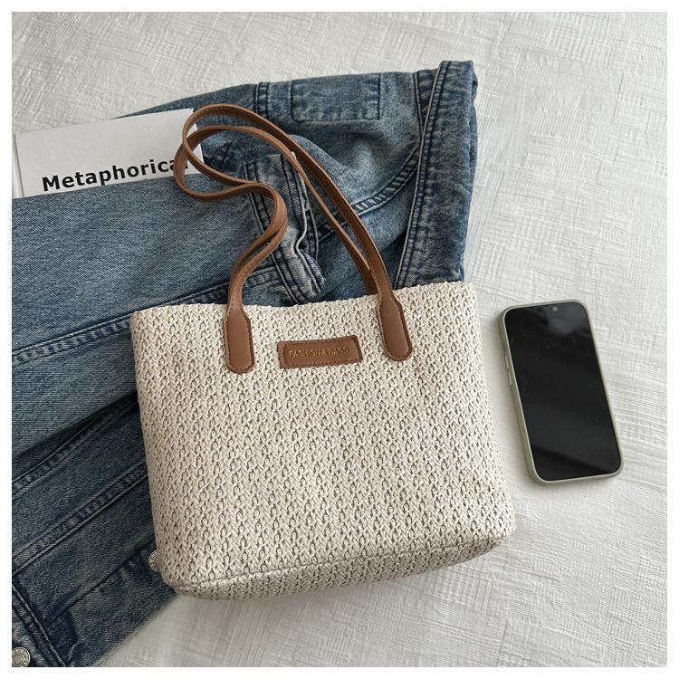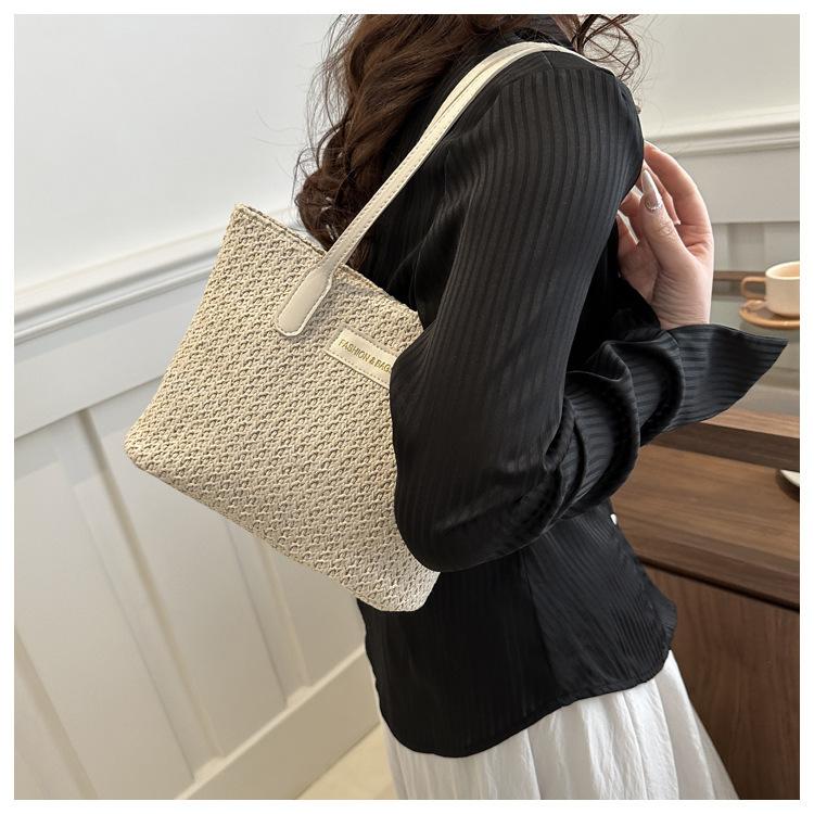 Bolso de Paja Estilo Coreano para Mujer 2025 Nuevo Moda Primavera y Verano Bolso de Hombro Tejido Bolso Tote Sencillo Portátil