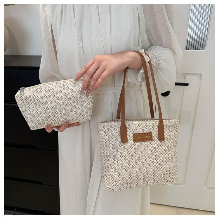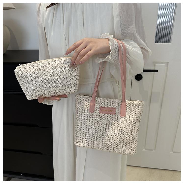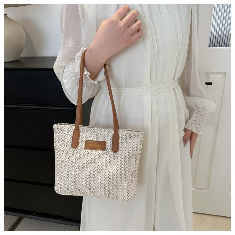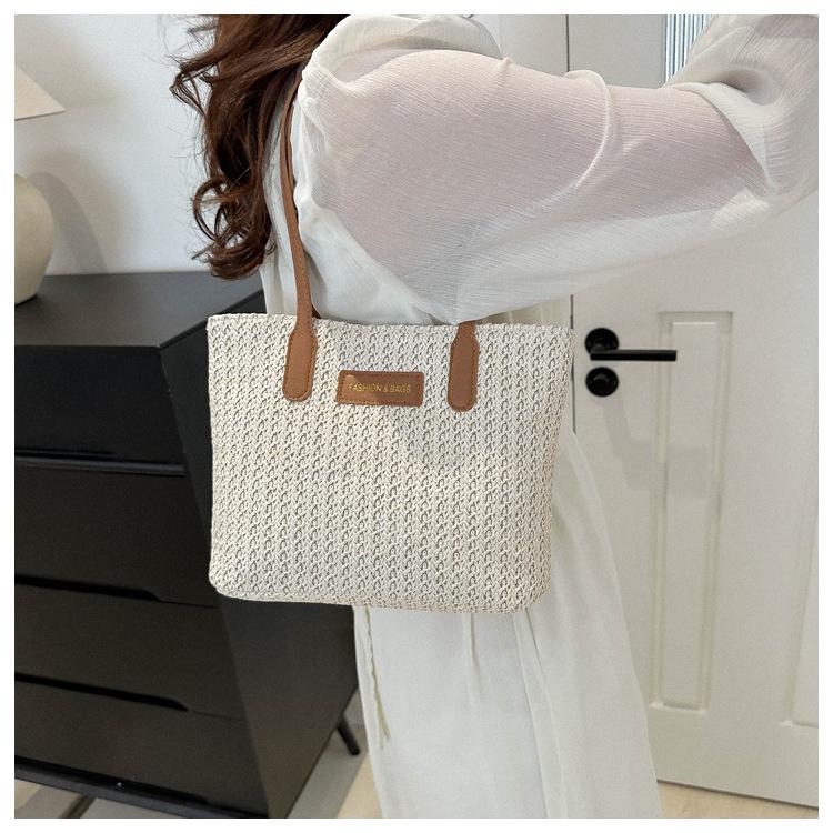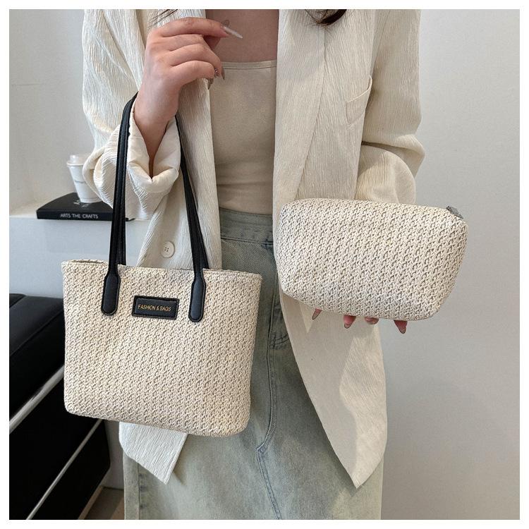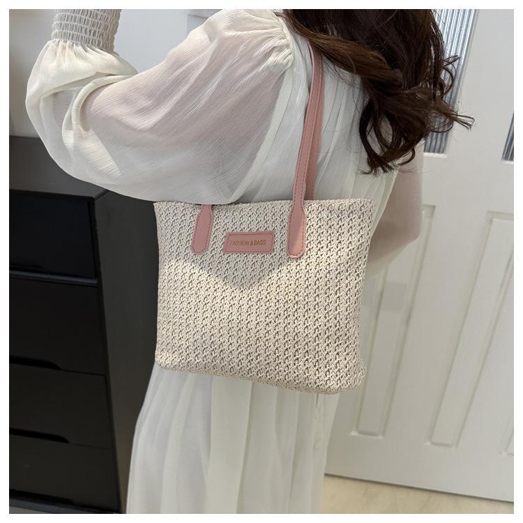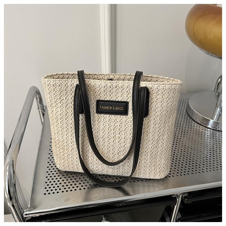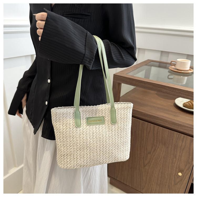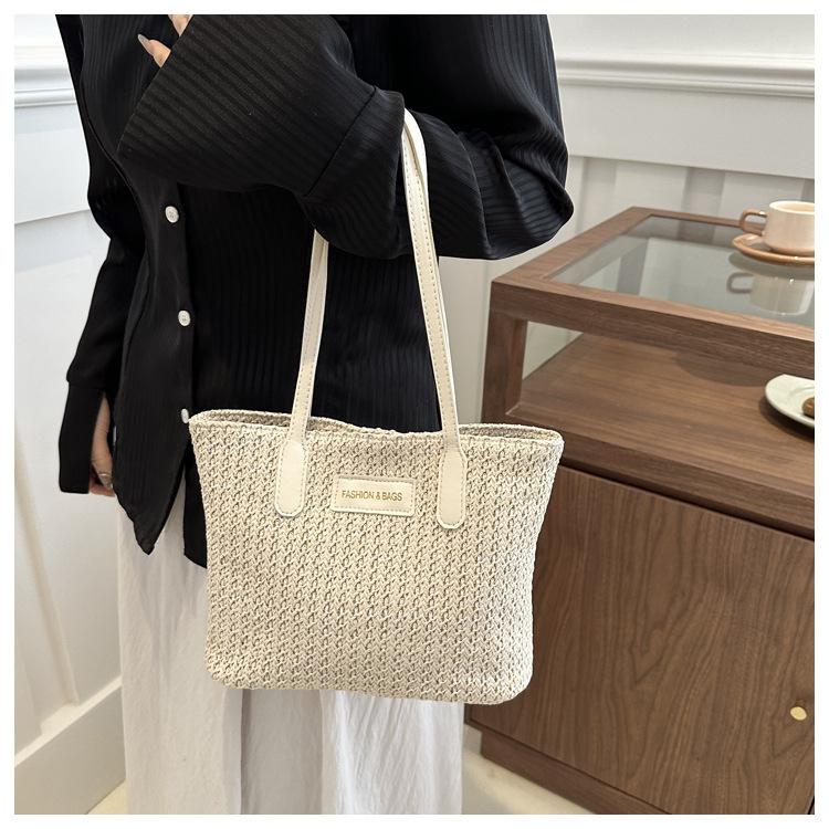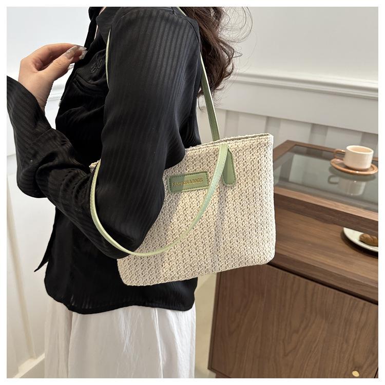 Bolso de Paja Estilo Coreano para Mujer 2025 Nuevo Moda Primavera y Verano Bolso de Hombro Tejido Bolso Tote Sencillo Portátil
