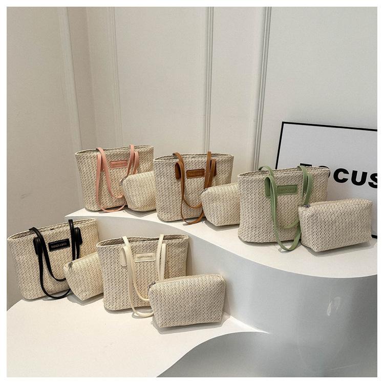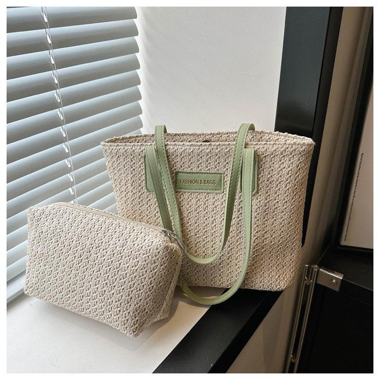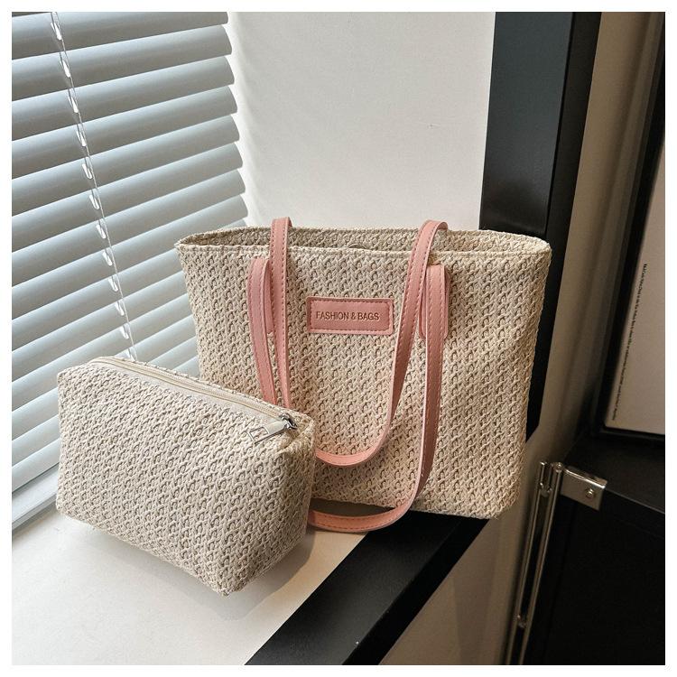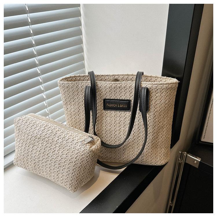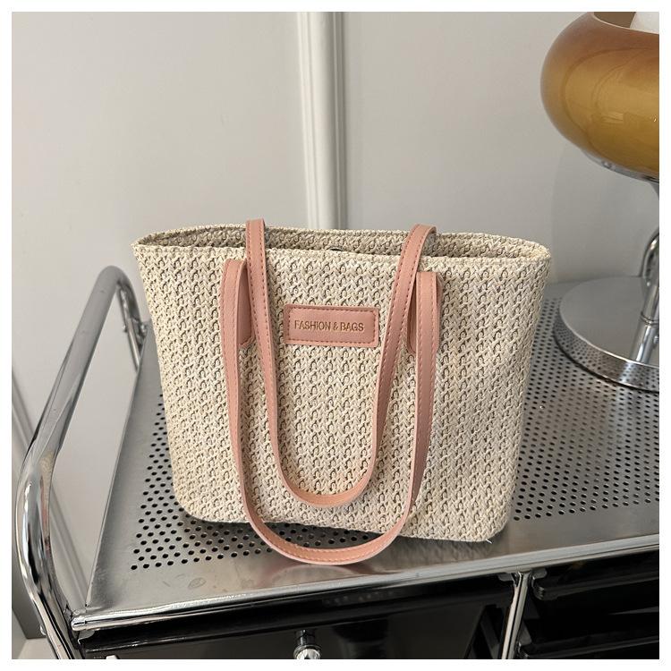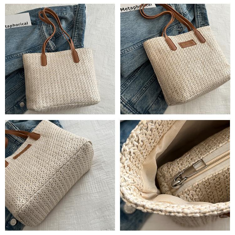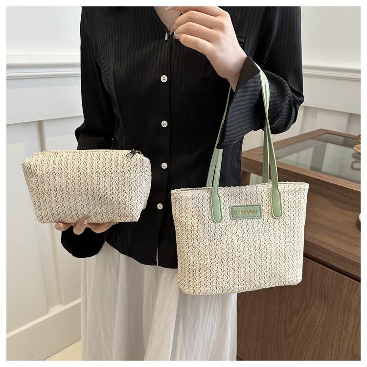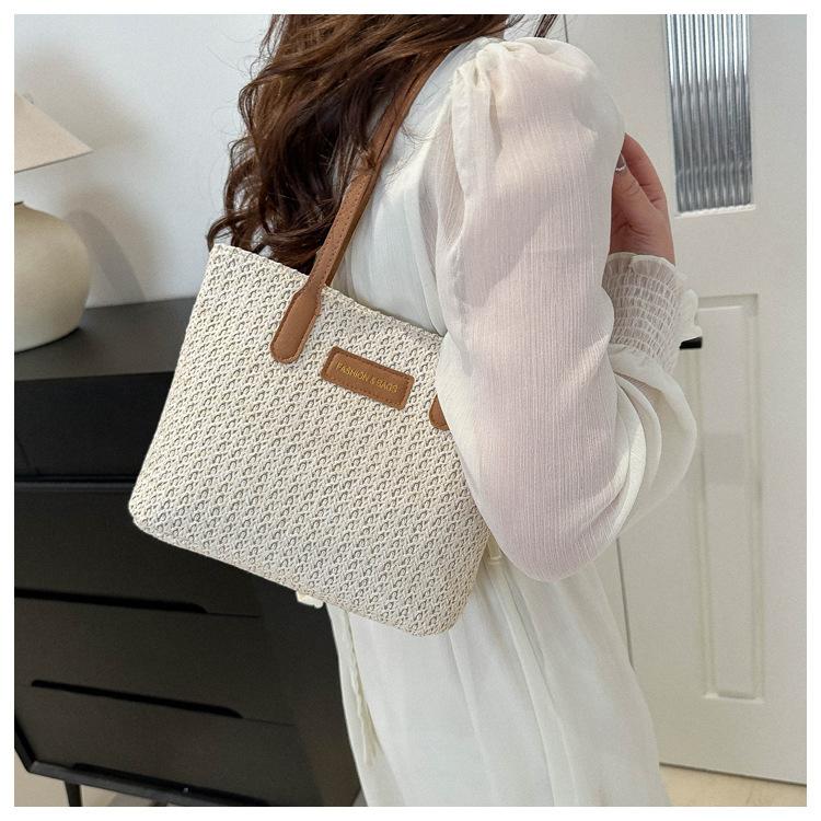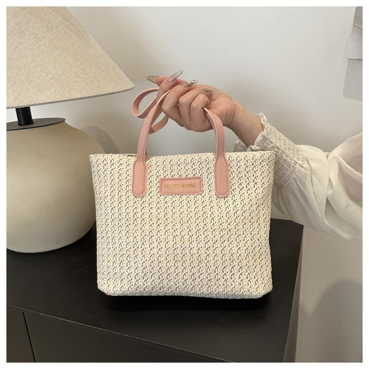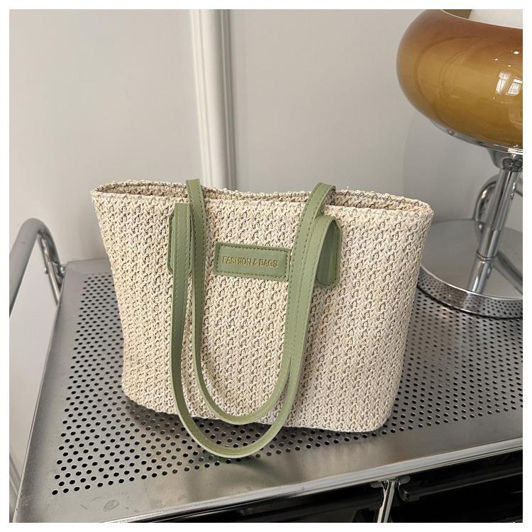 Bolso de Paja Estilo Coreano para Mujer 2025 Nuevo Moda Primavera y Verano Bolso de Hombro Tejido Bolso Tote Sencillo Portátil