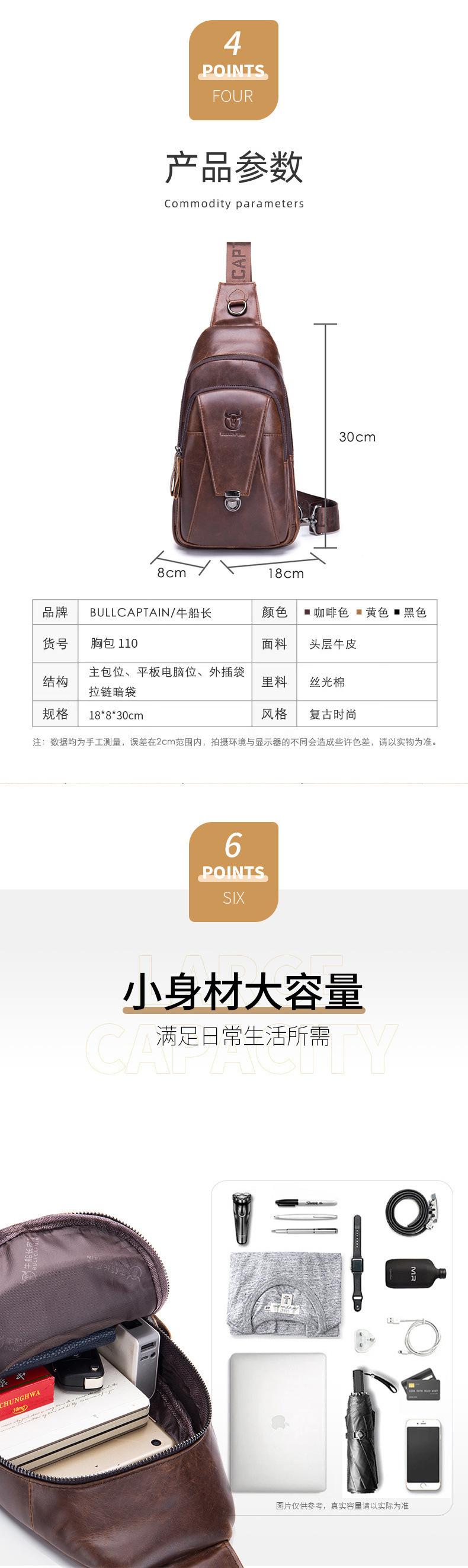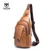 Mochila Tarjetera de Piel Vacuna para Hombre, Bolsa de Pecho de Cuero Genuino, Casual, Deportiva, Moda, Gran Capacidad, Un Solo Hombro, Cruzada, Bolsa Delantera