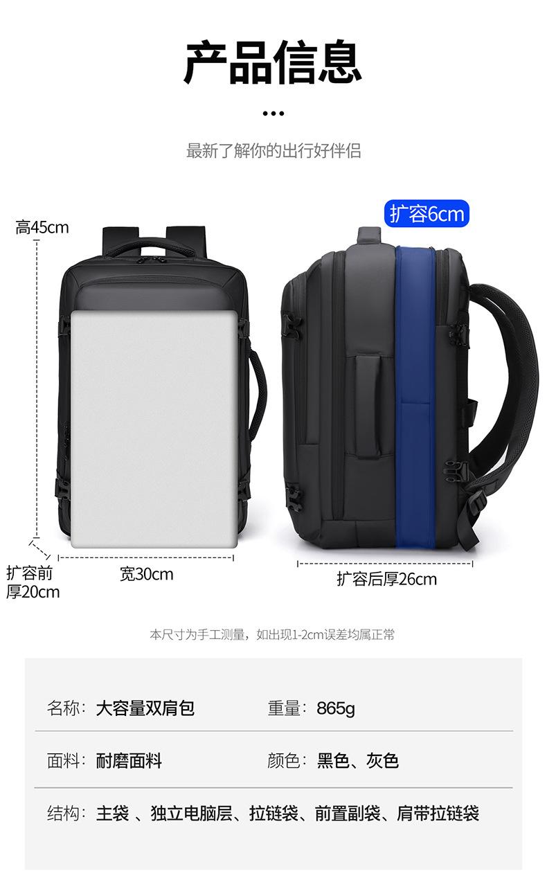 Mochila Nueva de Gama Alta para Hombre Bolsa para Computadora de Gran Capacidad Mochila de Viaje Expandible Mochila Escolar para Estudiante de Secundaria