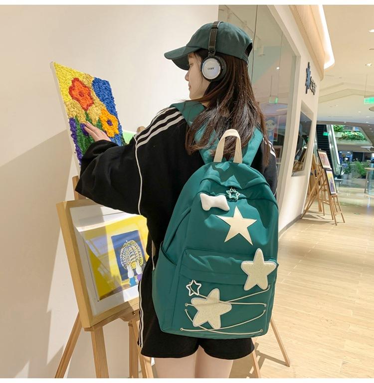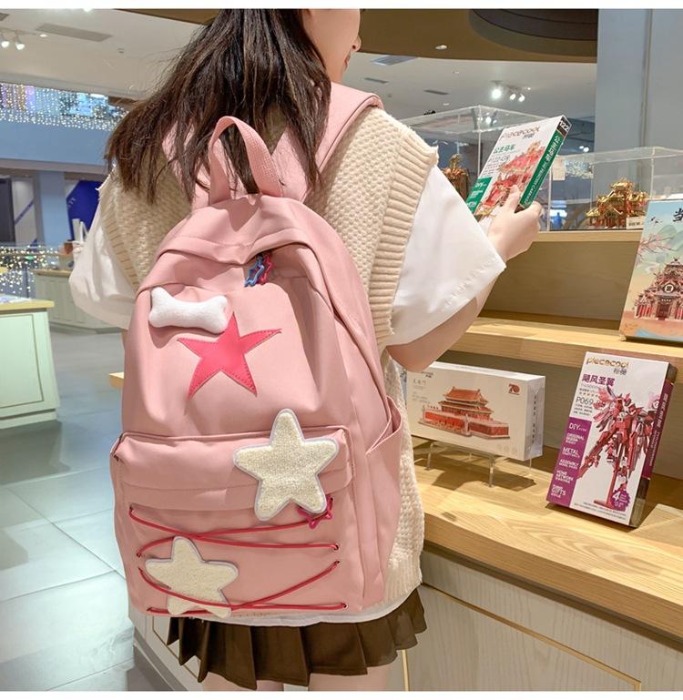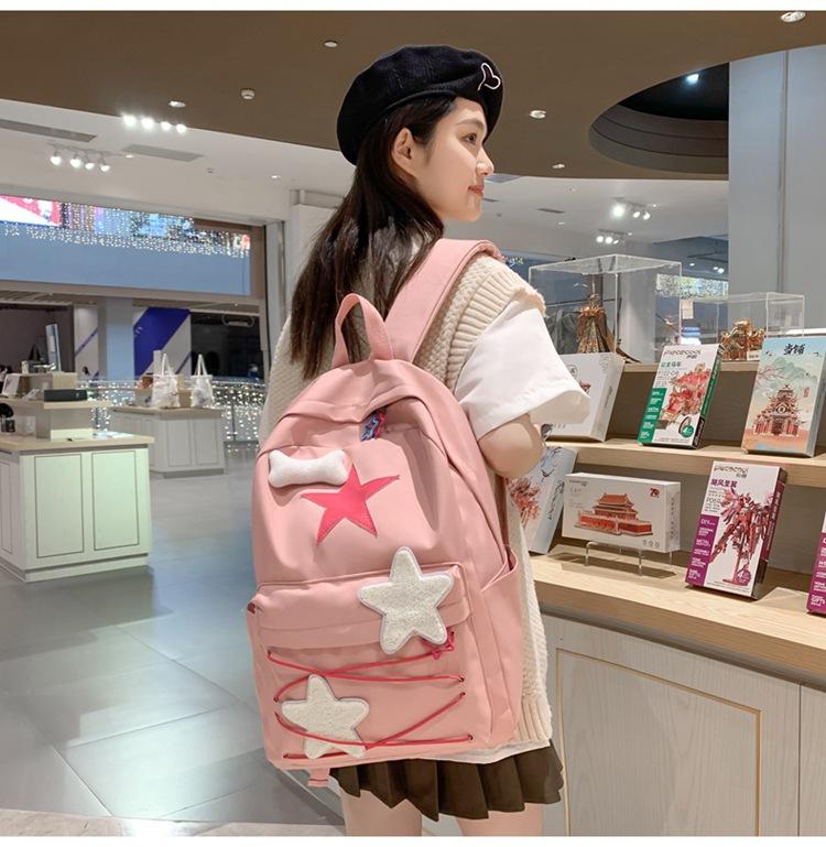 Mochila Escolar para Niña Linda de Estilo Japonés Mochila Estrella de Cinco Puntas Ins Mochila Alta para Chica Universitaria Estudiante de Secundaria