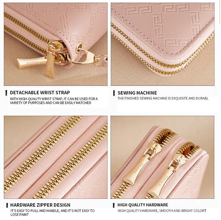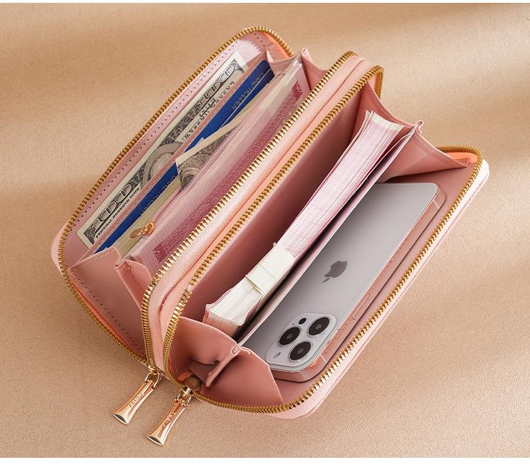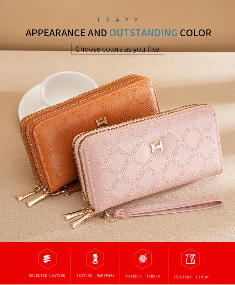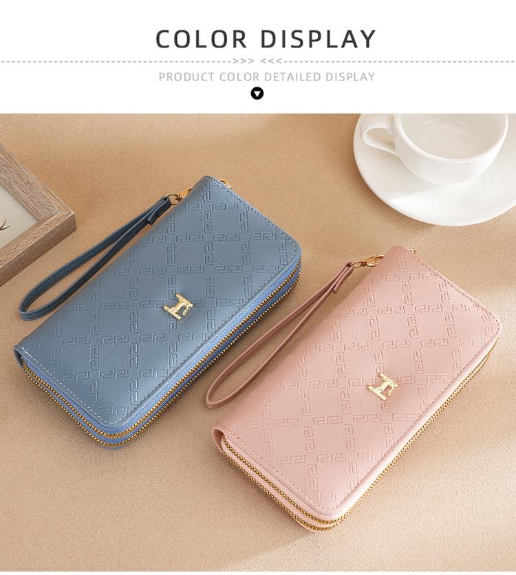 Cartera de mujer Larga Cartera de doble cremallera Bolsa para teléfono Cartera de estudiante Clutch de gran capacidad Monedero suave para monedas Lote