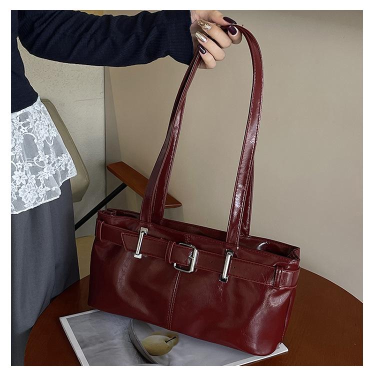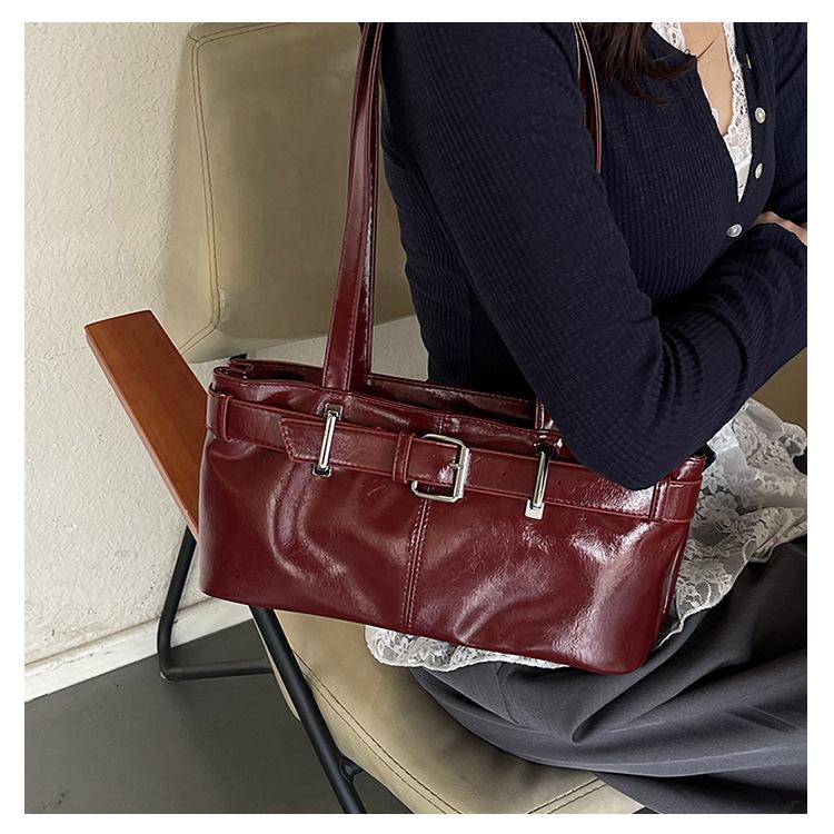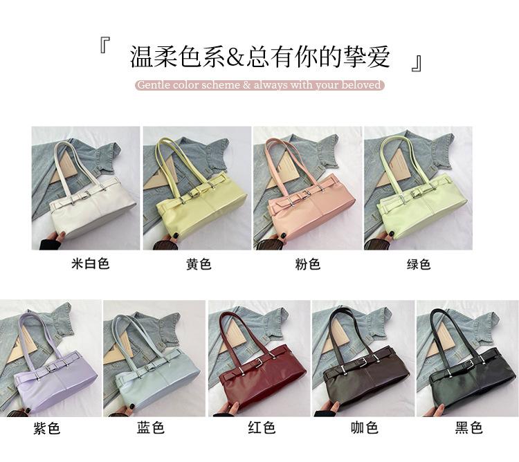 Bolso Baguette de Moda para Mujer, Bolso de Hombro Niche Versátil y Elegante, Simple de Color Sólido