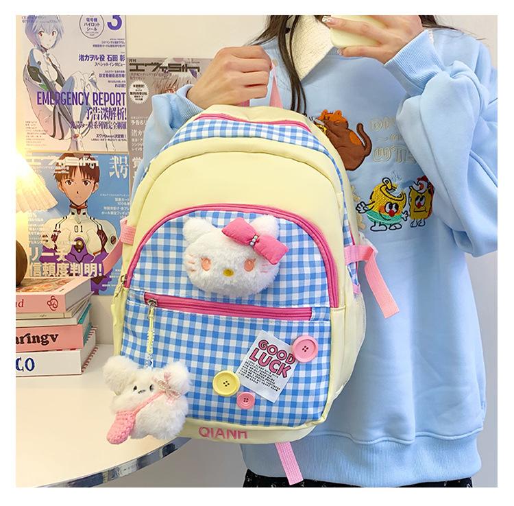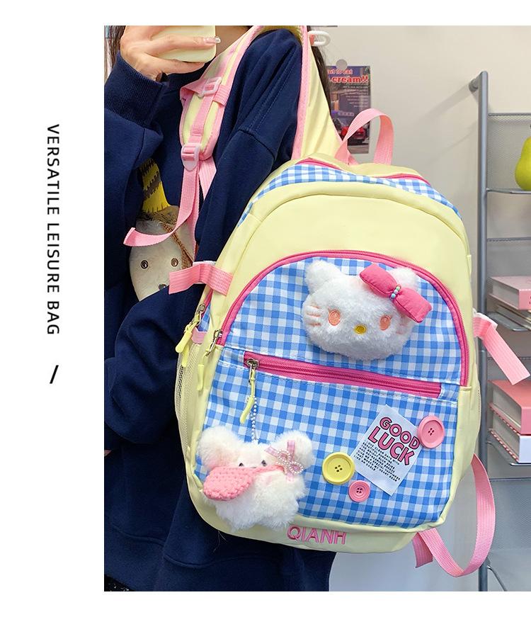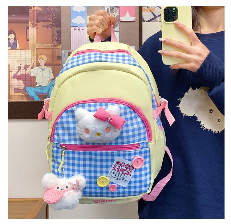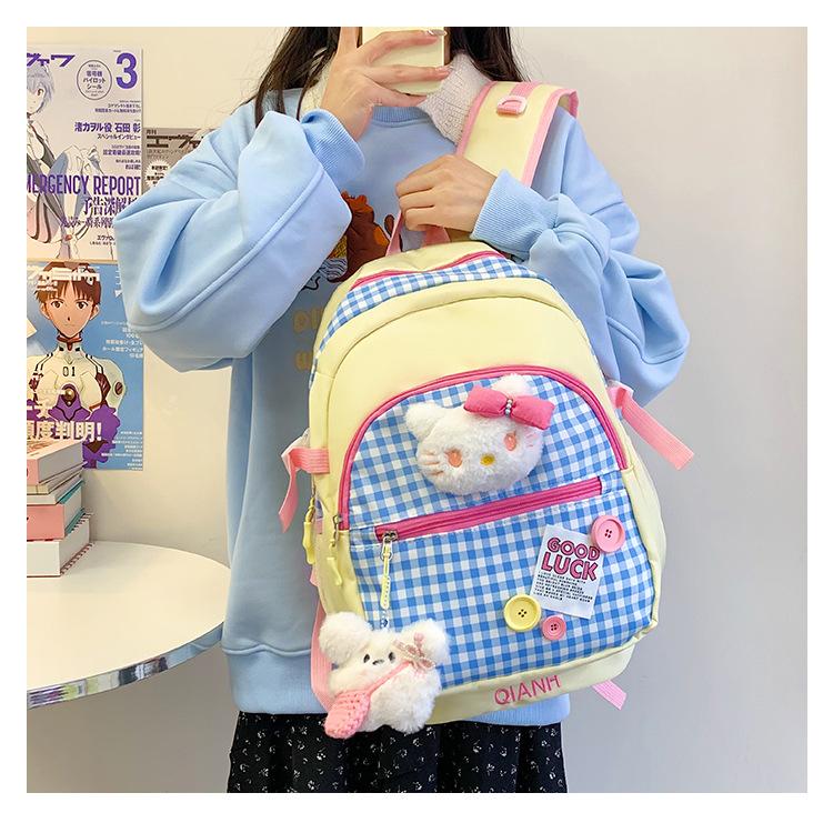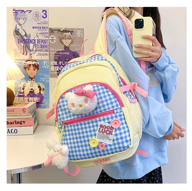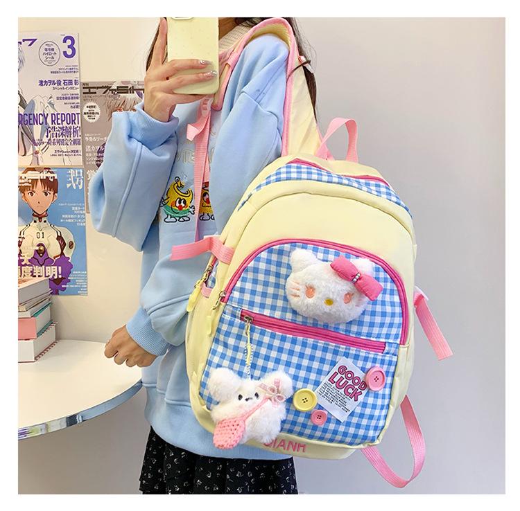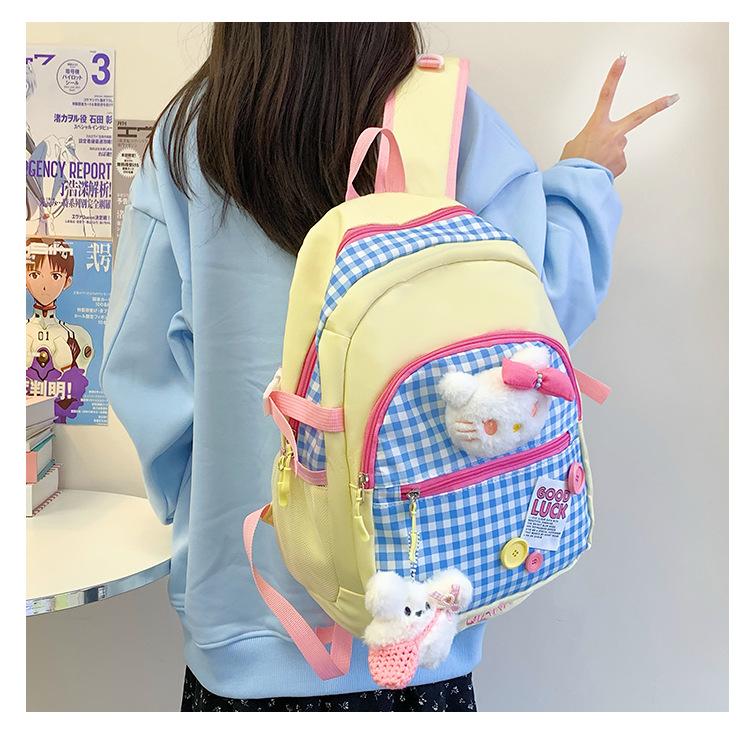 Mochila Escolar Estilo Japonés Ins a Cuadros Mochila Linda Fresca para Viajeros Ligera Mochila de Estudiante Gran Capacidad Mochila Versátil