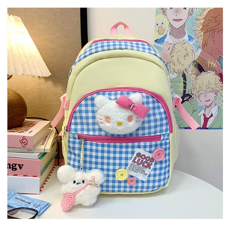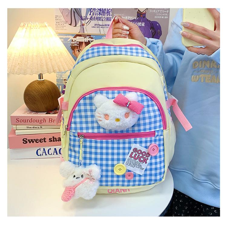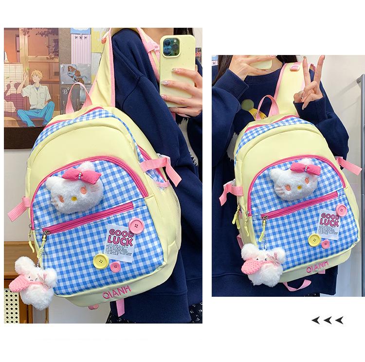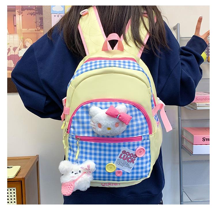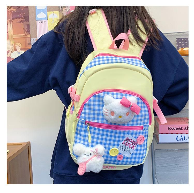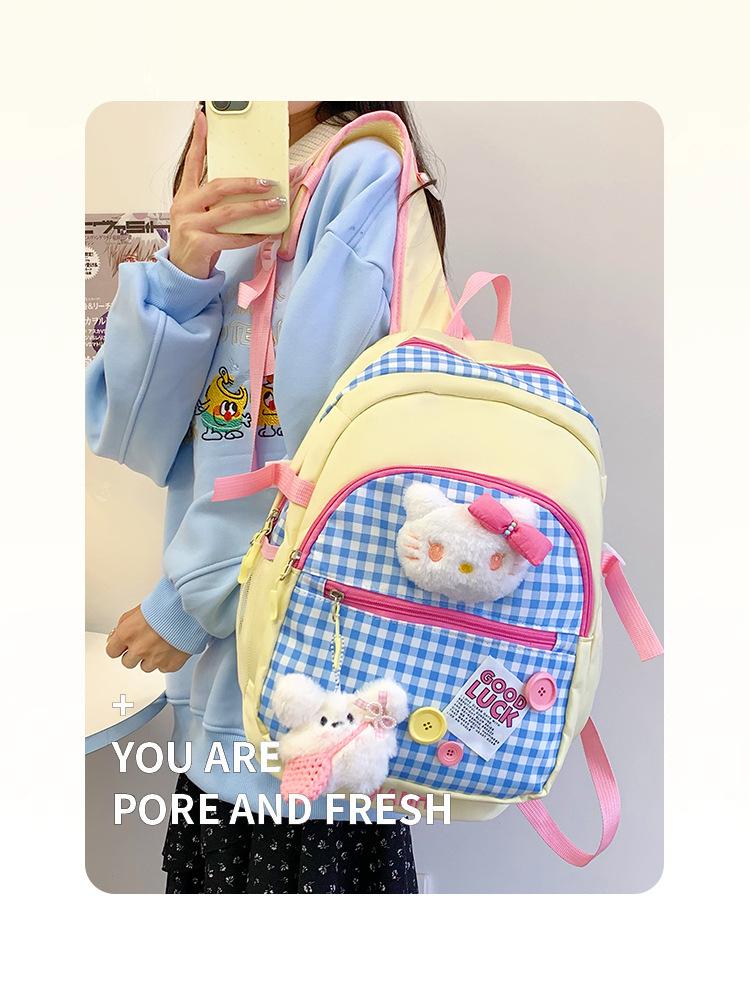 Mochila Escolar Estilo Japonés Ins a Cuadros Mochila Linda Fresca para Viajeros Ligera Mochila de Estudiante Gran Capacidad Mochila Versátil