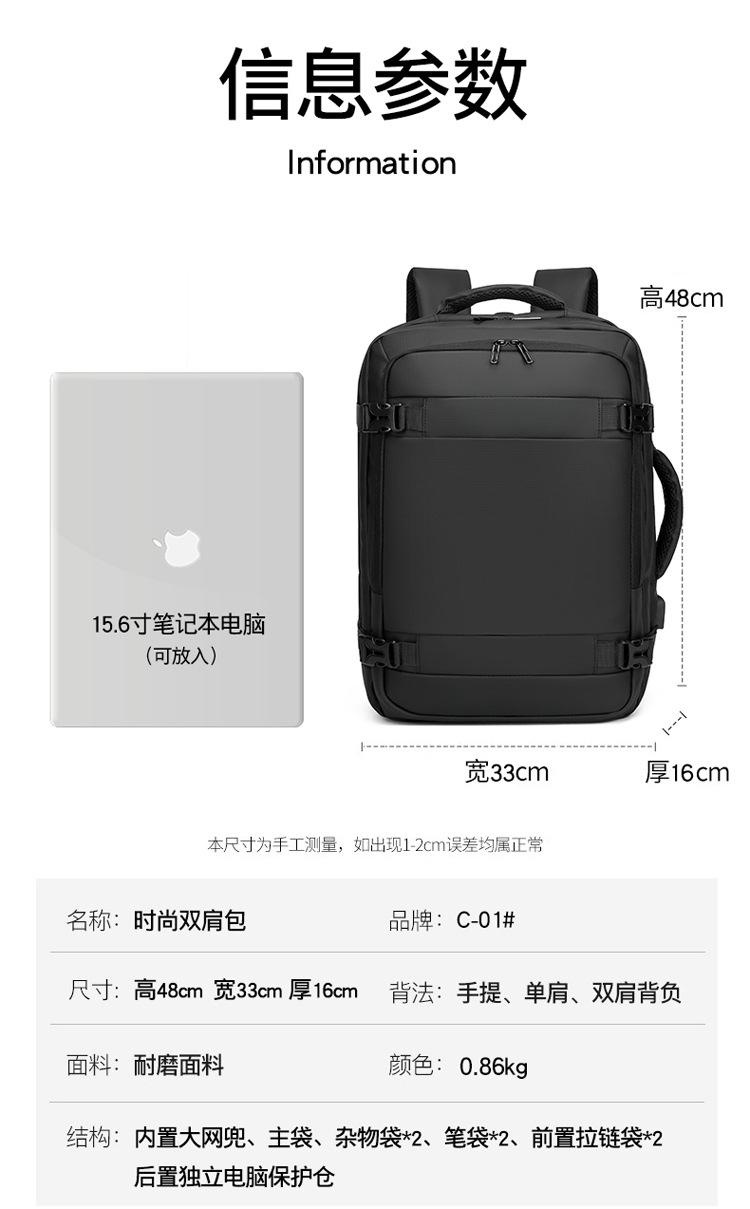 Mochila de viaje de gran capacidad para hombre, moderna mochila de negocios, bolso multifuncional expandible para computadora.