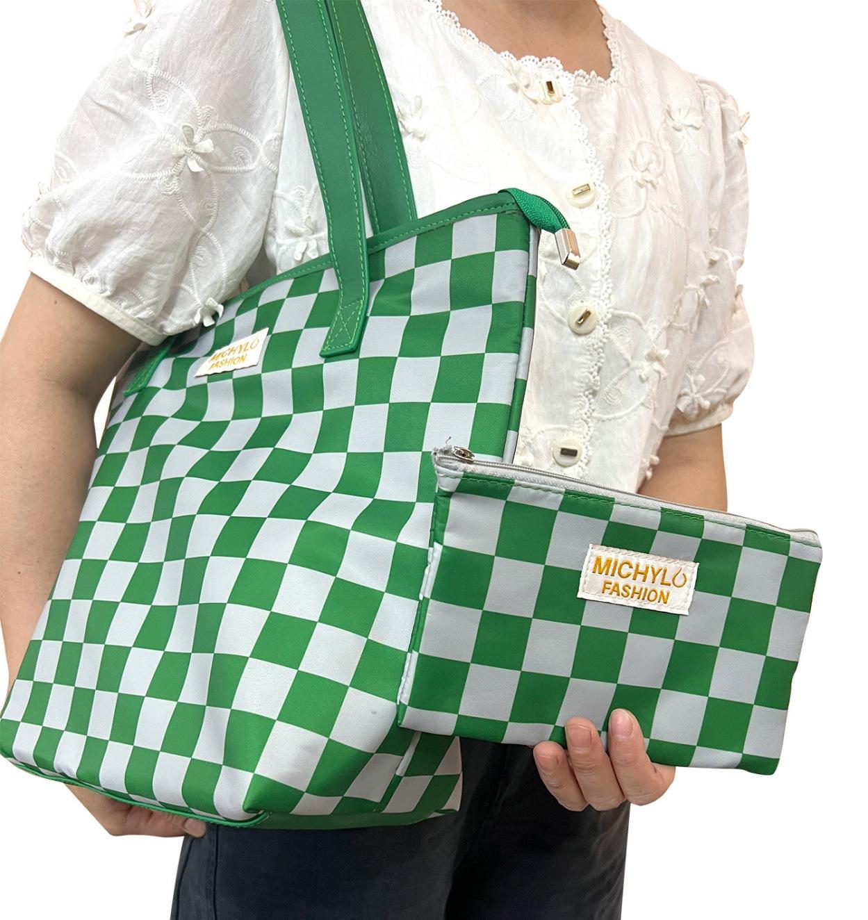 Estilo Ins Estilo Coreano Simple a Cuadros Bolsa de Cosméticos a Prueba de Polvo Gran Capacidad Bolsa de Viaje para Equipaje Sachel de Picnic Bolso de Moda