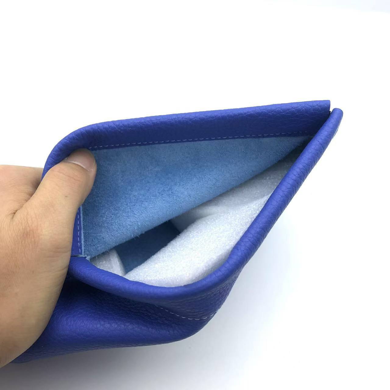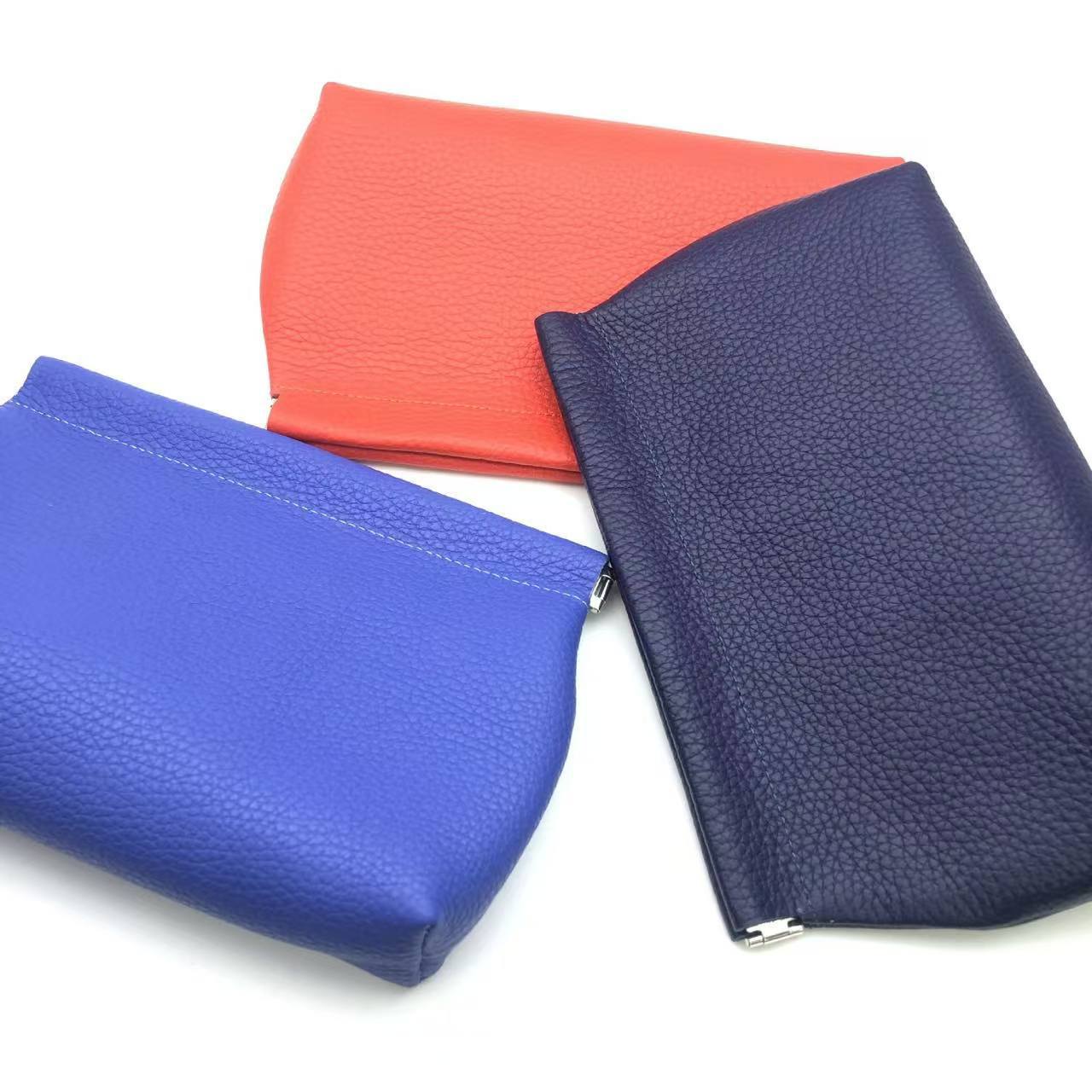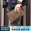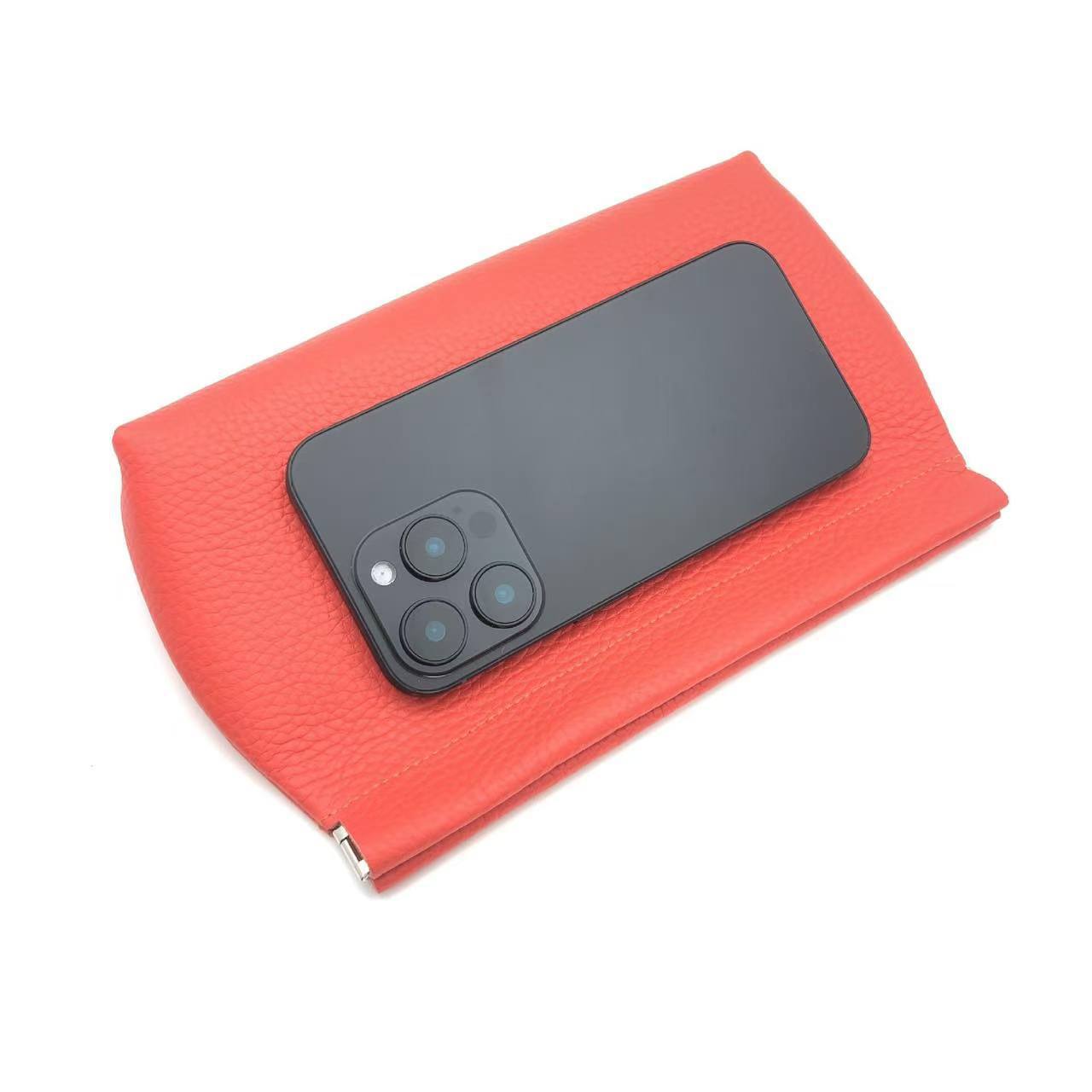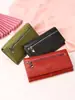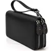 Clutch Autocerrable de Cuero Suave con Fragmentos Bolsa Grande Larga de Cuero Vacuno de Primera Capa para Cosméticos Bolsa para Guardar Efectivo de Billetes de Diez Mil Yuanes