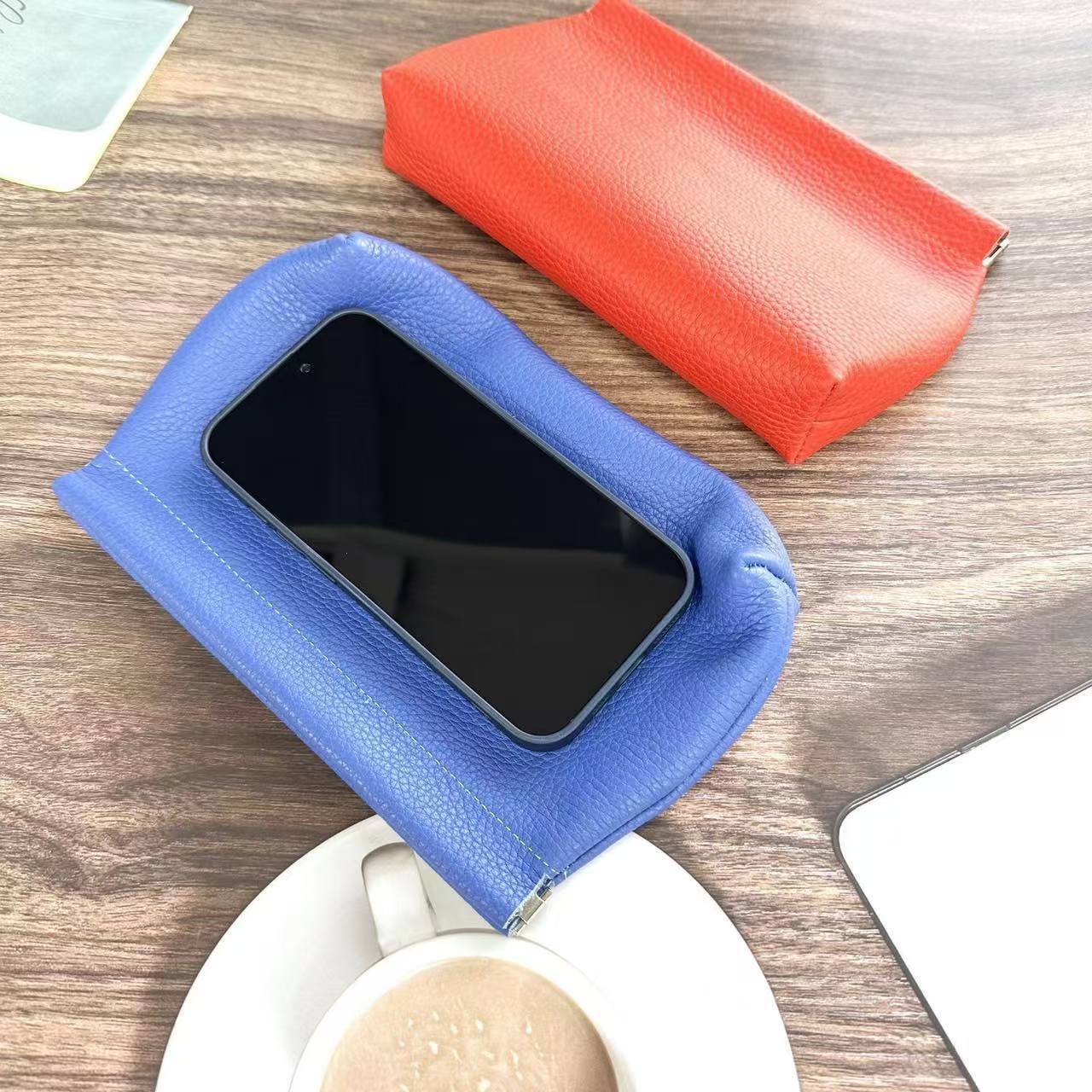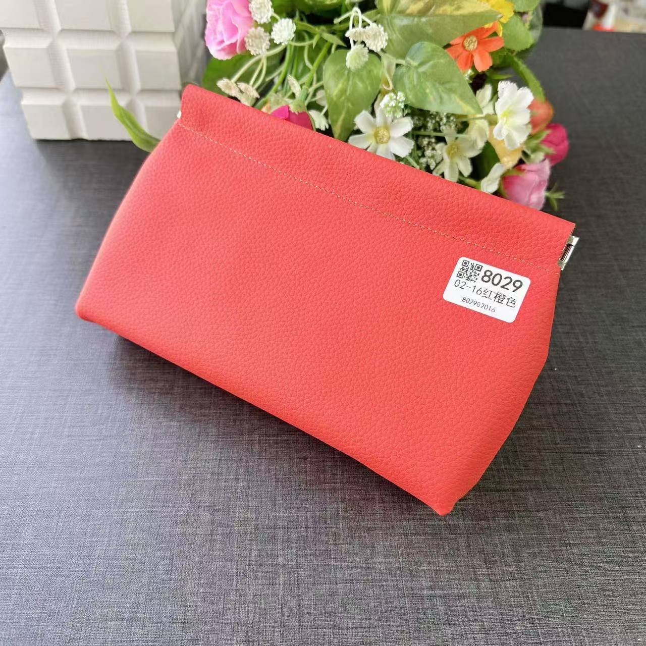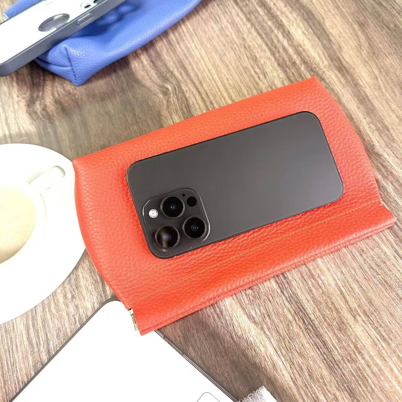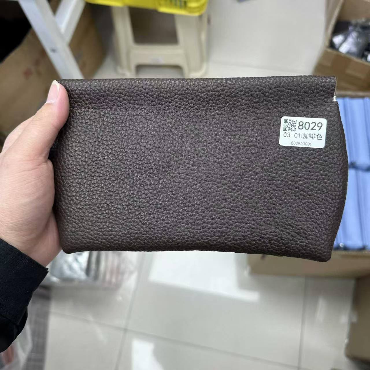 Clutch Autocerrable de Cuero Suave con Fragmentos Bolsa Grande Larga de Cuero Vacuno de Primera Capa para Cosméticos Bolsa para Guardar Efectivo de Billetes de Diez Mil Yuanes