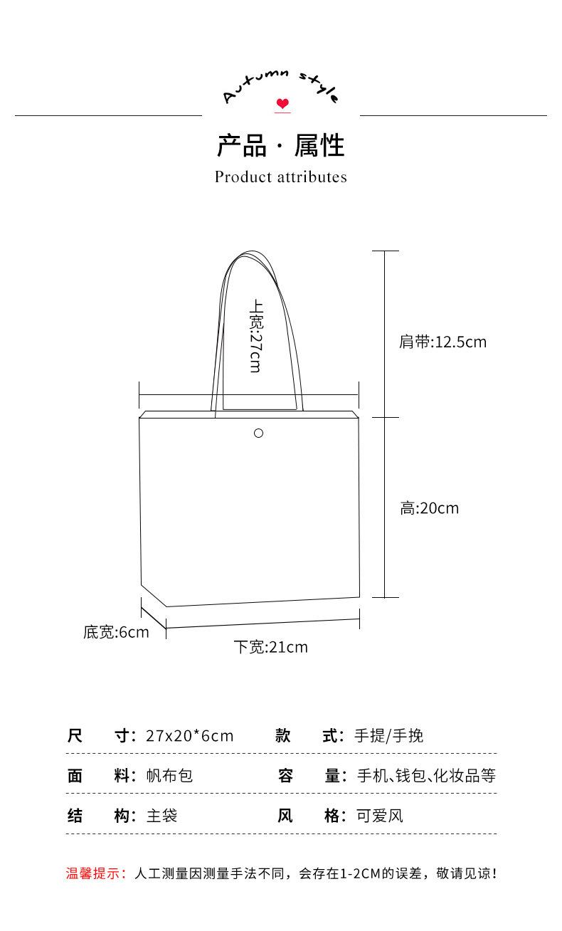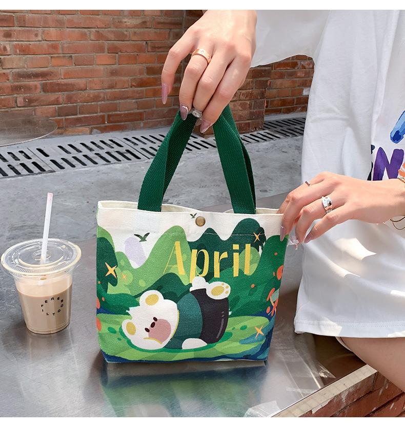 Bolsa de lona para mujer, bolso pequeño lindo, bolsa para lonchera, bolsa portátil de almacenamiento para oficinista, bolsa de viaje, una generación de cabello