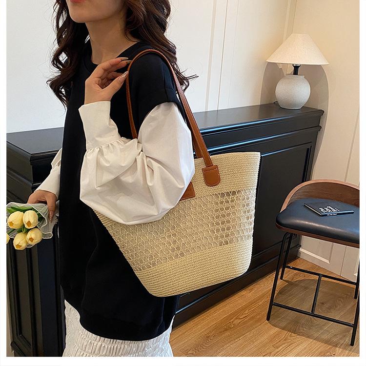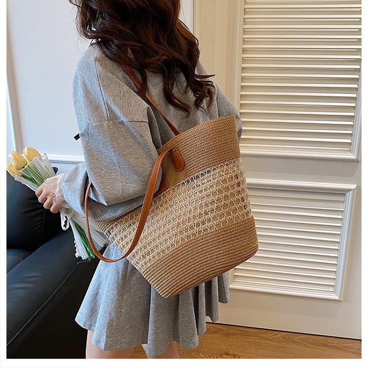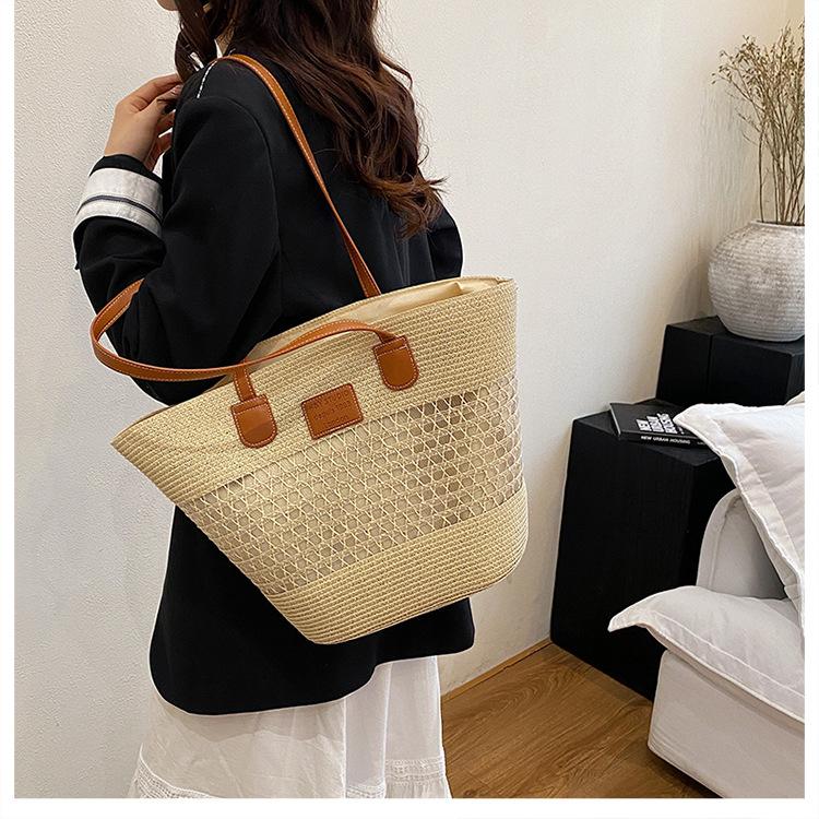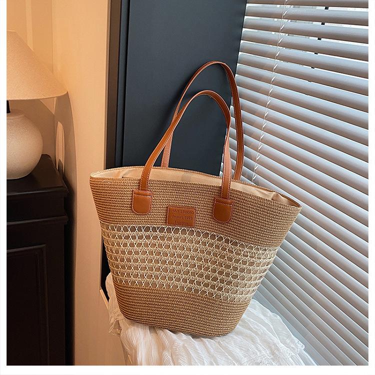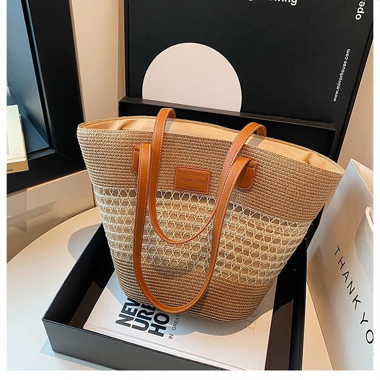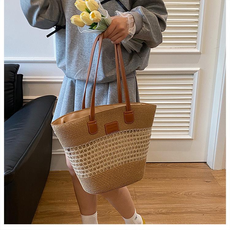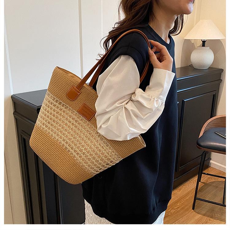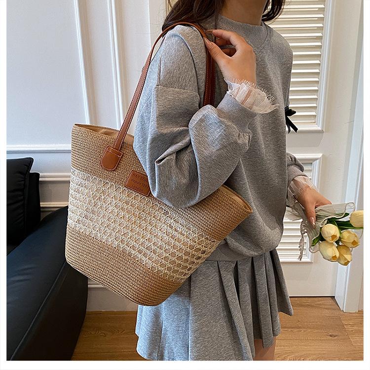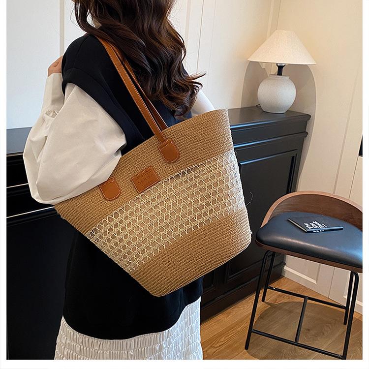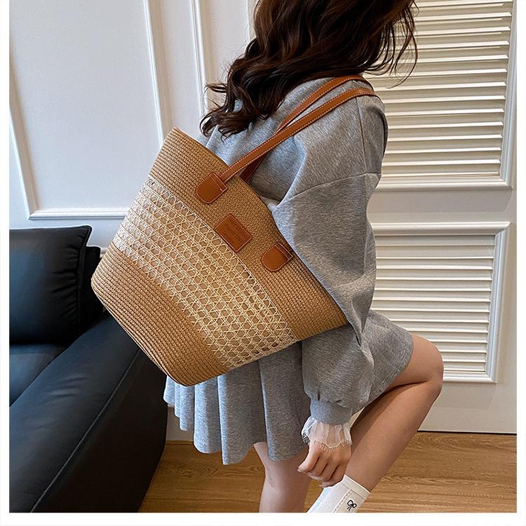 Vacaciones Costeras Transfronterizas Nicho Bolsa de Paja 2025 Nueva Bolsa de Hombro Tejida de Gran Capacidad Bolso Tote Versátil de Moda