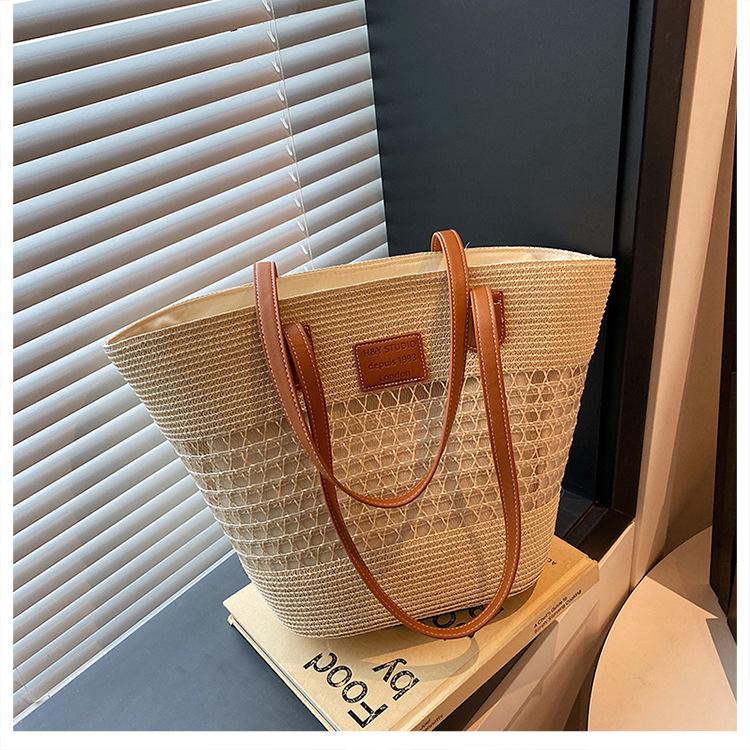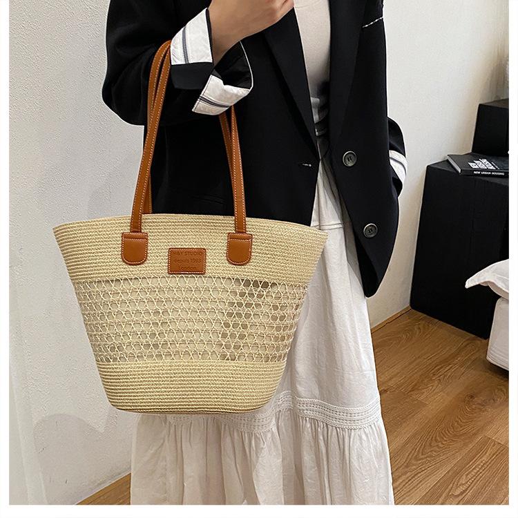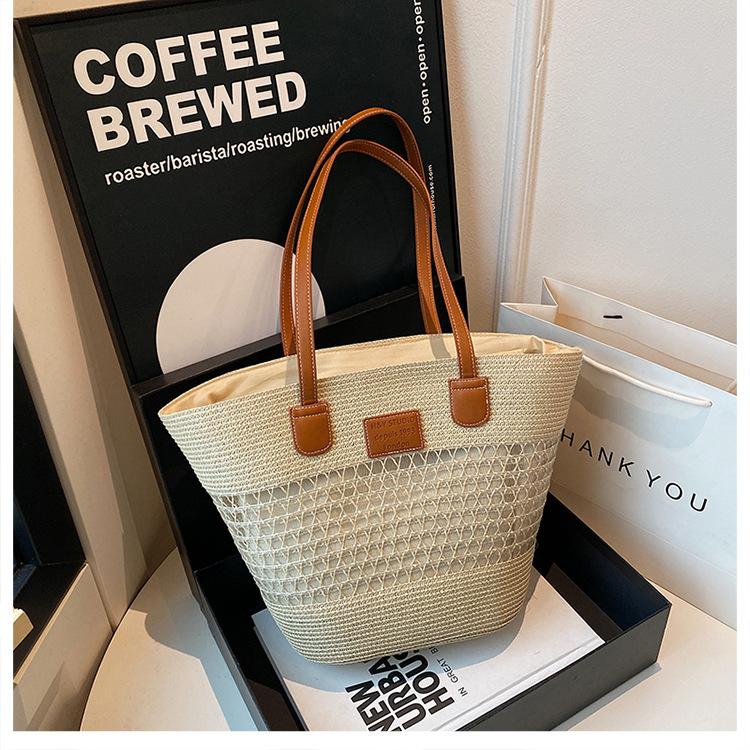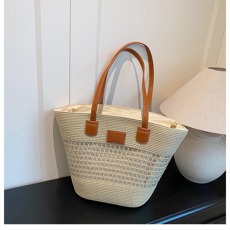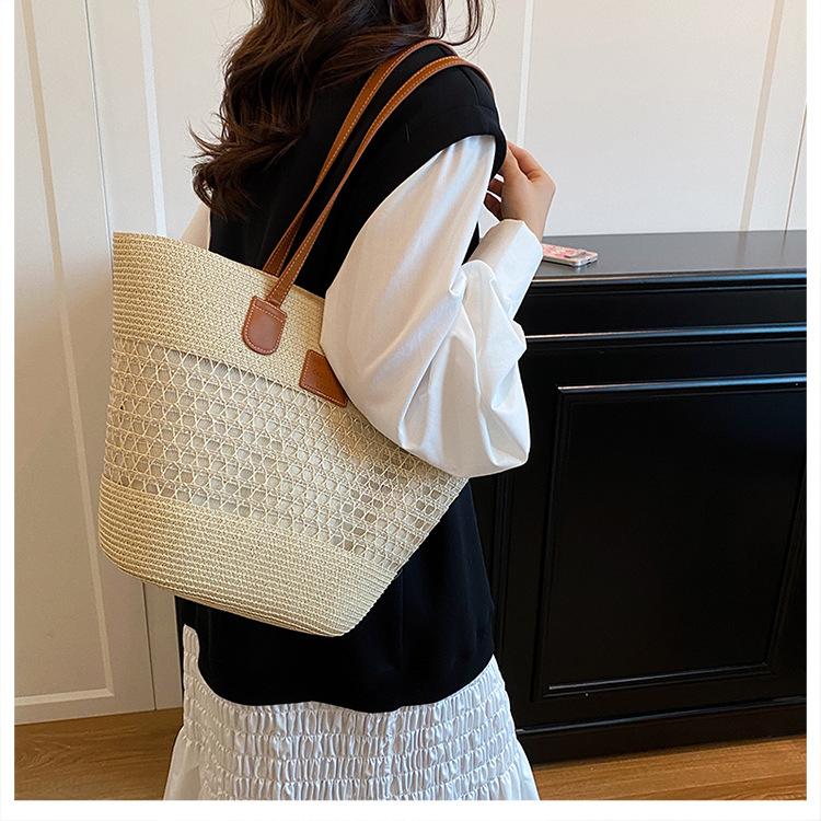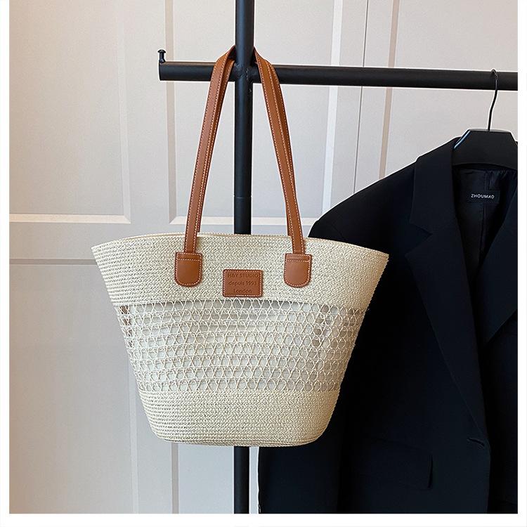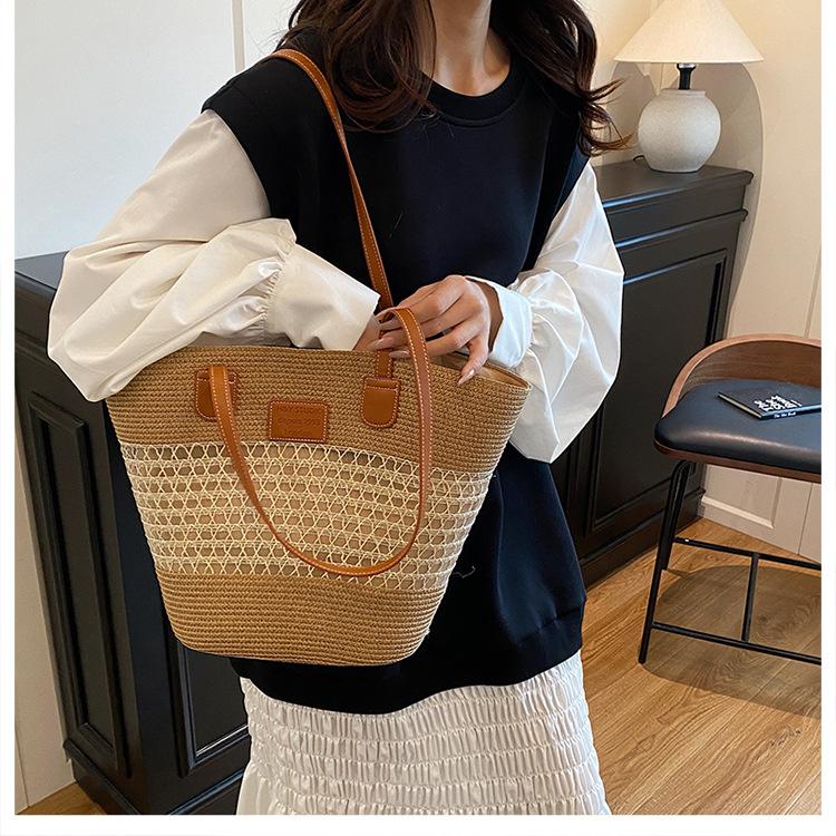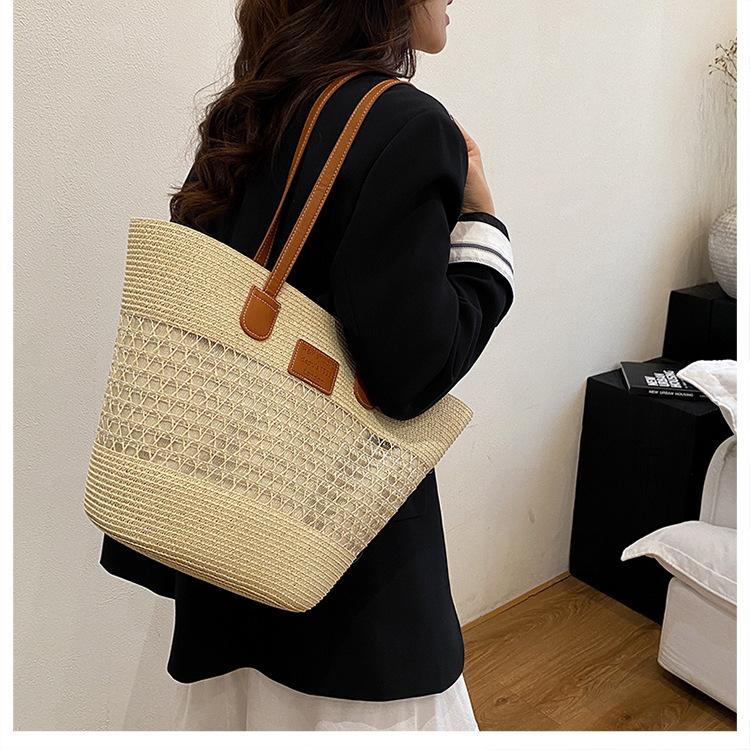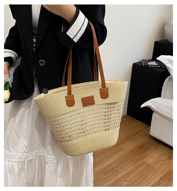 Vacaciones Costeras Transfronterizas Nicho Bolsa de Paja 2025 Nueva Bolsa de Hombro Tejida de Gran Capacidad Bolso Tote Versátil de Moda