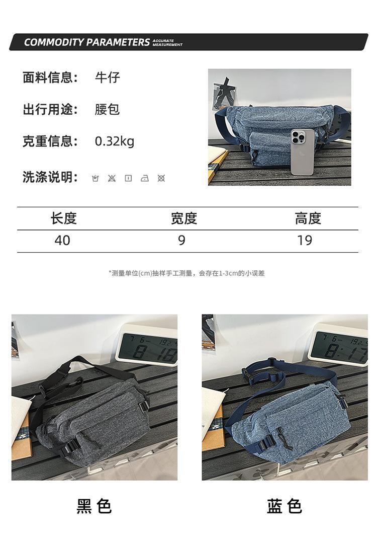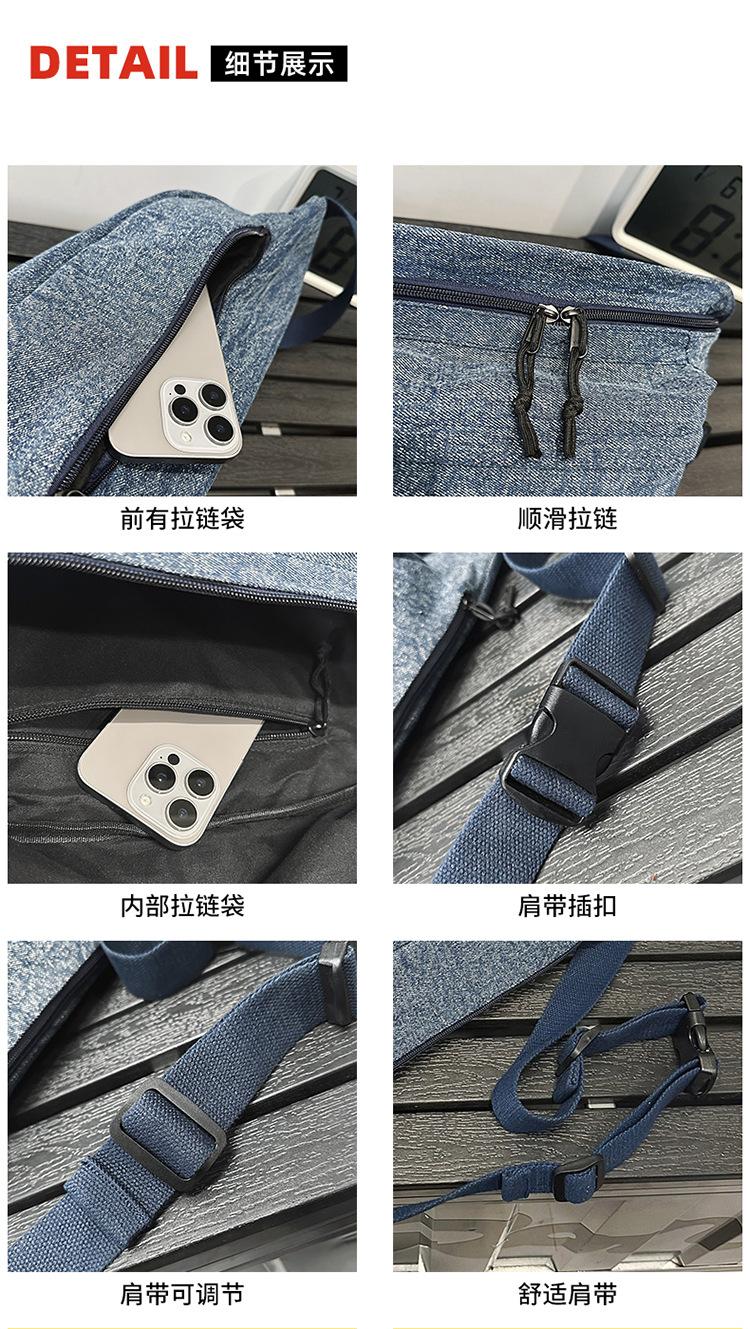 Bolso de mezclilla lavada transfronterizo, Bolso casual ligero para hombre, Bolso bandolera deportivo, Bolso de ciclismo deportivo de moda, Riñonera de moda