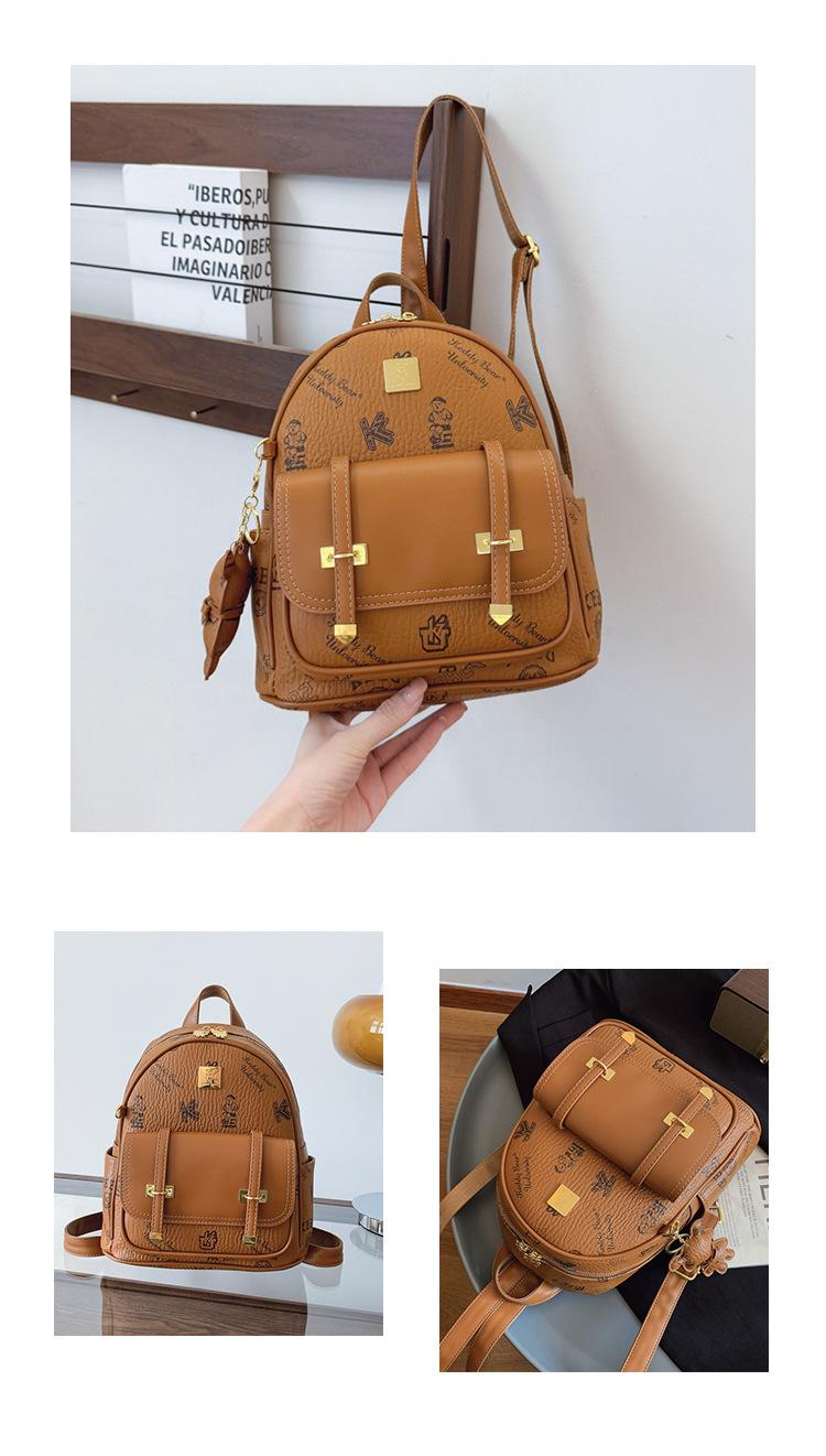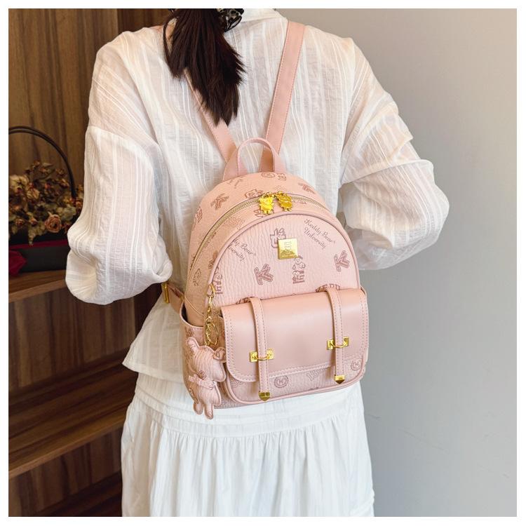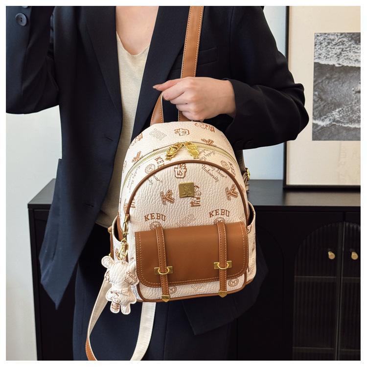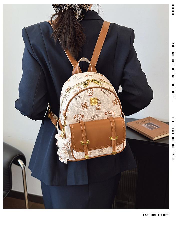 Mochila con costuras de letras de Osito Bolso de mujer Nuevo 2025 Mochila pequeña casual para mujer Más fácil de combinar para ir al trabajo Bolso bandolera para mujer