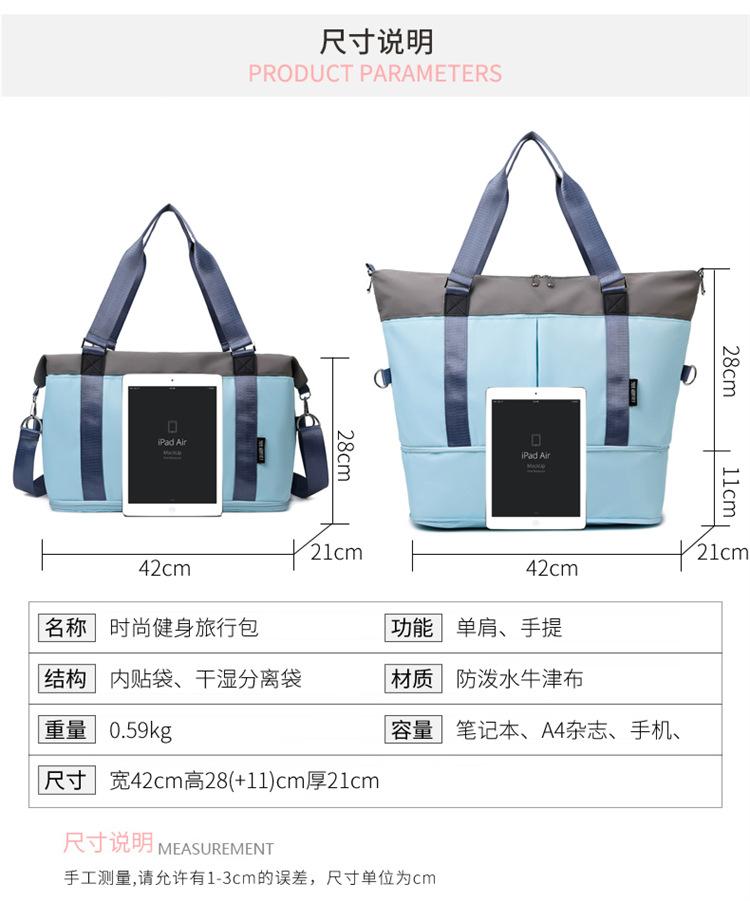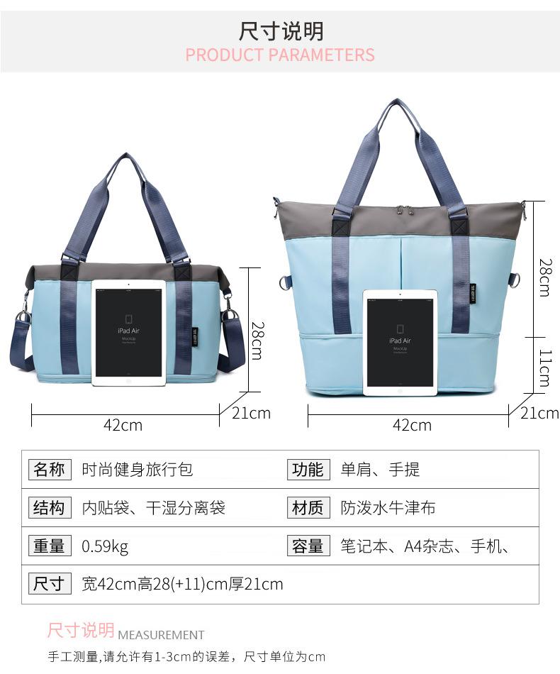 Bolsa de Viaje Corta Distancia Gran Capacidad Portátil Bolsa de Yoga Fitness Abordaje Viaje Almacenamiento Equipaje Alojamiento para Estudiantes Bolsa para Ropa