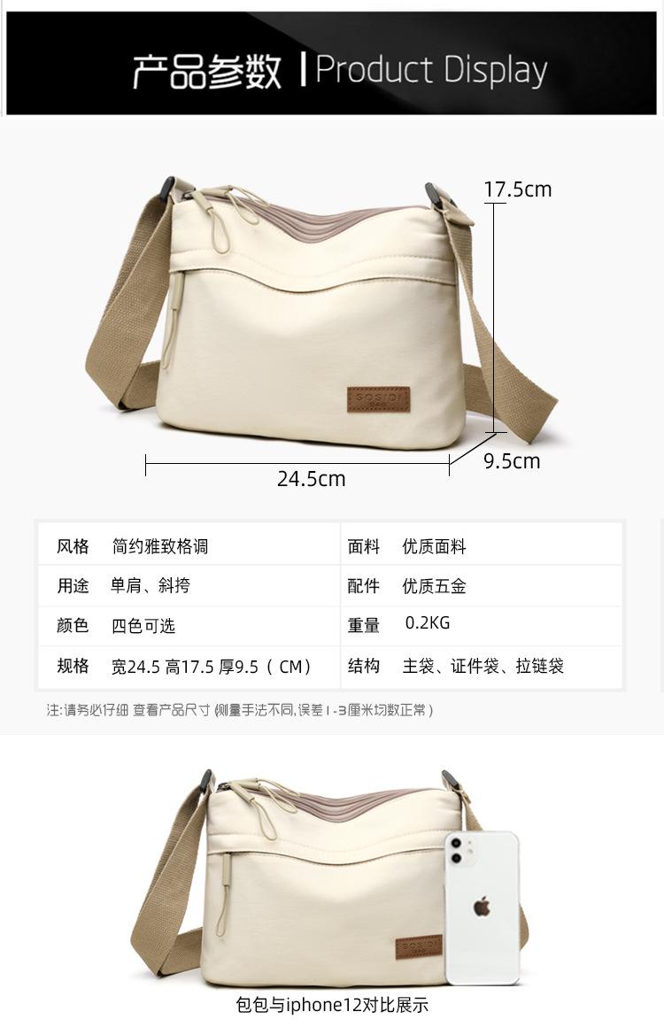 Bolso de Nailon Simple Ligero Multicapa de Gran Capacidad para Mujer Nuevo Casual Impermeable Portátil Moderno de Hombro Cruzado Bolso Cuadrado Pequeño