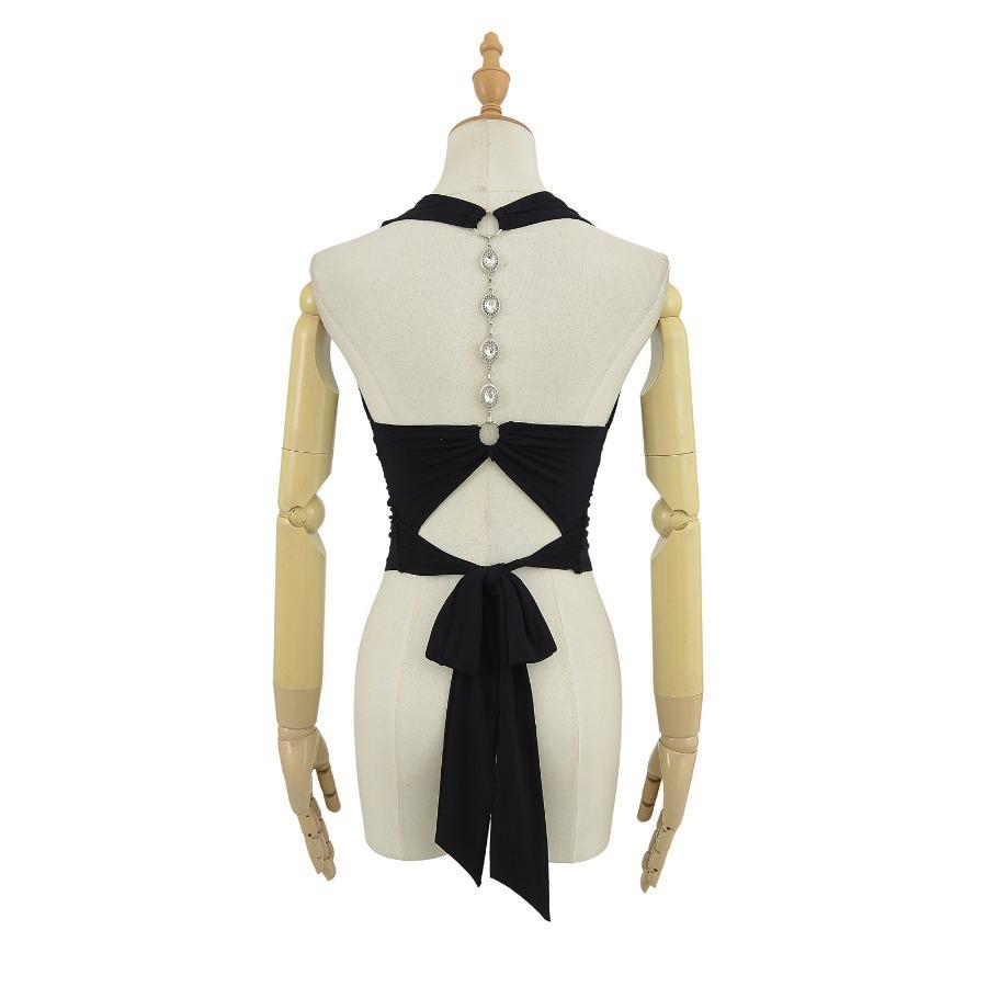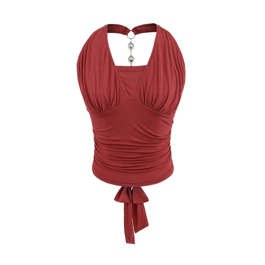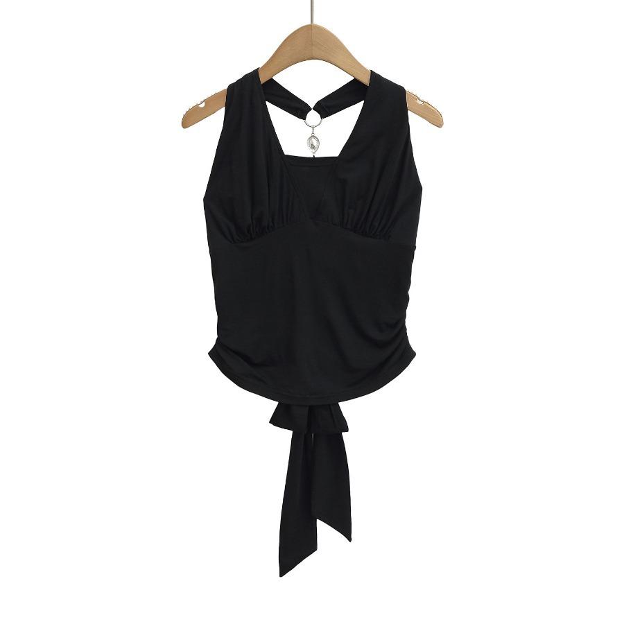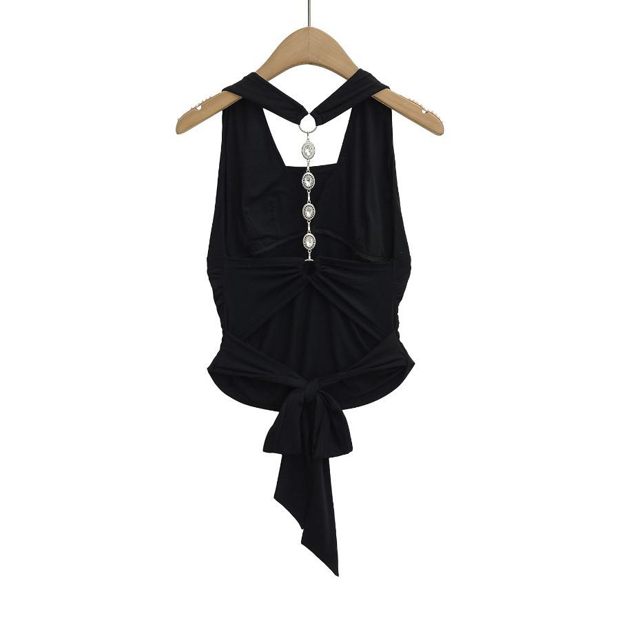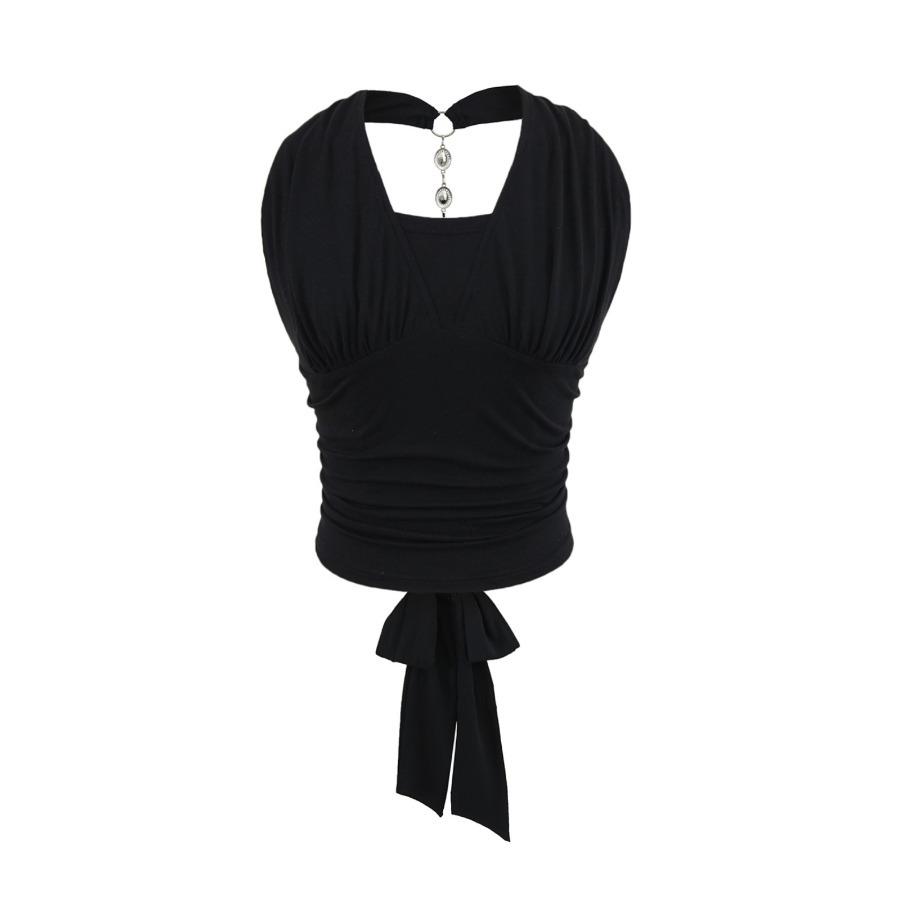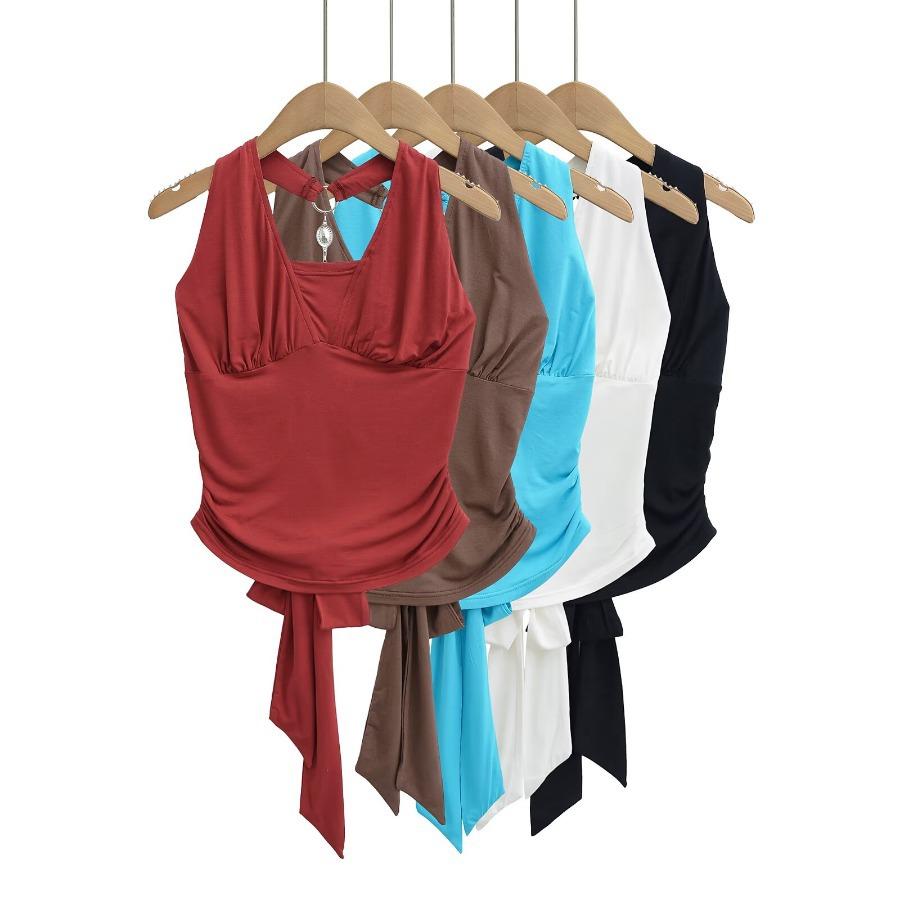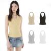 Verano Europeo y Americano Chica Caliente Diseño de Tirantes Halter Sexy Espalda Descubierta Tirantes Delgado Sin Mangas Puro Lujuria Top Corto para Mujeres