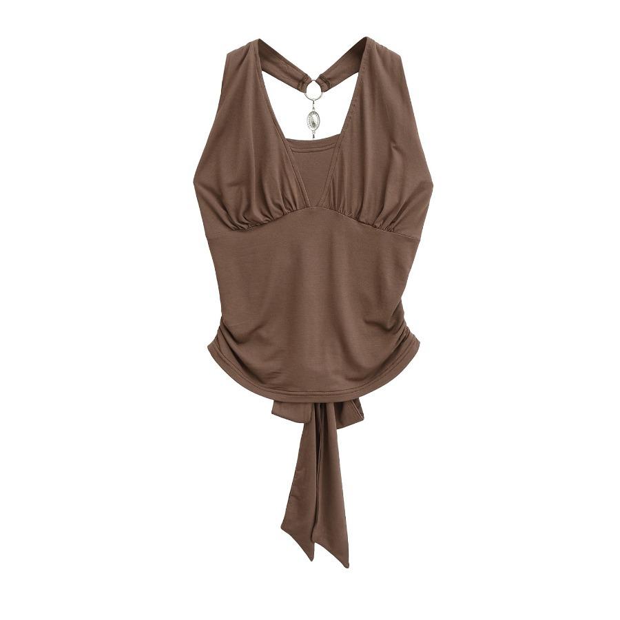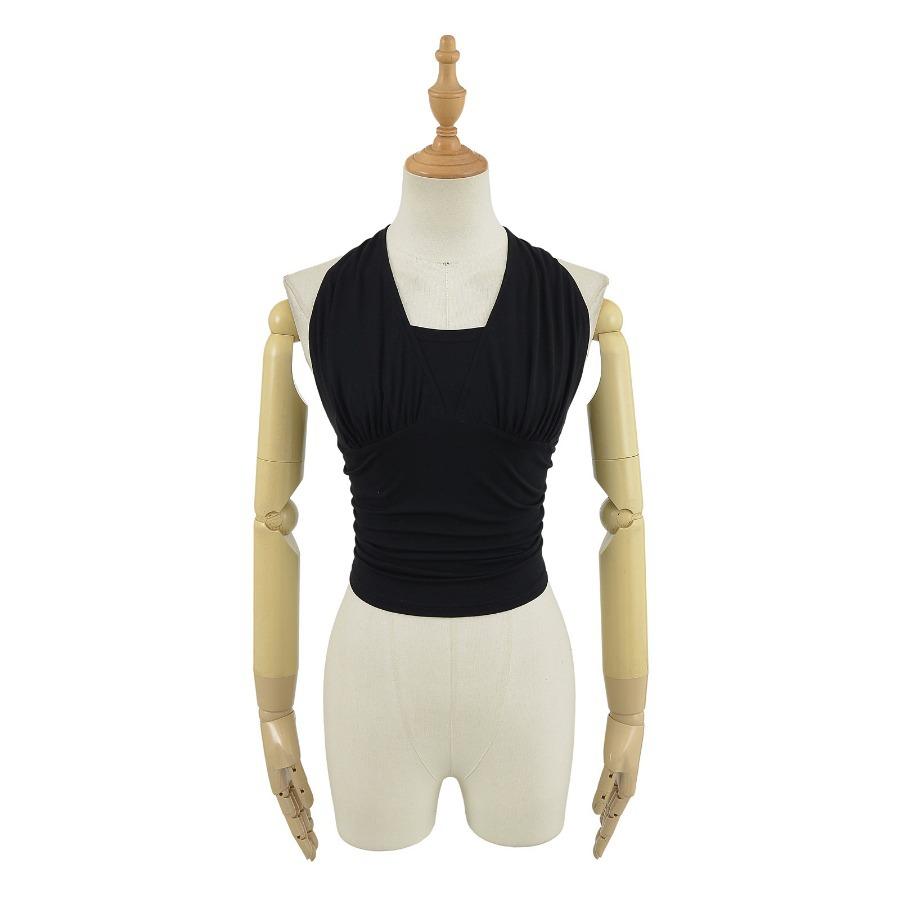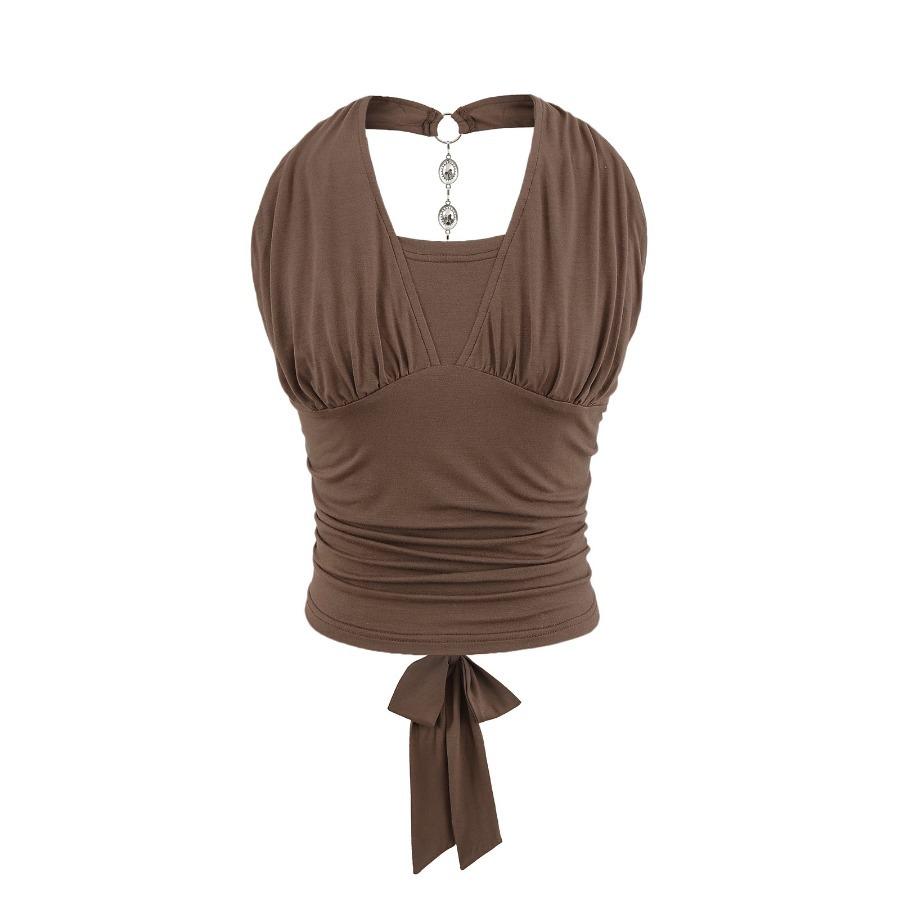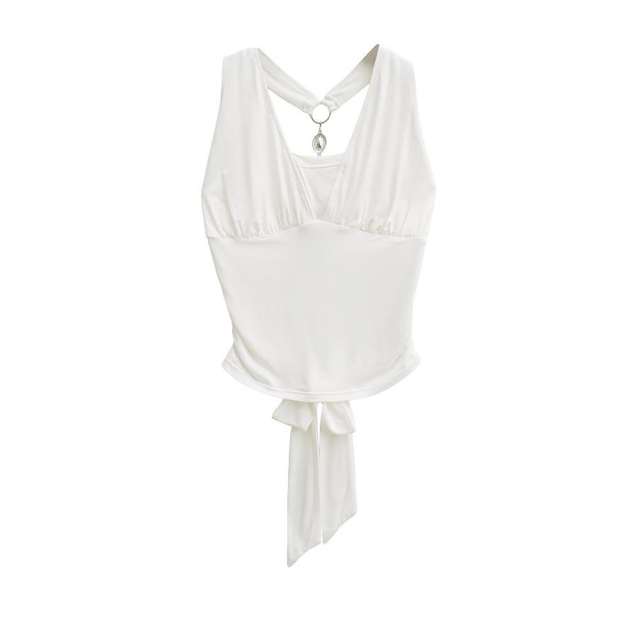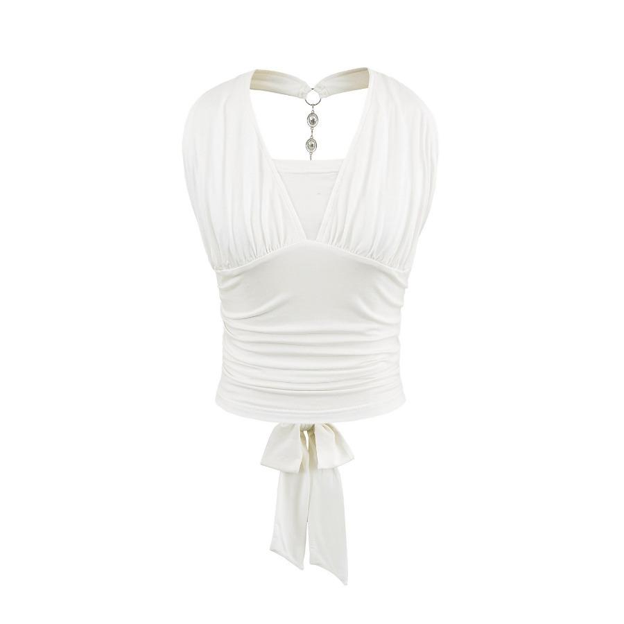 Verano Europeo y Americano Chica Caliente Diseño de Tirantes Halter Sexy Espalda Descubierta Tirantes Delgado Sin Mangas Puro Lujuria Top Corto para Mujeres